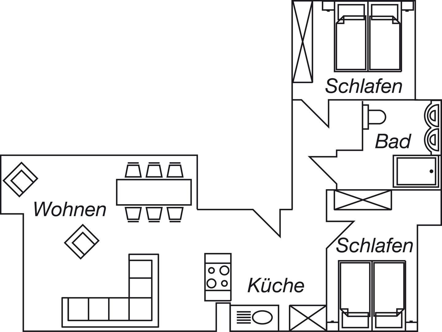 Dieses moderne 3-Zimmer-Apartment im 4. Obergeschoss bietet auf ca. 90 m² alles für einen komfortablen Aufenthalt. Mit einem Duschbad, das mit einer Regenwalddusche ausgestattet ist, sowie zwei Schlafzimmern mit Boxspringbetten und TV sorgt es für Entspannung. Die gut ausgestattete Einbauküche mit 4-Platten-Ceranfeld, Backofen und Geschirrspüler bietet alles, was Sie für die Zubereitung von Mahlzeiten benötigen. Das gemütliche Wohnzimmer lädt mit einer Couch und TV zum Verweilen ein. Zwei Balkone bieten zusätzlich Platz zum Entspannen, während der Meerblick für besondere Momente sorgt. Der Strand ist direkt auf der anderen Straßenseite. Der öffentliche Parkplatz am Möwenstein steht Ihnen zur Verfügung, und die Parkgebühren werden gegen Beleg bis zu 4 €/Tag erstattet.