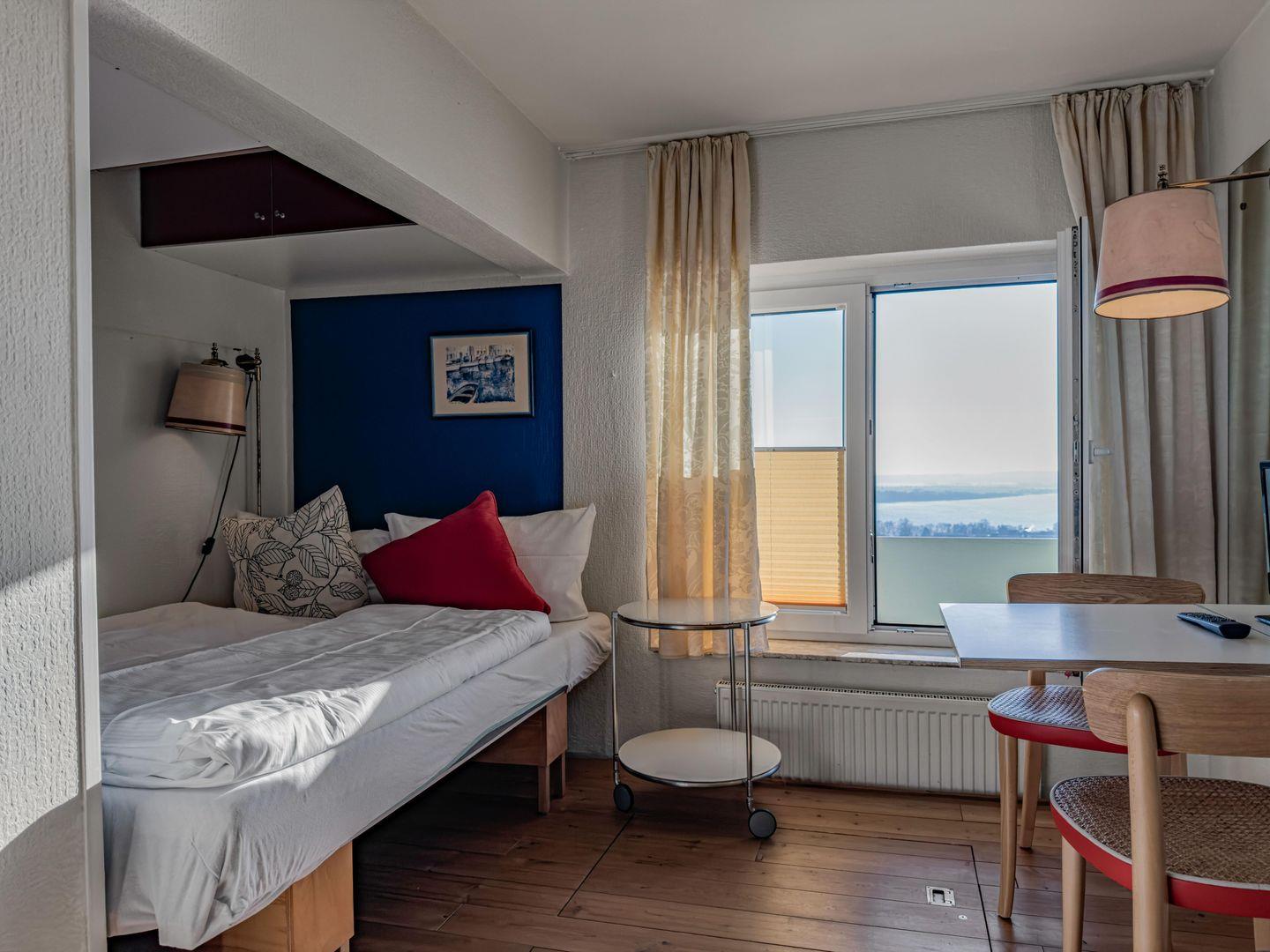 Dieses gemütliche 1-Zimmer-Apartment im 27. Obergeschoss bietet auf ca. 19 m² einen atemberaubenden Panoramablick auf die Trave bis nach Mecklenburg. Der kombinierte Wohn- und Schlafbereich ist mit einem 1,40 m breiten Bett, Kabel-TV und einer Musikanlage ausgestattet. Die Küchenpantry mit 2-Platten-Herd ermöglicht einfache Mahlzeiten. Im Gebäude stehen Ihnen zahlreiche Annehmlichkeiten wie ein Restaurant, Bars sowie ein Schwimmbad und eine Sauna (gegen Gebühr) zur Verfügung. Ein Tiefgaragenstellplatz ist ebenfalls gegen Gebühr verfügbar. Direkt am Strand gelegen, ist dieses Apartment der ideale Ort für einen erholsamen Urlaub.