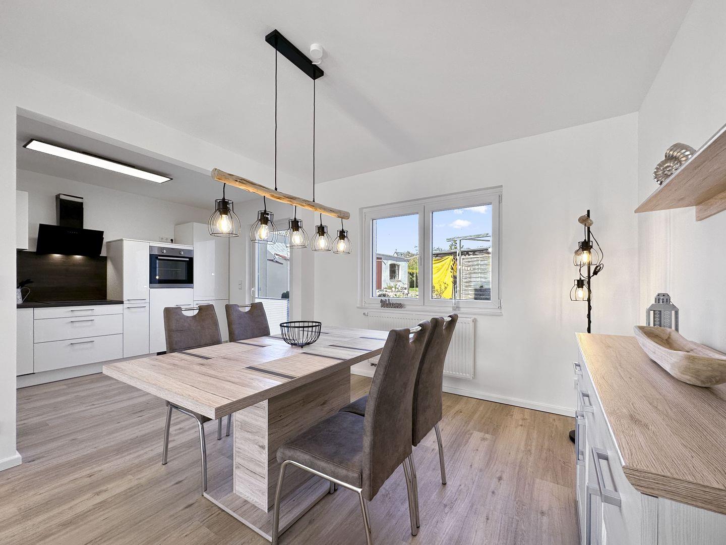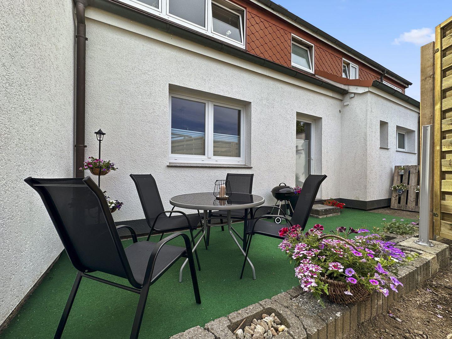 Dieses modern eingerichtete 2-Zimmer-Apartment im Erdgeschoss bietet auf ca. 67 m² alles für einen komfortablen Aufenthalt. Die ruhige Lage sorgt für Erholung, und die nahe Busanbindung ermöglicht bequeme Ausflüge in die Umgebung. Entspannen Sie im gemütlichen Wohnzimmer oder auf der möblierten Terrasse. Das Apartment verfügt über ein Schlafzimmer mit Doppelbett und TV sowie eine hochwertige Einbauküche mit separatem Essbereich. Das Duschbad mit walk-in Regenwaldusche und Infrarotkabine bietet zusätzlichen Komfort. Ein abschließbarer Fahrradunterstand und ein PKW-Außenstellplatz stehen Ihnen auf dem Grundstück zur Verfügung.
