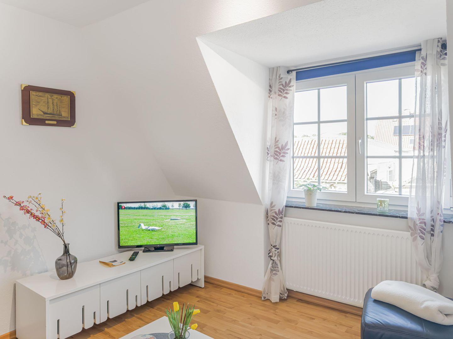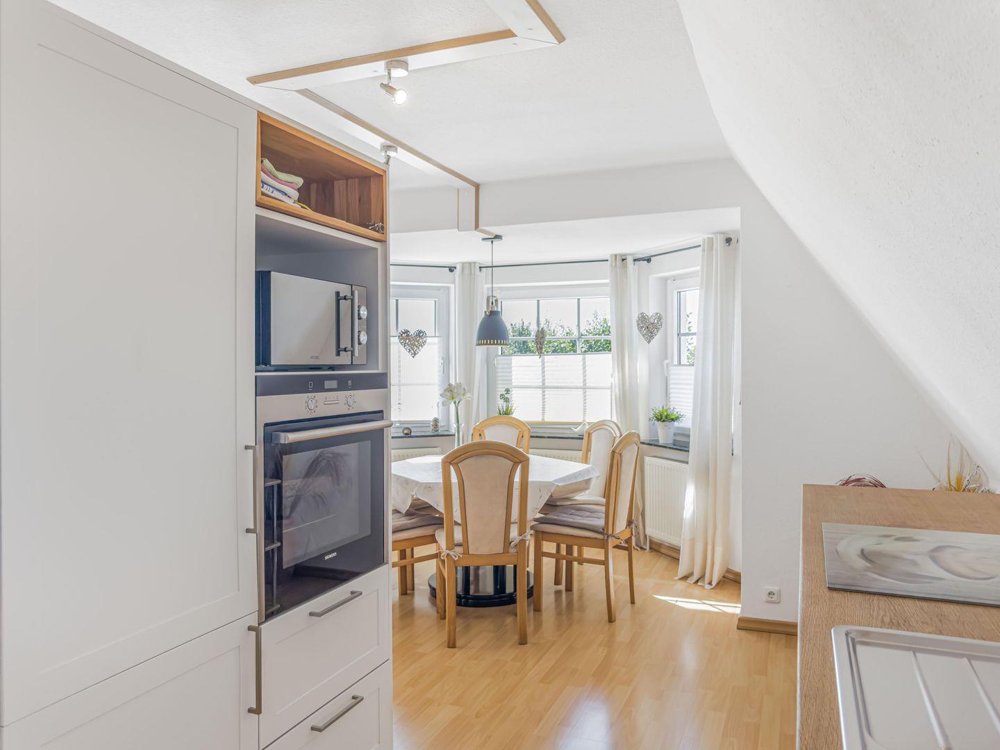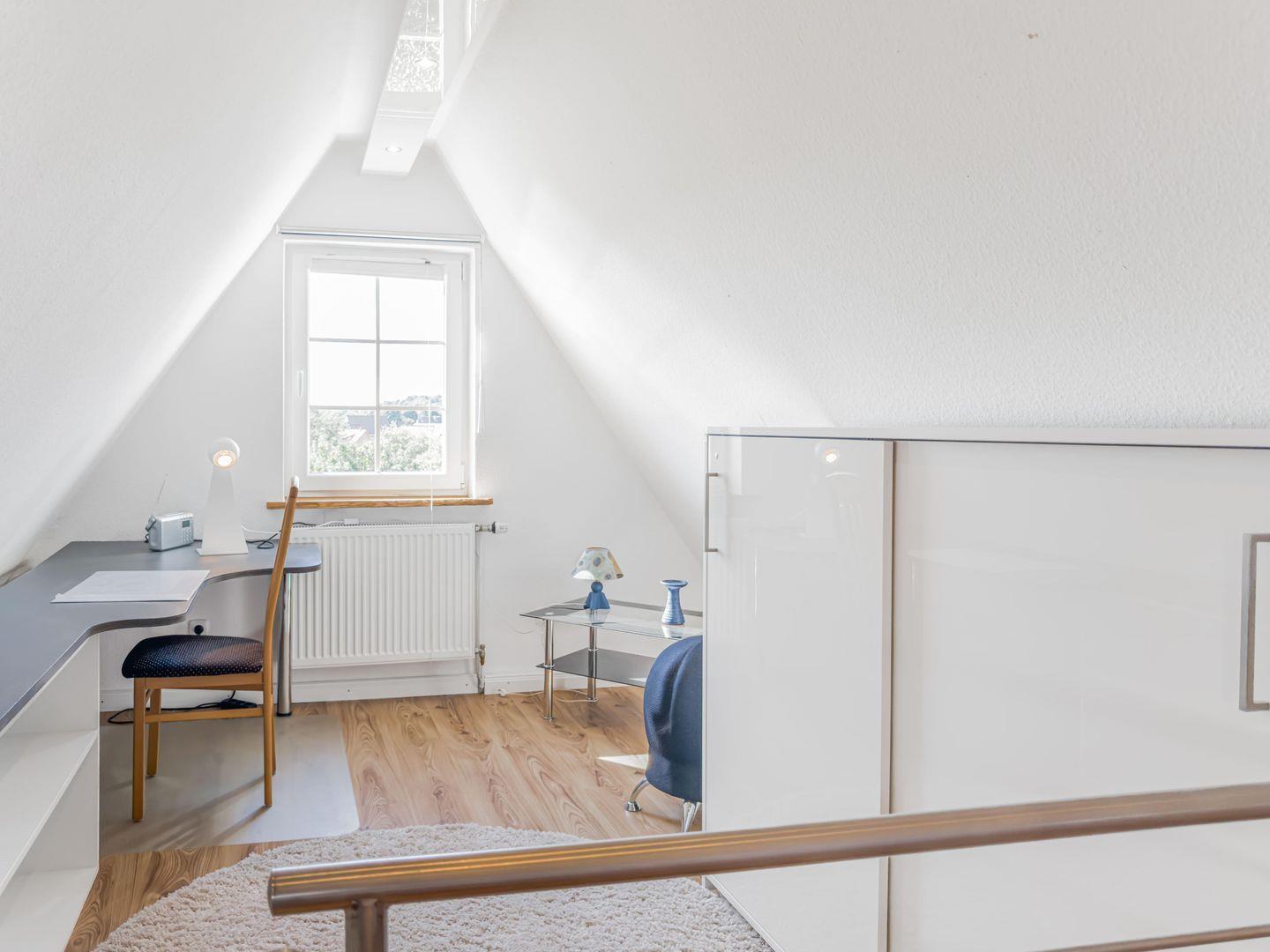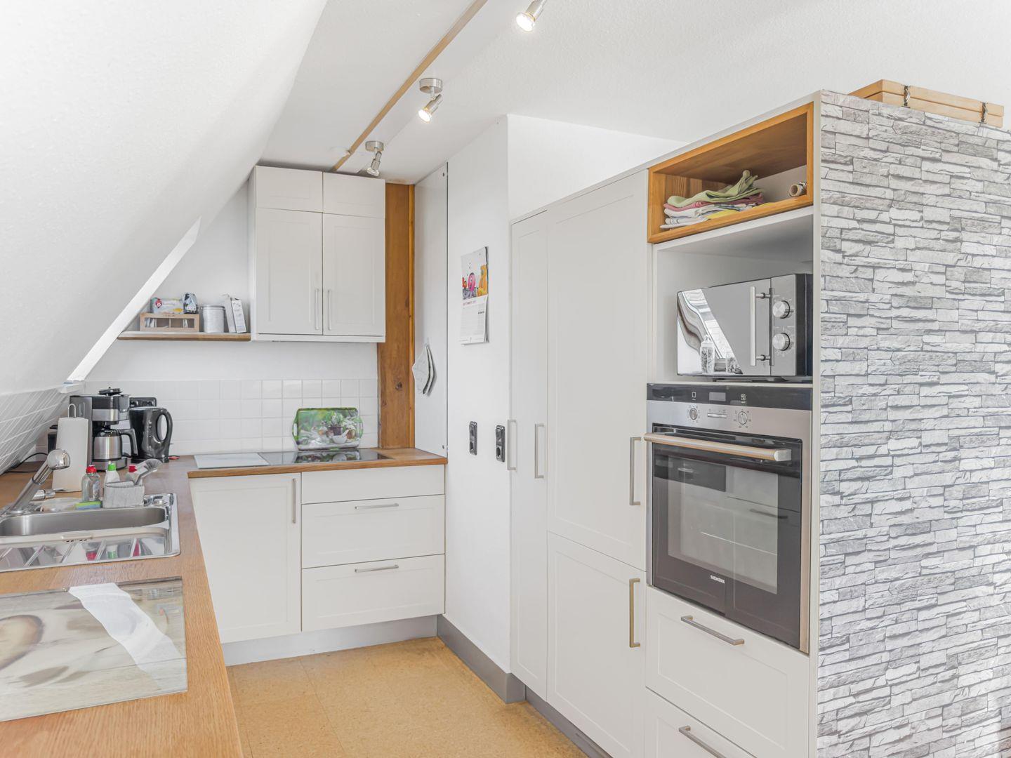 Dieses großzügige 4-Zimmer-Apartment erstreckt sich über das 1. Obergeschoss und das Dachgeschoss und bietet auf ca. 80 m² genügend Platz für einen erholsamen Aufenthalt. Die ruhige Lage macht es ideal für Familien oder kleine Gruppen. Einkaufsmöglichkeiten, der Hafen und das Zentrum sind in 10–15 Minuten bequem zu Fuß erreichbar, während Sie mit dem Fahrrad den Strand in nur 5–8 Minuten erreichen. Zwei Fahrräder stehen Ihnen kostenfrei zur Verfügung. Das Apartment kombiniert gemütliches Wohnen mit moderner Ausstattung und lädt nach einem Tag am Meer oder in der Stadt zum Entspannen ein.