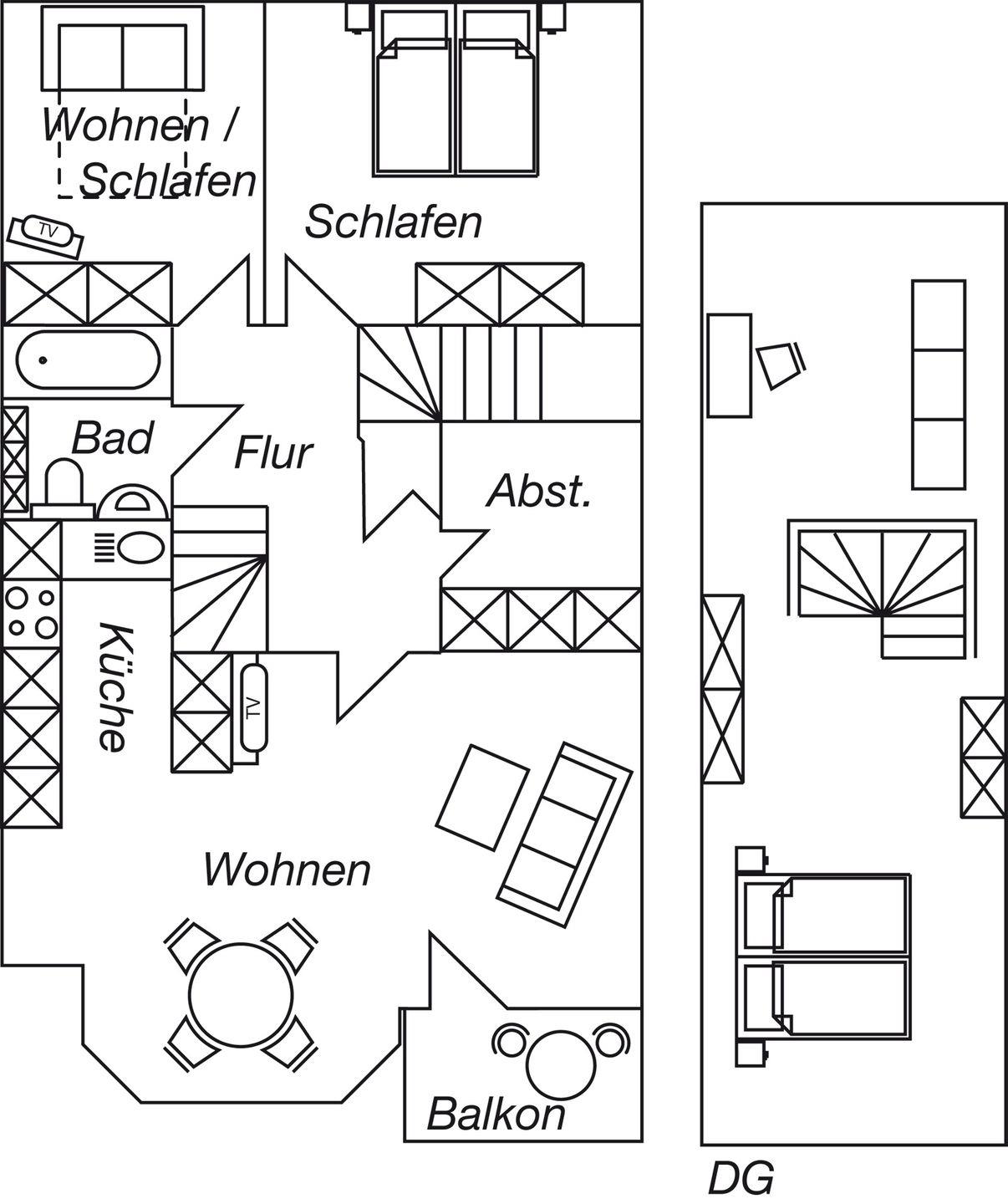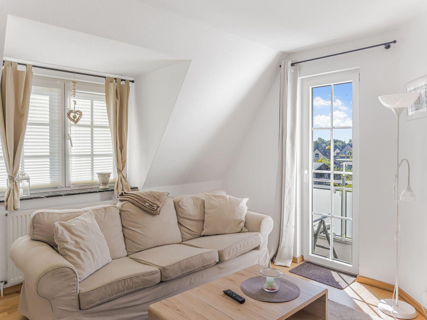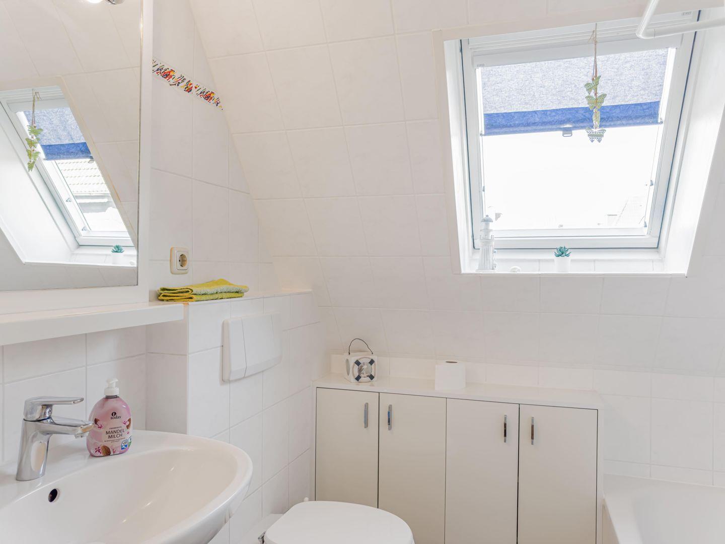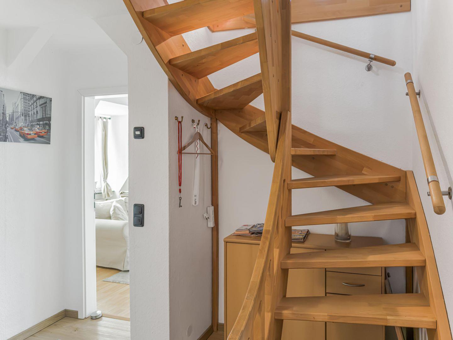 Dieses großzügige 4-Zimmer-Apartment erstreckt sich über das 1. Obergeschoss und das Dachgeschoss und bietet auf ca. 80 m² genügend Platz für einen erholsamen Aufenthalt. Die ruhige Lage macht es ideal für Familien oder kleine Gruppen. Einkaufsmöglichkeiten, der Hafen und das Zentrum sind in 10–15 Minuten bequem zu Fuß erreichbar, während Sie mit dem Fahrrad den Strand in nur 5–8 Minuten erreichen. Zwei Fahrräder stehen Ihnen kostenfrei zur Verfügung. Das Apartment kombiniert gemütliches Wohnen mit moderner Ausstattung und lädt nach einem Tag am Meer oder in der Stadt zum Entspannen ein.