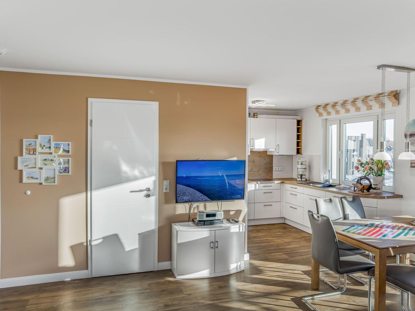 Ein Highlight ist die 18 m² große Süd-Dachterrasse, die sich perfekt zum Entspannen in der Sonne eignet. Ein PKW-Stellplatz gehört ebenfalls zur Wohnung, sodass Sie sich um das Parken keine Gedanken machen müssen. Dank der zentralen Lage sind Einkaufsmöglichkeiten, Restaurants und der Strand bequem erreichbar. Genießen Sie einen hochwertigen Urlaub in dieser rundum komfortablen Wohnung!