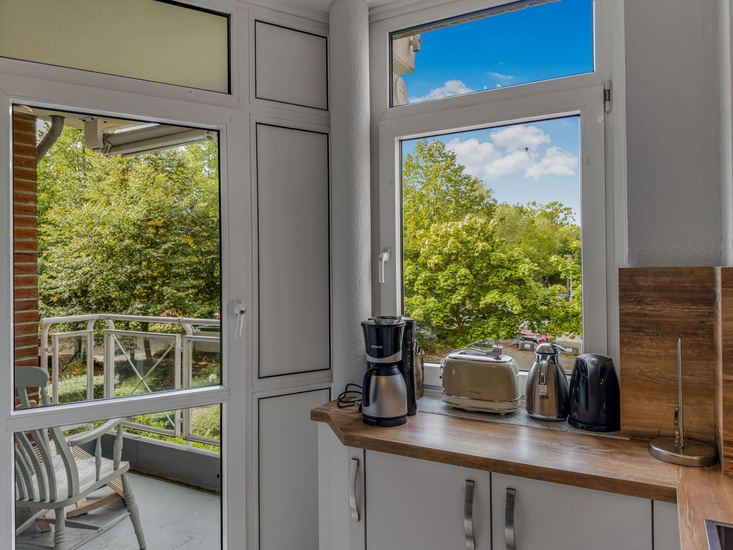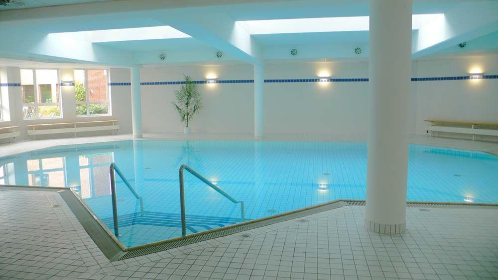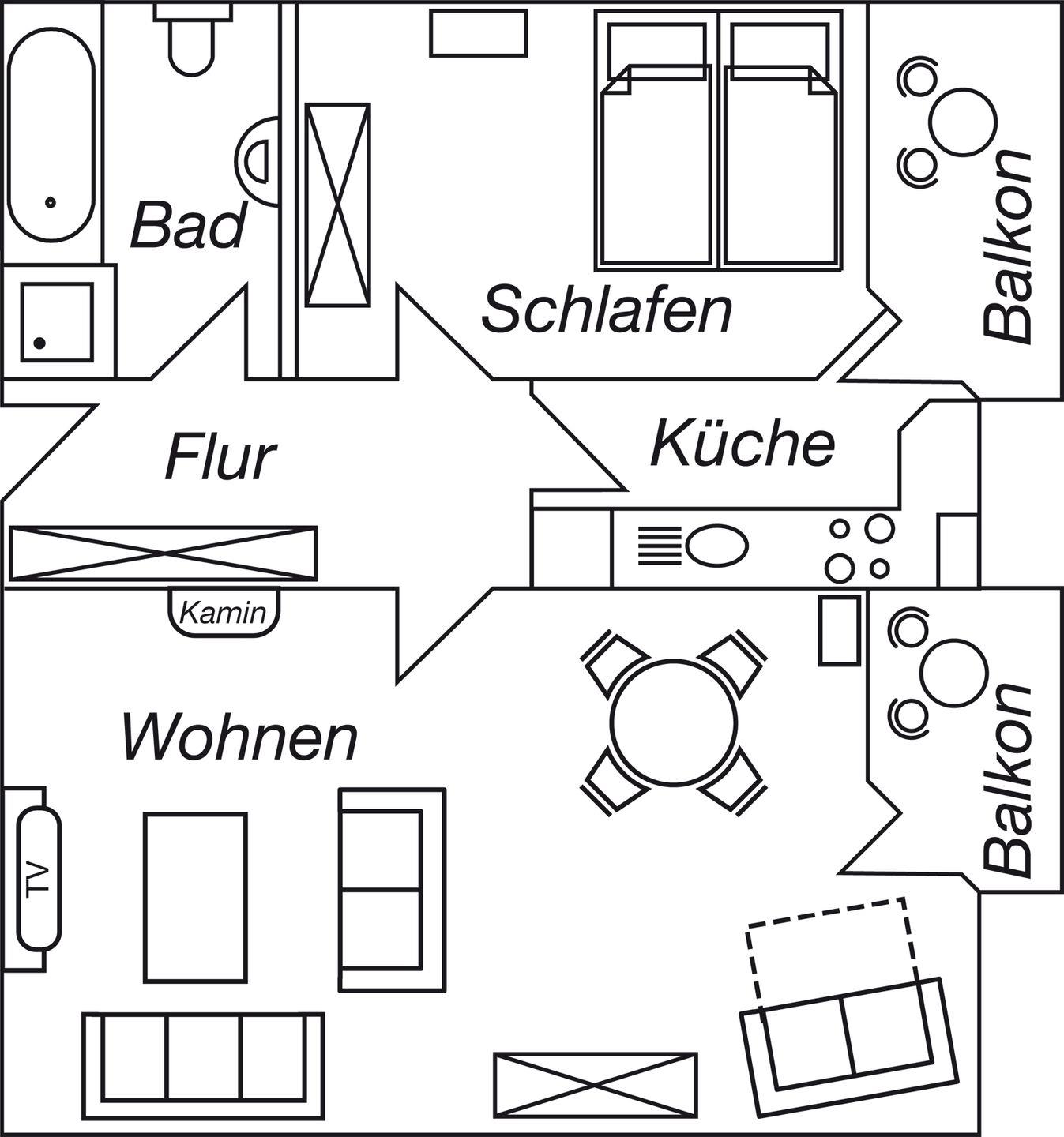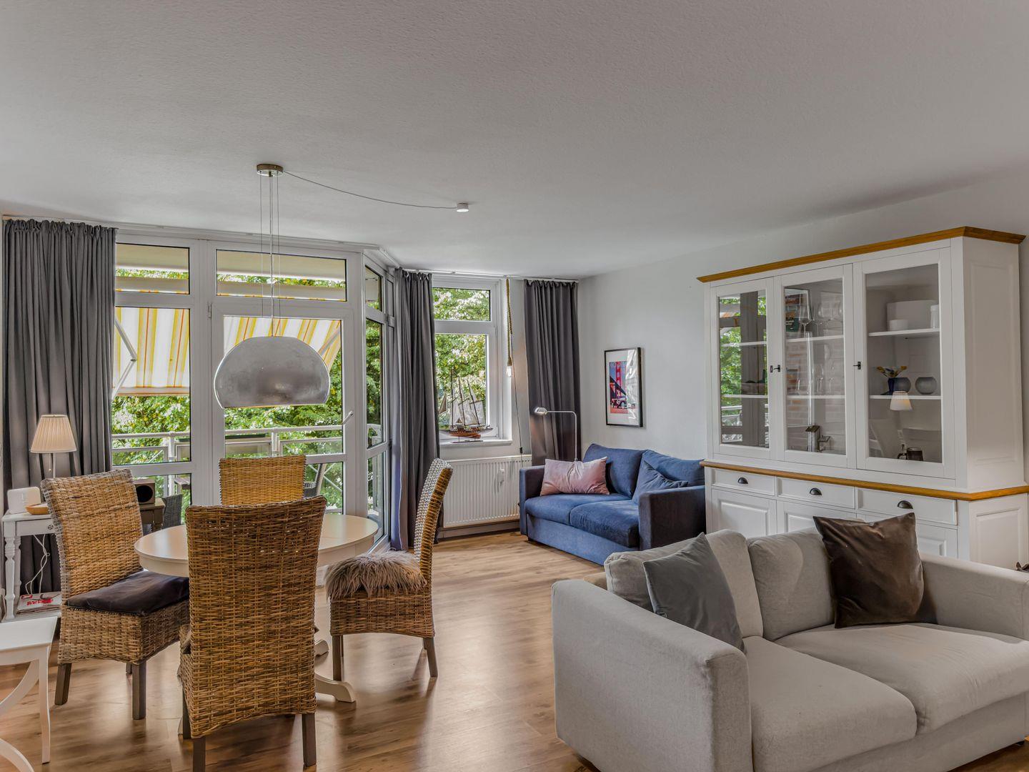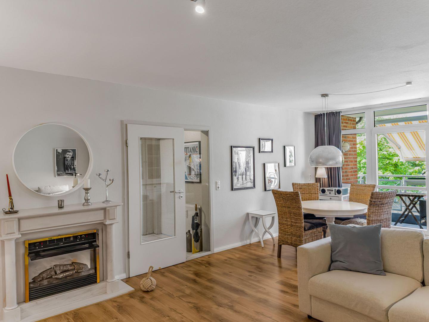 Großzügiges 2-Zimmer-Apartment in Travemünde mit Balkon, Kamin und eigenem Schwimmbadzugang für entspannte Urlaubstage.