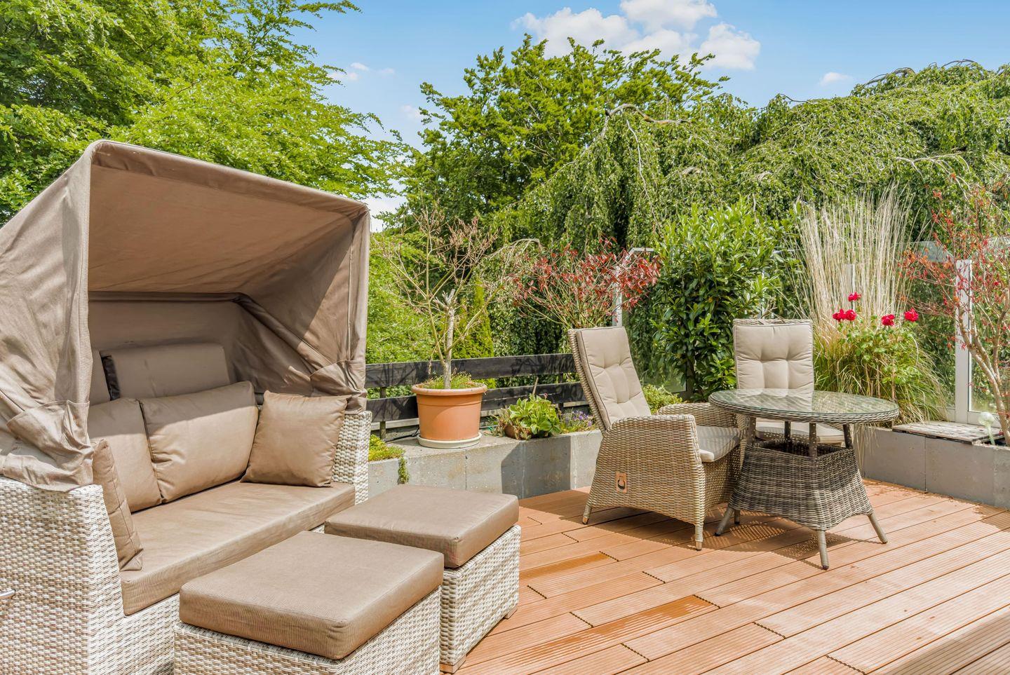 Ein besonderes Highlight ist der überdachte Balkon mit angrenzender, uneinsehbarer Dachterrasse. Hier können Sie in absoluter Ruhe entspannen, die Sonne genießen oder den Tag gemütlich ausklingen lassen.