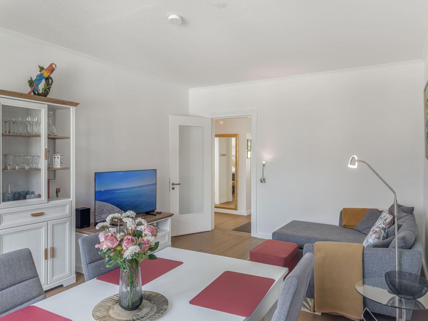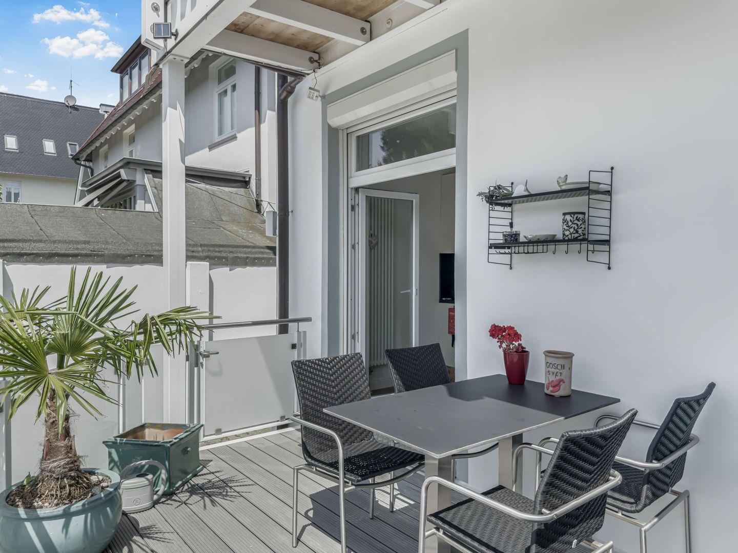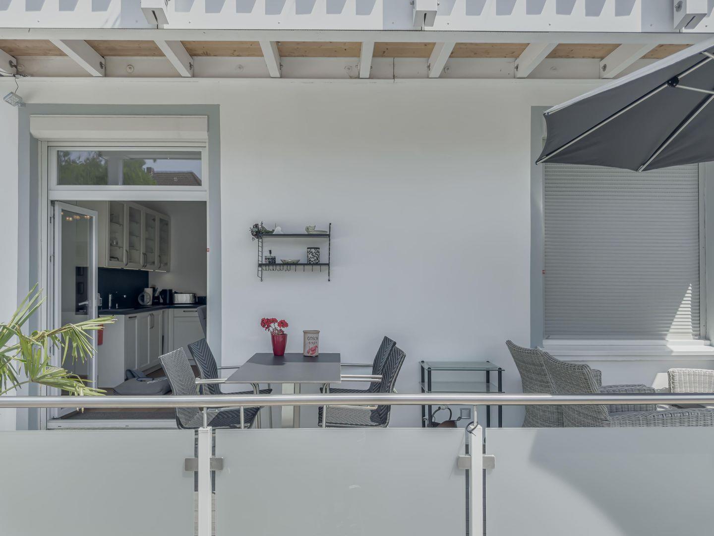 Dieses zentral gelegene 3-Zimmer-Apartment im Hochparterre bietet auf ca. 78 m² viel Platz für einen entspannten Aufenthalt. Die moderne und hochwertige Einrichtung sorgt für Komfort, während der möblierte Süd-West-Balkon zum Verweilen einlädt. Einkaufsmöglichkeiten und Restaurants befinden sich in unmittelbarer Nähe. Dank der guten Lage sind sowohl der Strand als auch zahlreiche Freizeitmöglichkeiten schnell erreichbar. Ein Fahrradkeller steht ebenfalls zur Verfügung.
