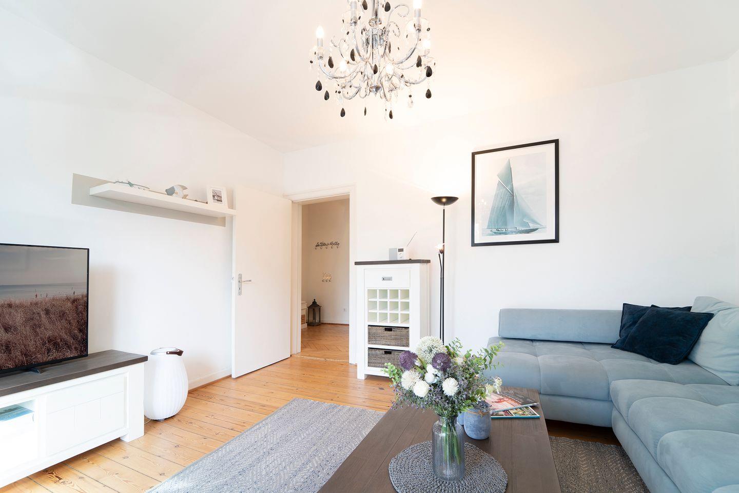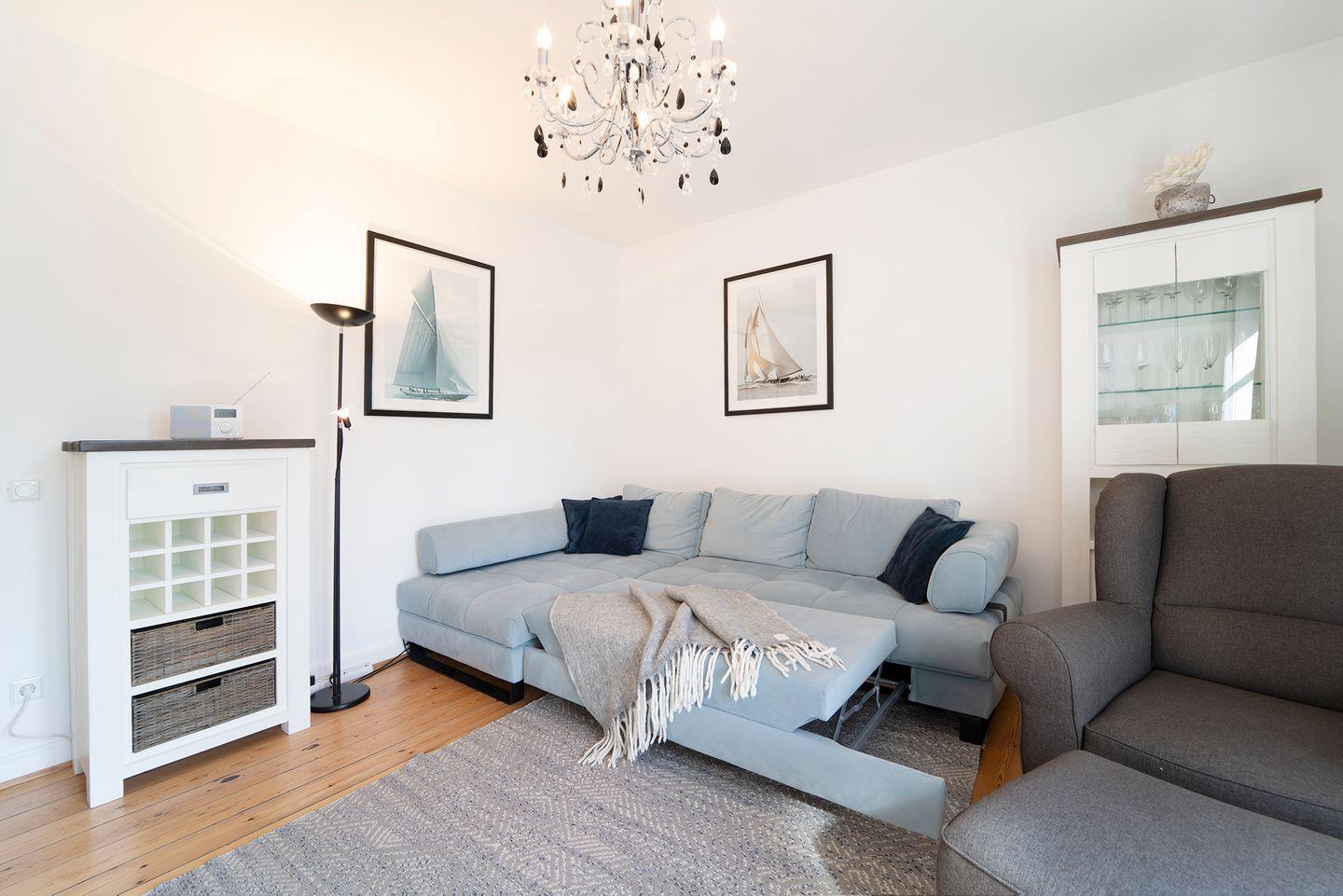 Beim Betreten der Unterkunft wirst Du von einem geräumigen Flur empfangen. Von hier aus gelangst Du in den hellen Wohnraum mit einer gemütlichen Sofaecke. Hier kannst Du nach einem erlebnisreichen Tag mit allen zusammenkommen und entspannen. Zusätzlich sorgt die hochwertige Einrichtung für eine behagliche Atmosphäre, die zum Verweilen einlädt. Das Schlafsofa bietet zudem zusätzlichen Schlafplatz.