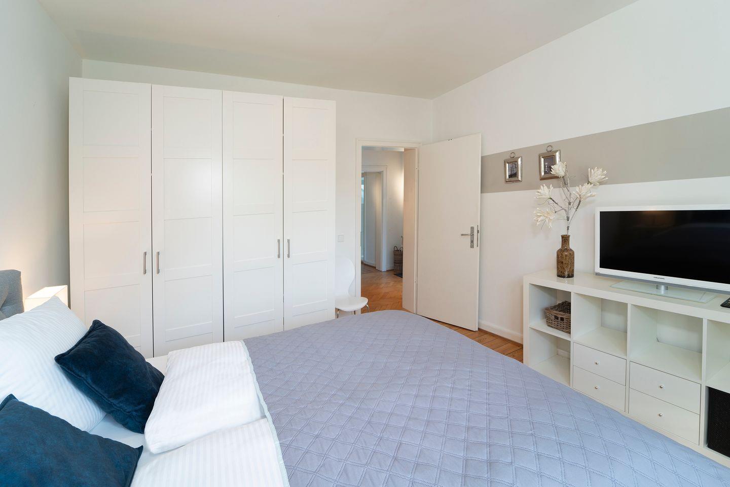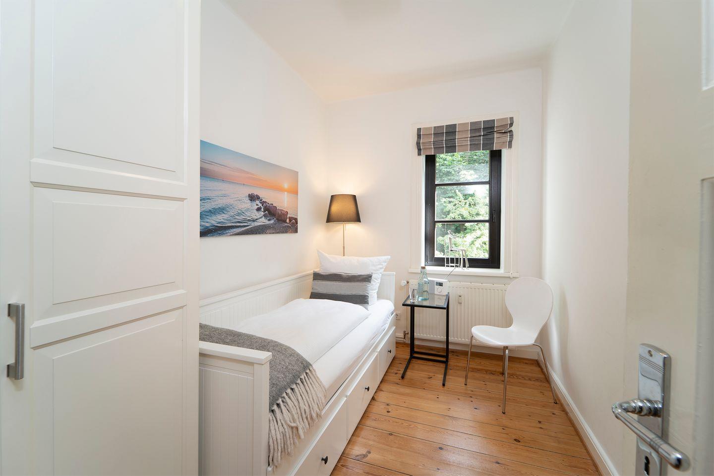 Es gibt zwei Schlafzimmer, die geschmackvoll mit einem Dielenboden ausgestattet sind. Im ersten Schlafzimmer findest Du ein komfortables Doppelbett und einen großen Kleiderschrank für Deine Urlaubsgarderobe vor. Hier steht Dir ein 2. TV zur Verfügung. Das zweite Schlafzimmer ist mit einem Kojen-Bett ausgestattet, welches ausgezogen einen weiteren Schlafplatz bietet. Auch hier steht ein Kleiderschrank zum Verstauen der Kleidung zur Verfügung.