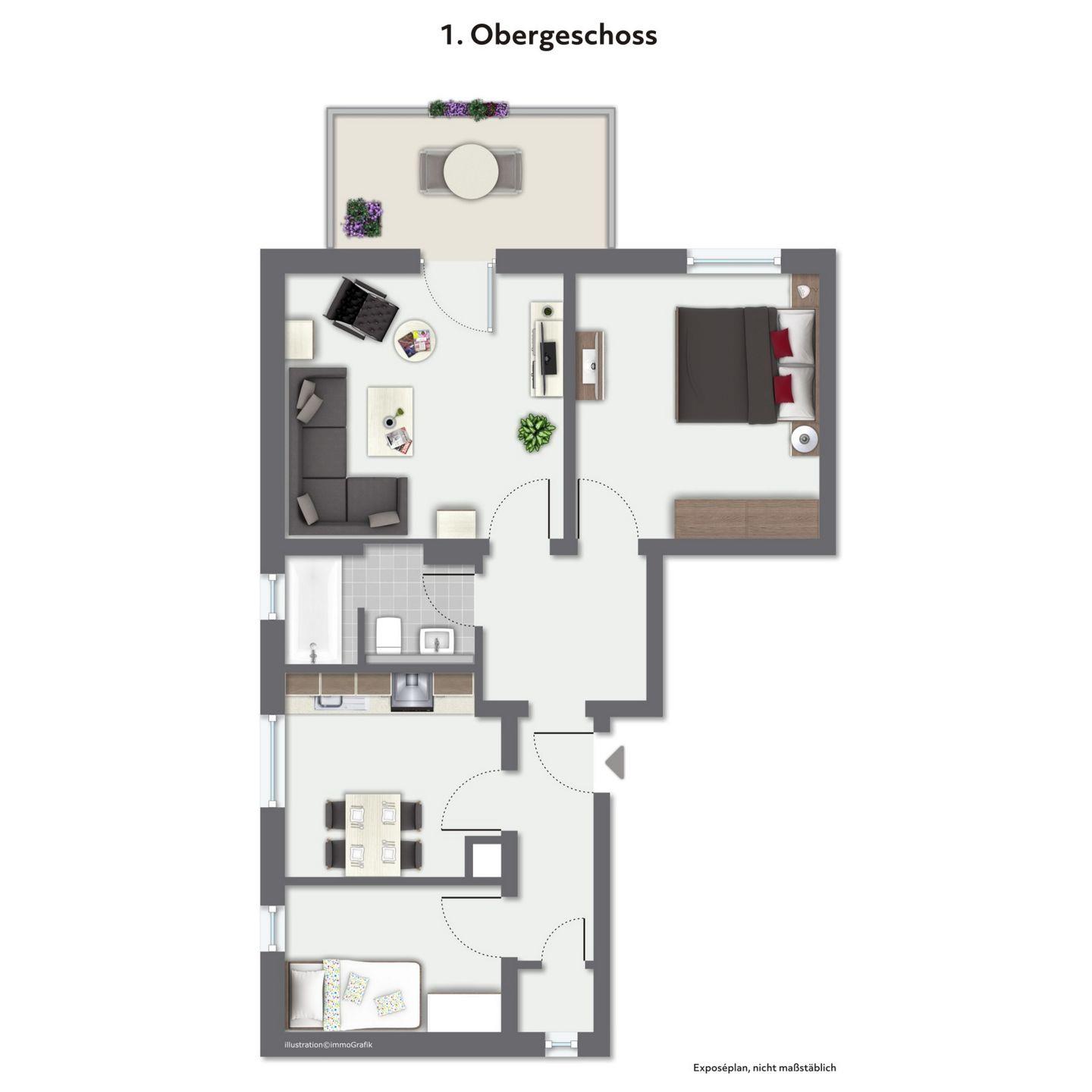 Die Ferienwohnung Nummer 3 ist eine exklusive 3-Zimmer-Ferienunterkunft im 1. Obergeschoss. Mit einer Gesamtgröße von 74 m² und einer durchdachten Raumaufteilung bietet diese Wohnung genügend Platz für bis zu 5 Personen.