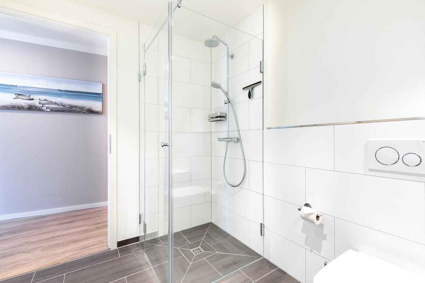 Das Apartment 1.02 im 1. Stock bietet auf 76 m² Platz für bis zu 6 Gäste. Zwei Schlafzimmer, ein offener Wohn- und Essbereich mit moderner Küche, drei TVs, ein überdachter Balkon sowie ein Badezimmer mit bodengleicher Dusche sorgen für Komfort. WLAN, Fußbodenheizung, gemeinschaftlich nutzbare Sauna und Privatparkplatz sind vorhanden. Sandstrand, Einkaufsmöglichkeiten und Restaurants sind schnell erreichbar.