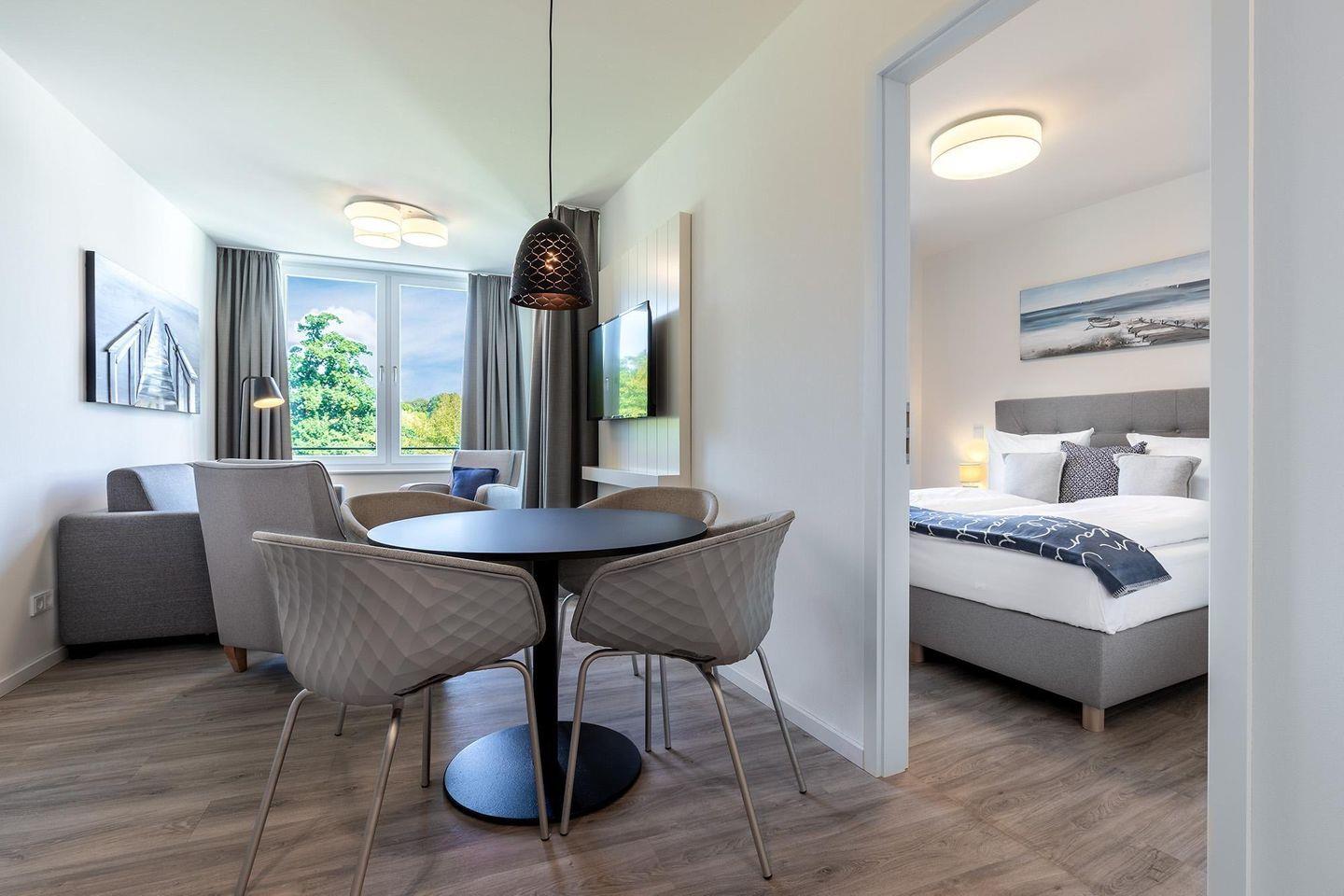 Modernes Apartment mit Loggia, Parkblick und Wellnessbereich nahe Ostseestrand.