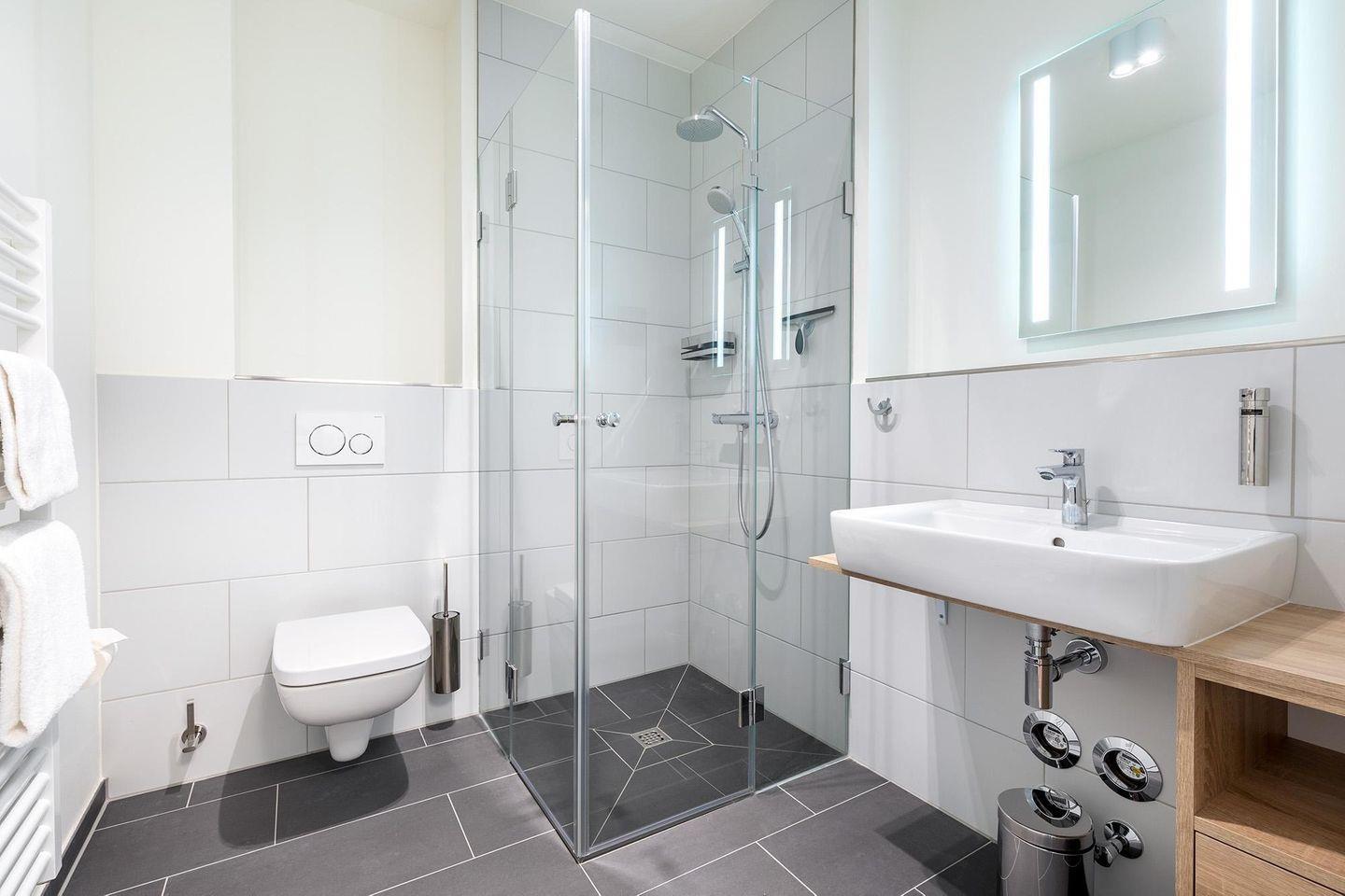 Bereits beim Betreten des Apartments spüren Sie die besondere Atmosphäre: Helle Räume, klare Linien und moderne Akzente schaffen ein Wohngefühl, das sowohl Ruhe als auch Behaglichkeit vermittelt. Große, sonnenschutzverglaste, bodentiefe Fenster durchfluten die Räume mit Licht und sorgen – in Kombination mit der Fußbodenheizung – für ein angenehmes Raumklima zu jeder Jahreszeit.