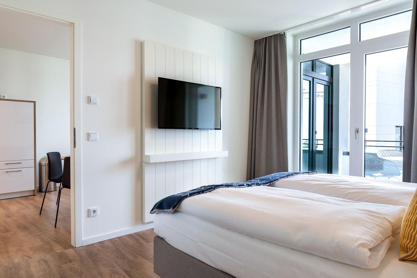 Modernes 2-Zimmer-Apartment im Godewindpark Travemünde mit Balkon, Wellnessbereich und Strandnähe.