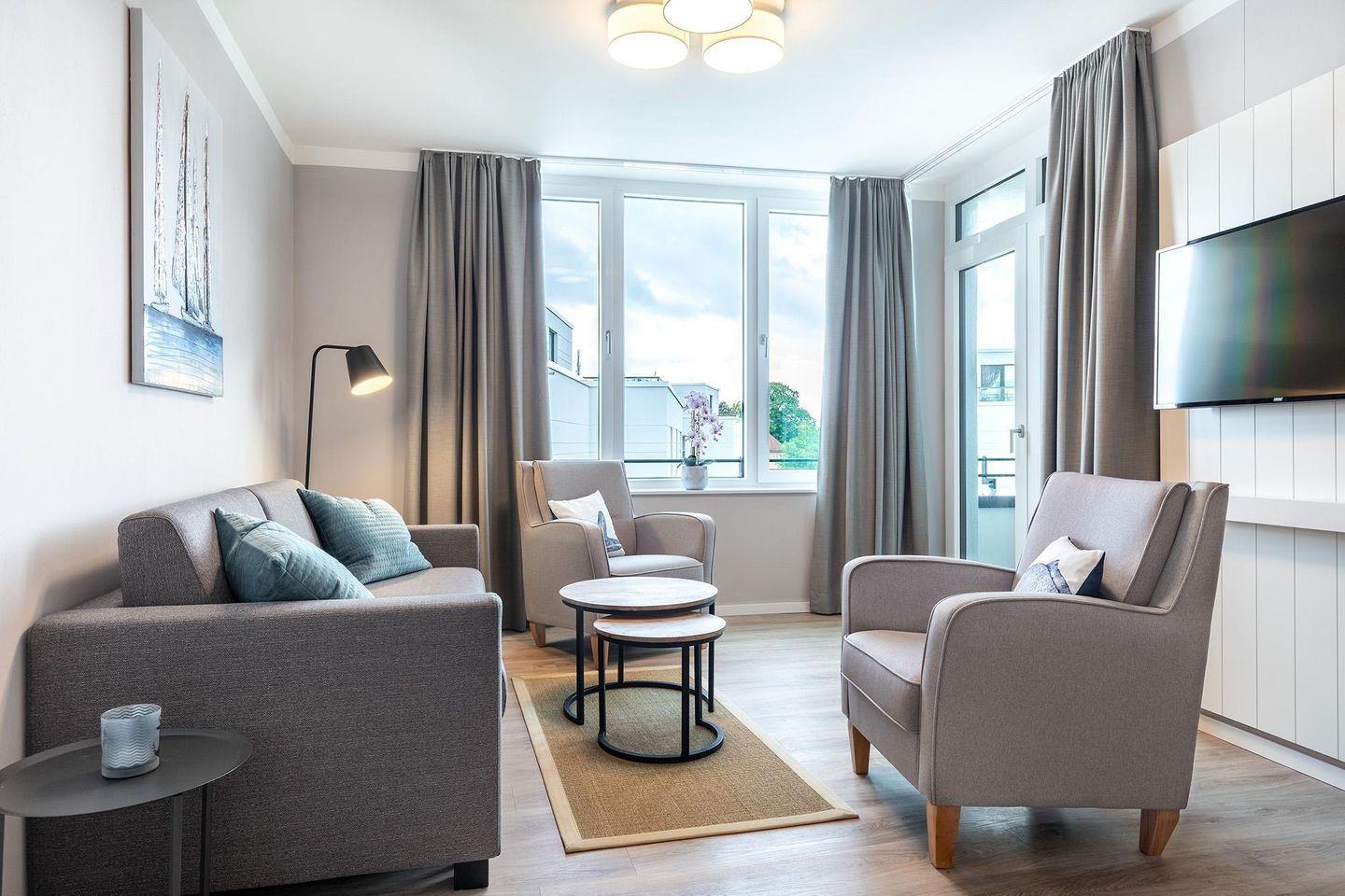 Dieses stilvoll eingerichtete barierrearme 2-Zimmer-Apartment in unmittelbarer Nähe zur Ostsee bietet Ihnen auf 53 m² Wohnfläche modernen Komfort für bis zu vier Personen – ideal für einen erholsamen Urlaub in maritimer Atmosphäre.