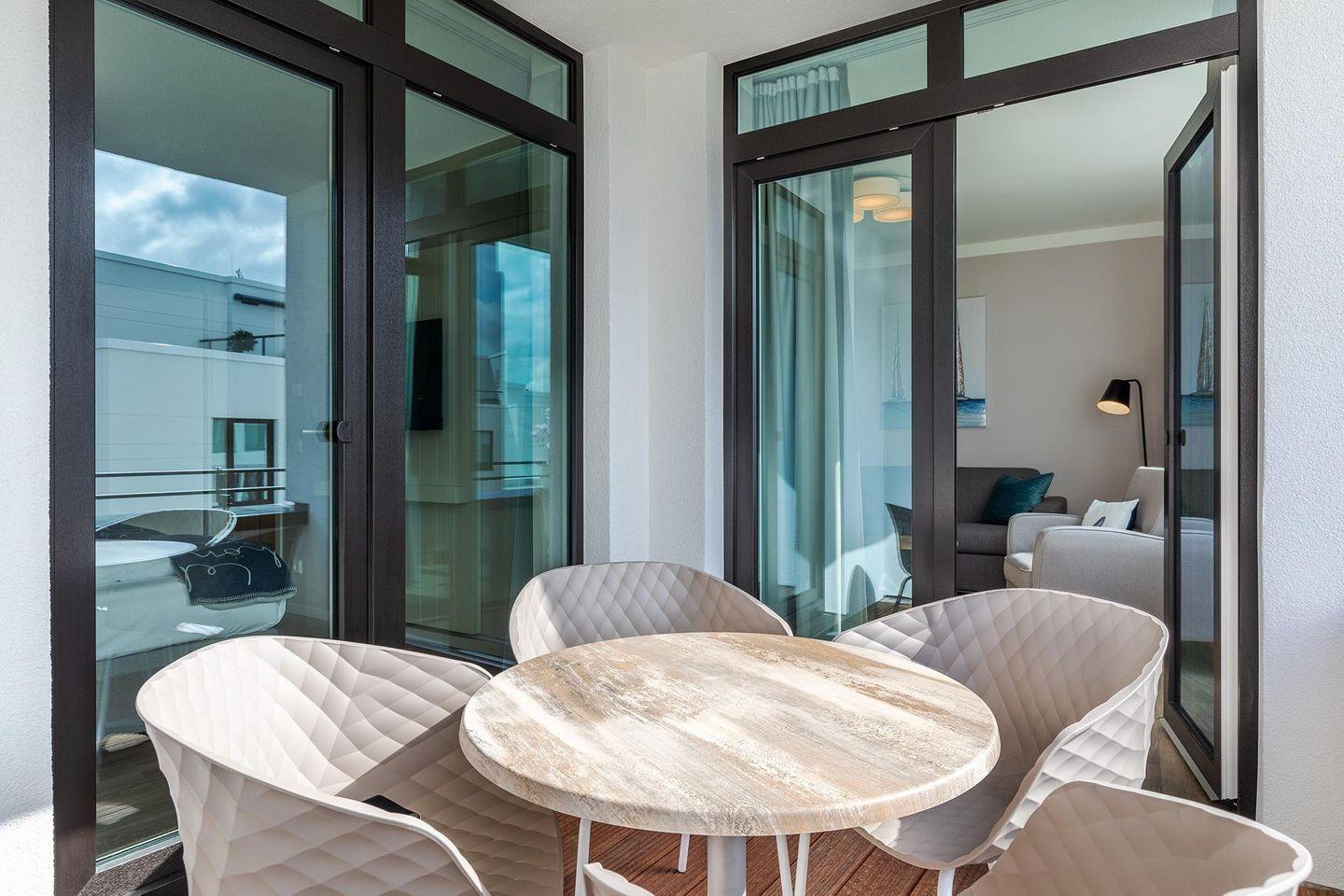 Stilvolles, barrierearmes Apartment mit Loggia, Strandkorb und hauseigenem SPA