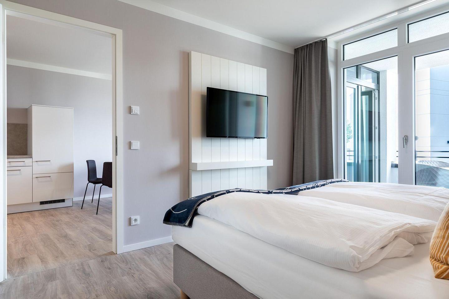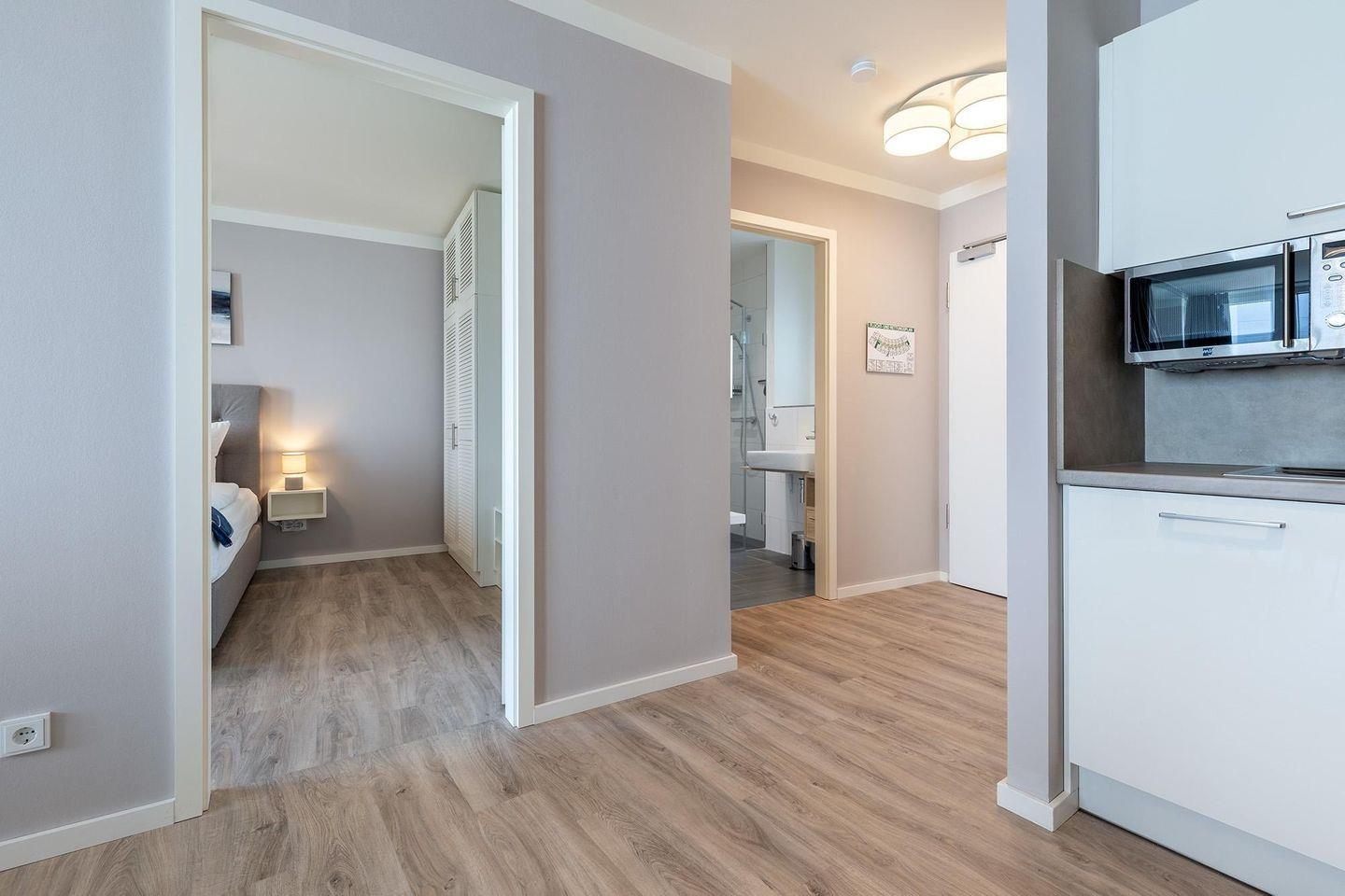 Das Apartment 1.09 bietet Ihnen auf 53 m² modernen Komfort mit offen gestalteter Küche, bodengleicher Dusche, überdachtem Balkon und WLAN. Die Unterkunft verfügt über ein Schlafzimmer, einen privaten Parkplatz und Zugang zu Gemeinschaftssauna sowie Dampfbad. Der Sandstrand ist nur 300 Meter entfernt, Einkaufsmöglichkeiten, Restaurants und der Bahnhof sind in unmittelbarer Nähe erreichbar.