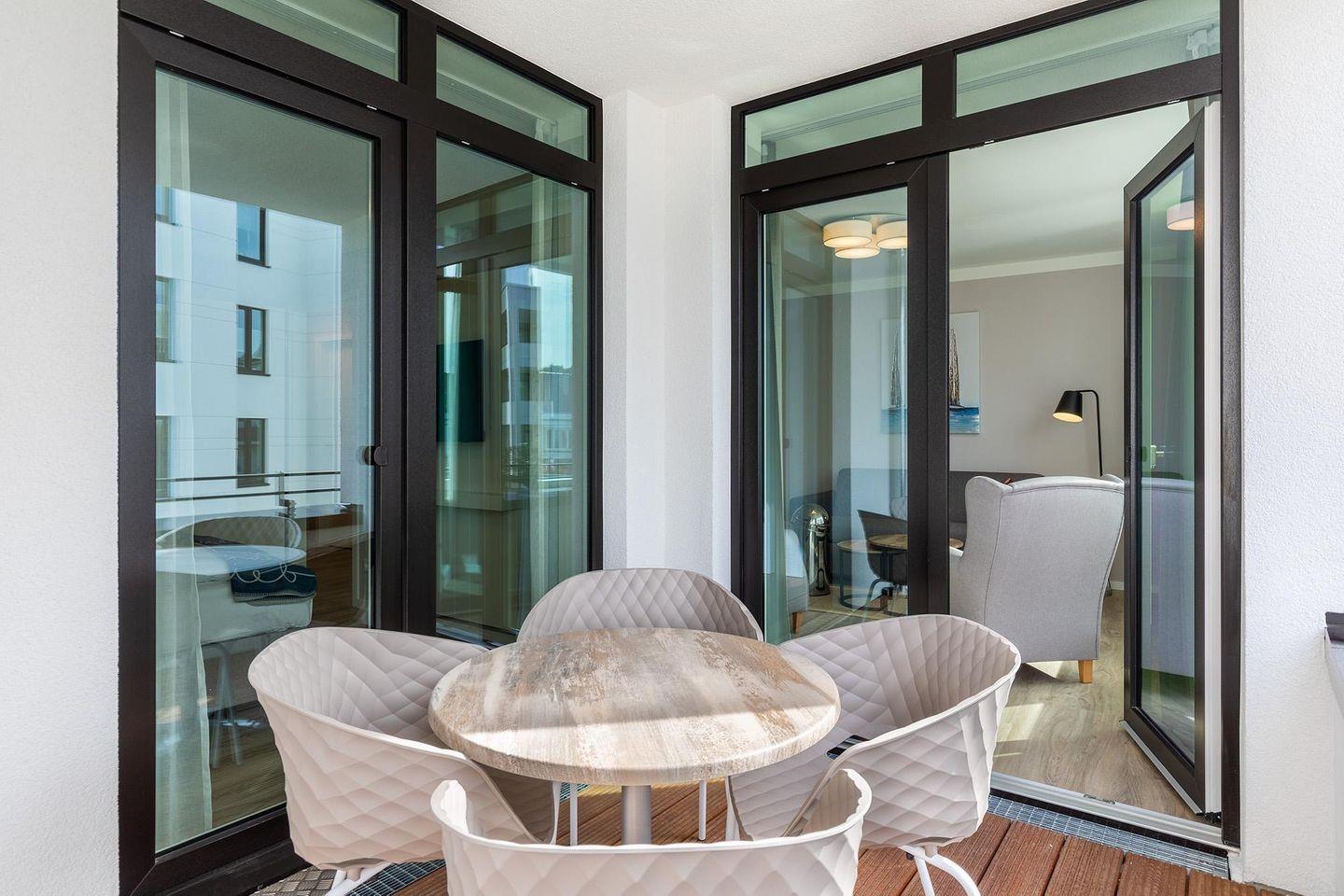 Modernes Apartment in Travemünde mit Balkon, Sauna und Strandnähe für entspannte Urlaubstage.