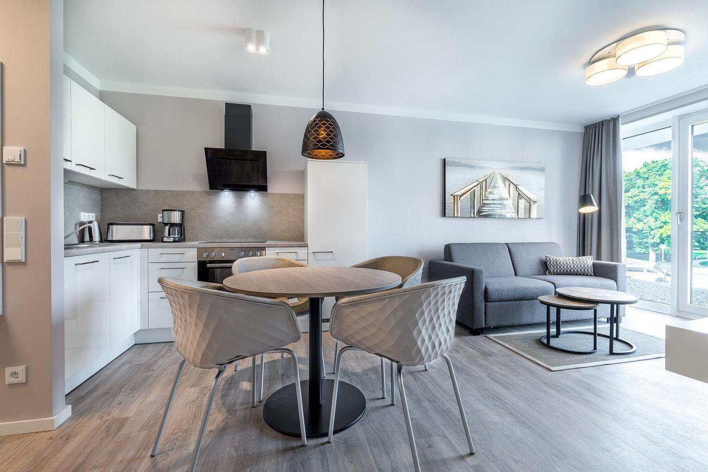 Das Godewindpark Travemünde Apartment 1.08 bietet ein modernes und komfortables Ambiente auf 40 m² im ersten Stock.
