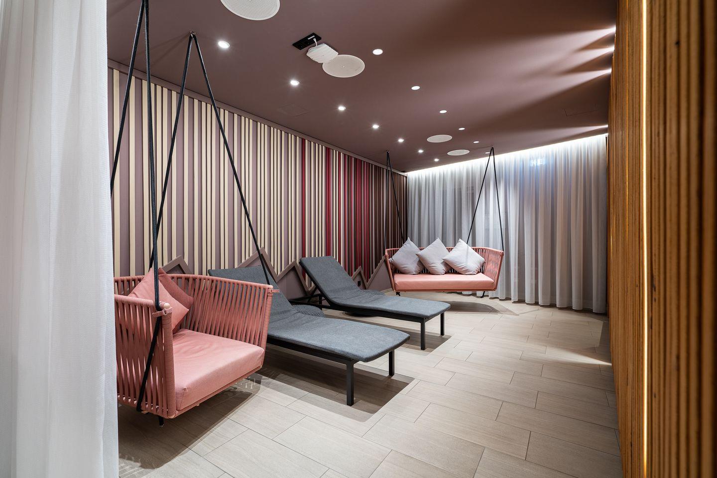 Ein besonderes Highlight ist die großzügige Wellnesslandschaft: Finnische Sauna, Biosauna, Dampfbad, Fußbäder, Erlebnisduschen, Eisbrunnen sowie Ruhezonen mit Kamin laden zum Entspannen ein. Während der Öffnungszeiten steht Ihnen der Spa-Bereich kostenfrei zur Verfügung. Wer keinen Bademantel dabei hat, kann sich diesen ebenso wie Saunatücher bequem gegen eine geringe Gebühr leihen. Ein Aufzug verbindet den Wellnessbereich mit allen Etagen, sodass Sie bequem zu Ihrer Wohnung gelangen können.