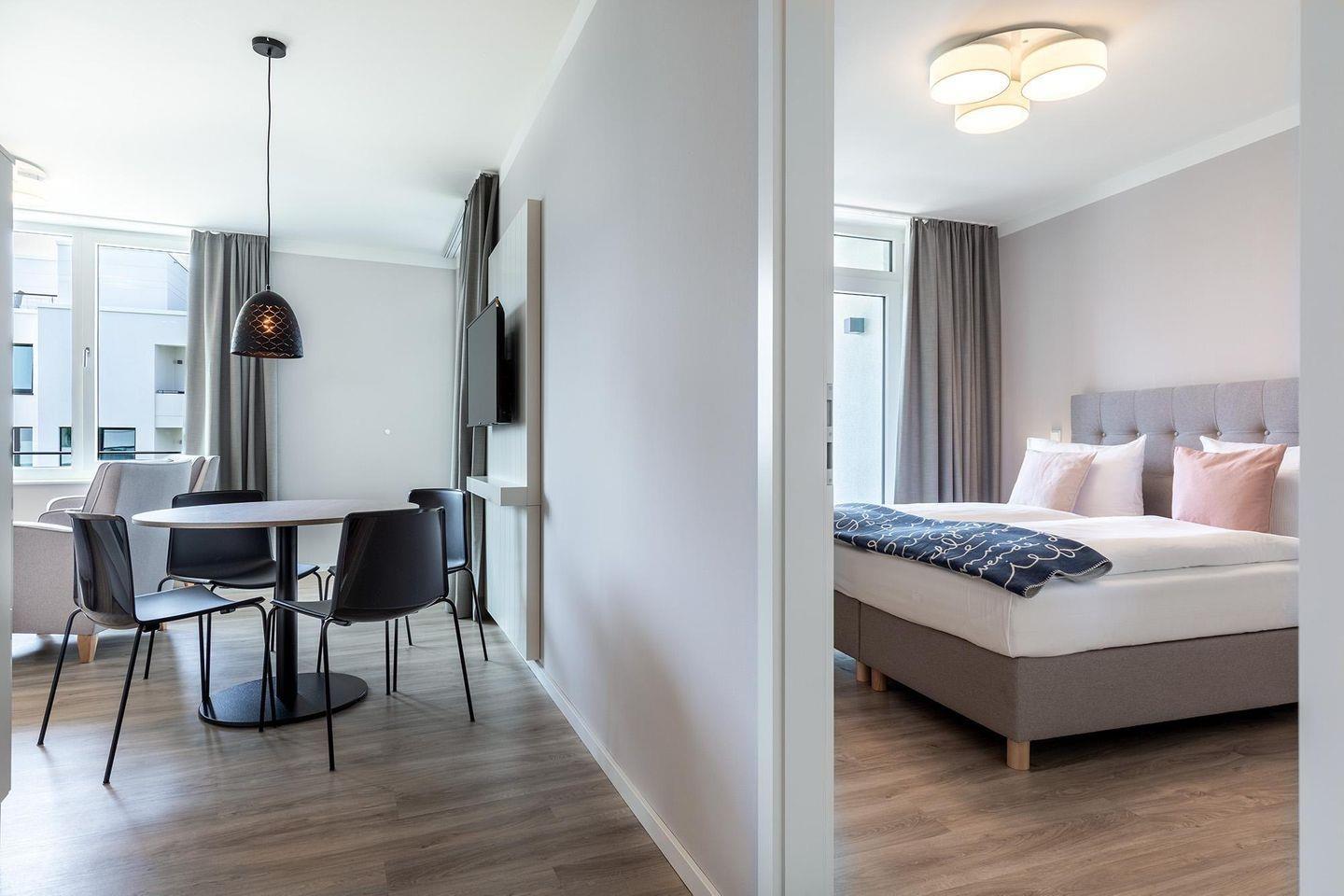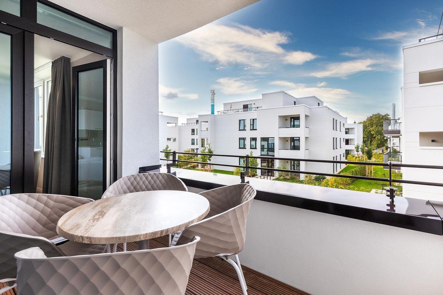 Modernes 2-Zimmer-Apartment in Travemünde mit Balkon und Zugang zum SPA, strandnah und komfortabel eingerichtet.
