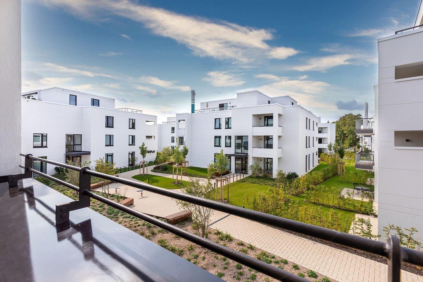 Im Inneren des Apartments erwartet Sie ein heller Wohn-Essbereich mit bodentiefen, sonnenschutzverglasten Fenstern und moderner Fußbodenheizung. Die offene, voll ausgestattete Küche lässt keine Wünsche offen: Neben einem Geschirrspüler, einer Kühl-Gefrier-Kombination, Mikrowelle, Glaskeramikkochfeld und Backofen stehen Ihnen auch Kaffeemaschine, Toaster, Wasserkocher und sogar ein Eierkocher zur Verfügung.
