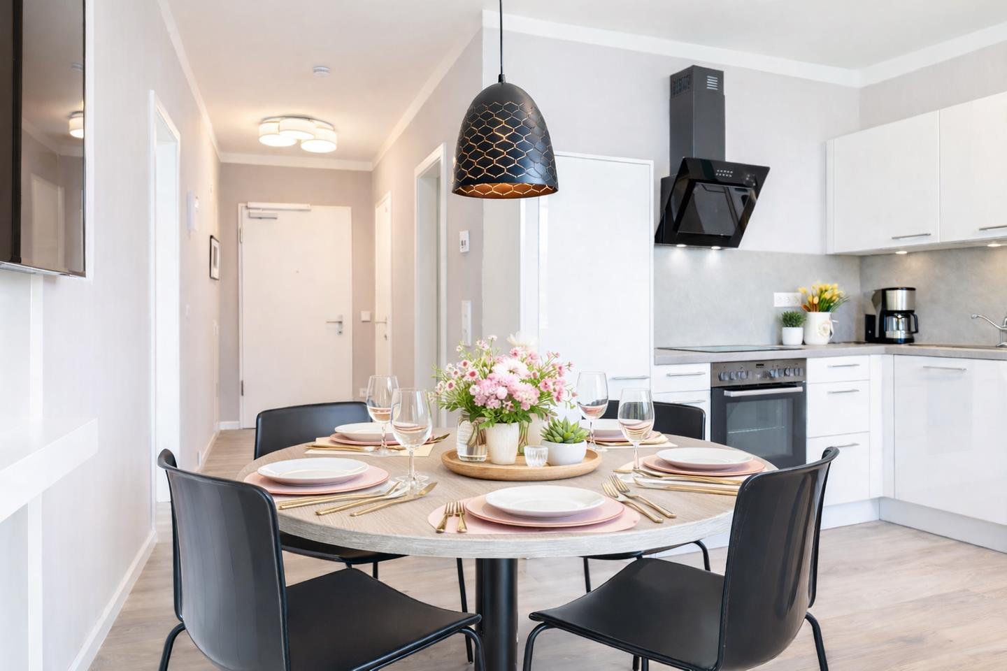 Auf 52 m² erwartet Sie ein stilvoll eingerichtetes, 2-Zimmer-Apartment, das Platz für bis zu vier Personen bietet und höchsten Wohnkomfort mit einem durchdachten Raumkonzept verbindet.