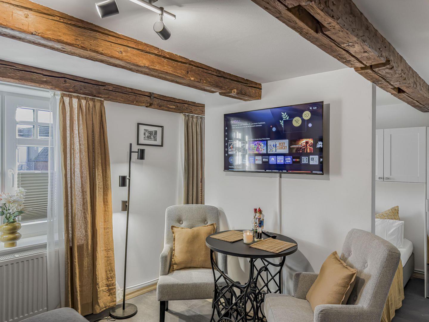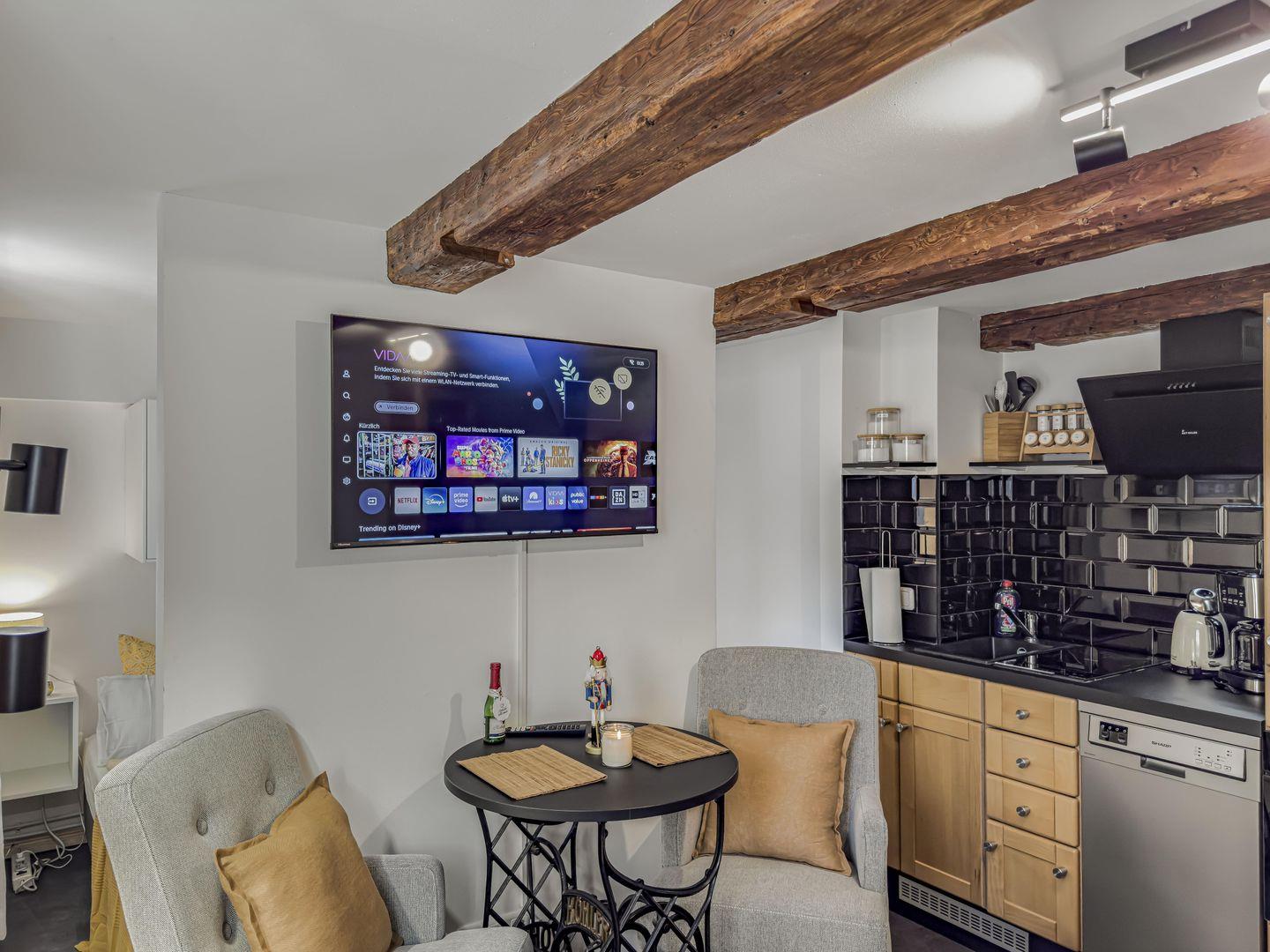 Dieses moderne 2-Zimmer-Apartment im 2. Obergeschoss bietet auf ca. 26 m² alles für einen komfortablen Aufenthalt. Das Schlafzimmer ist mit einem Doppelbett (1,60 m) ausgestattet, im Wohnbereich finden Sie ein Sofa und einen TV. Die Einbauküche verfügt über ein Induktions-Kochfeld, Backofen und Geschirrspüler – ideal für die Zubereitung eigener Mahlzeiten. Das Duschbad rundet das Apartment ab. Eine Waschküche mit Münzbetrieb steht ebenfalls zur Verfügung. Dank der zentralen Lage sind Einkaufsmöglichkeiten, Restaurants und Geschäfte nur wenige Schritte entfernt, und eine Busanbindung befindet sich direkt vor der Tür.