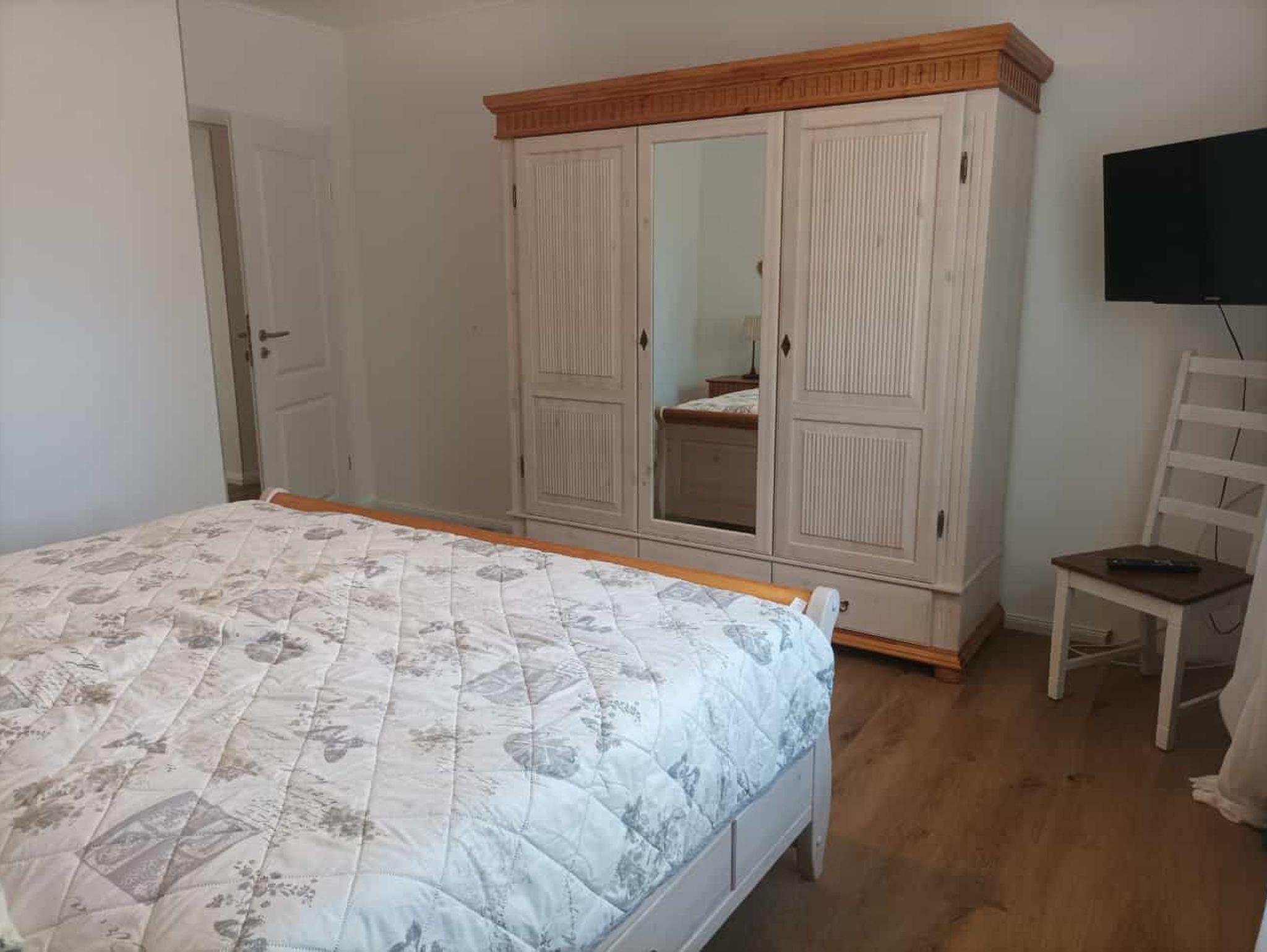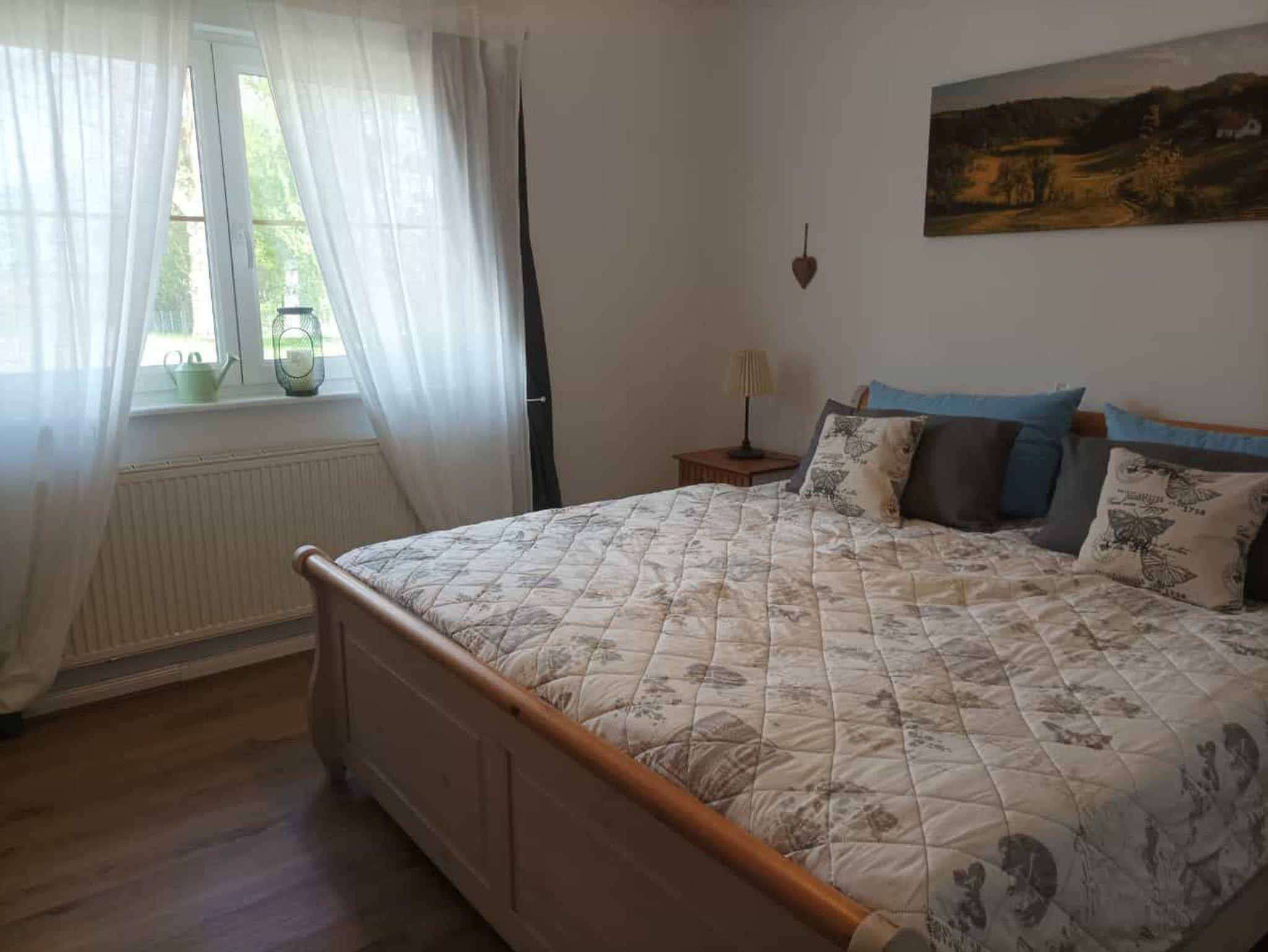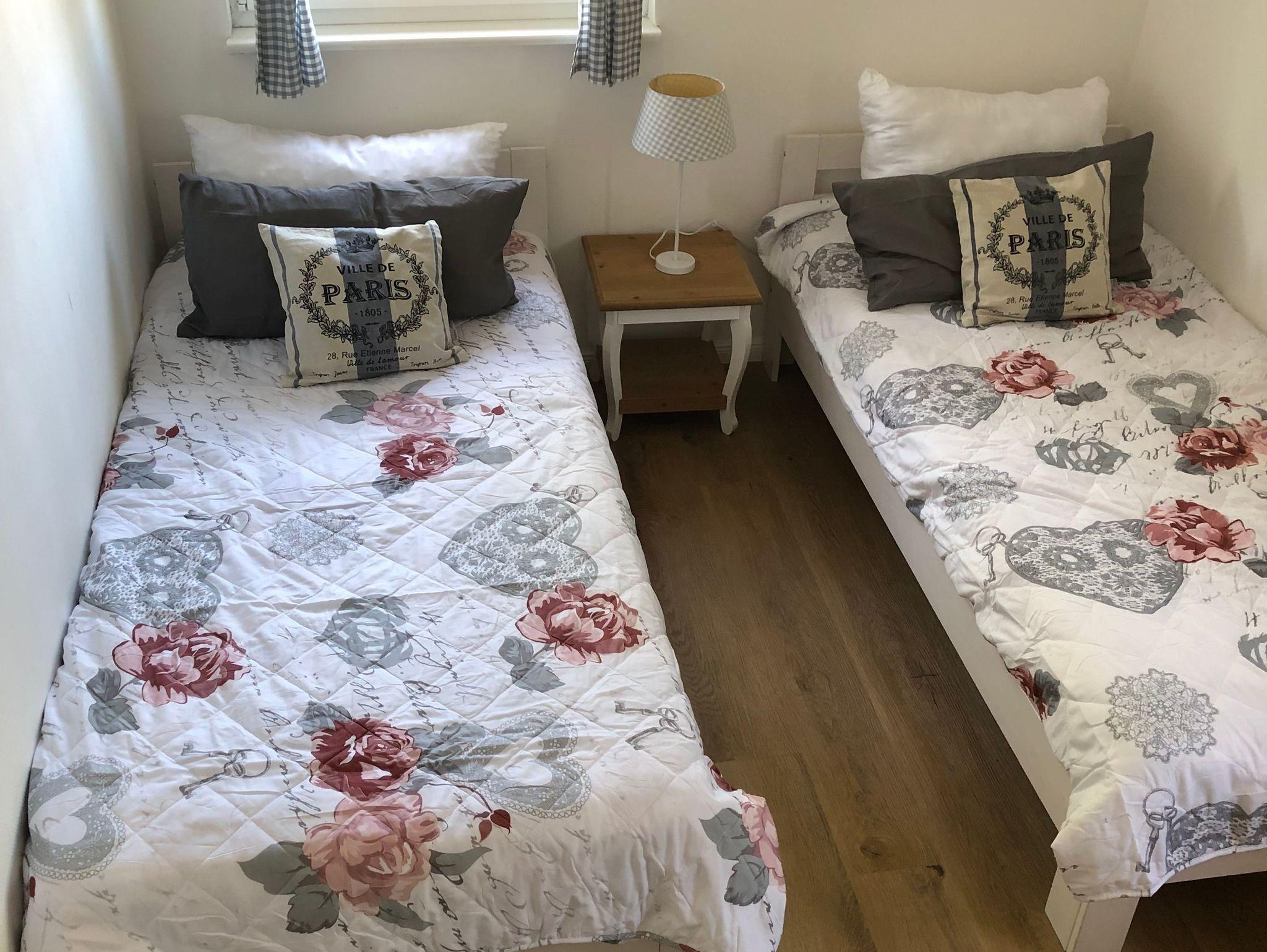 Das Haus verfügt neben einem hellen Flur über 2 Schlafzimmer mit Doppelbett und 2 Einzelbetten, die als Doppelbett gestellt werden können. Die Möbel sind alle aus Echtholz. Die Schlafzimmer lassen sich verdunkeln. Das Master-Schlafzimmer ist mit einem Smart-TV mit DVD Player ausgestattet.