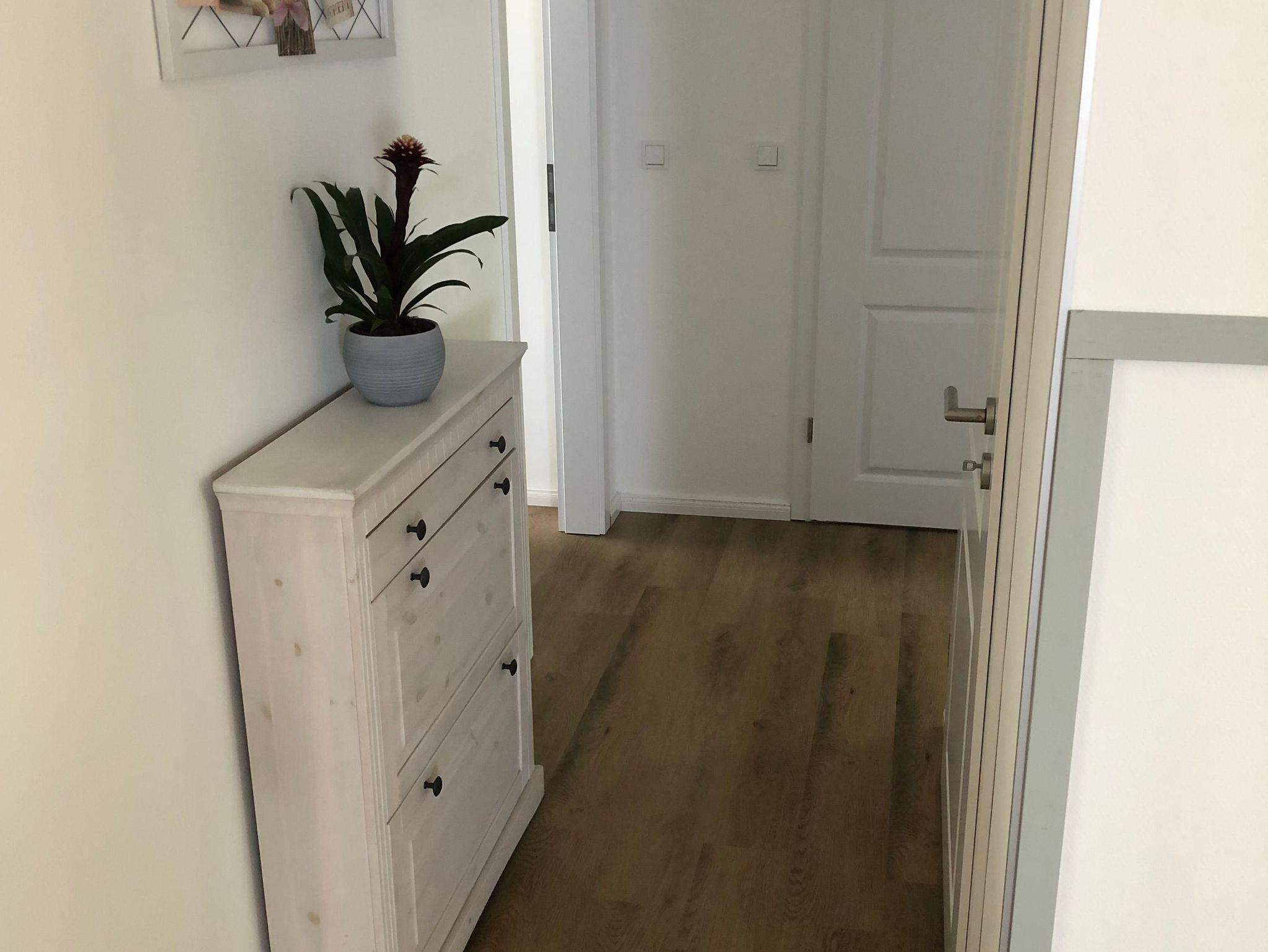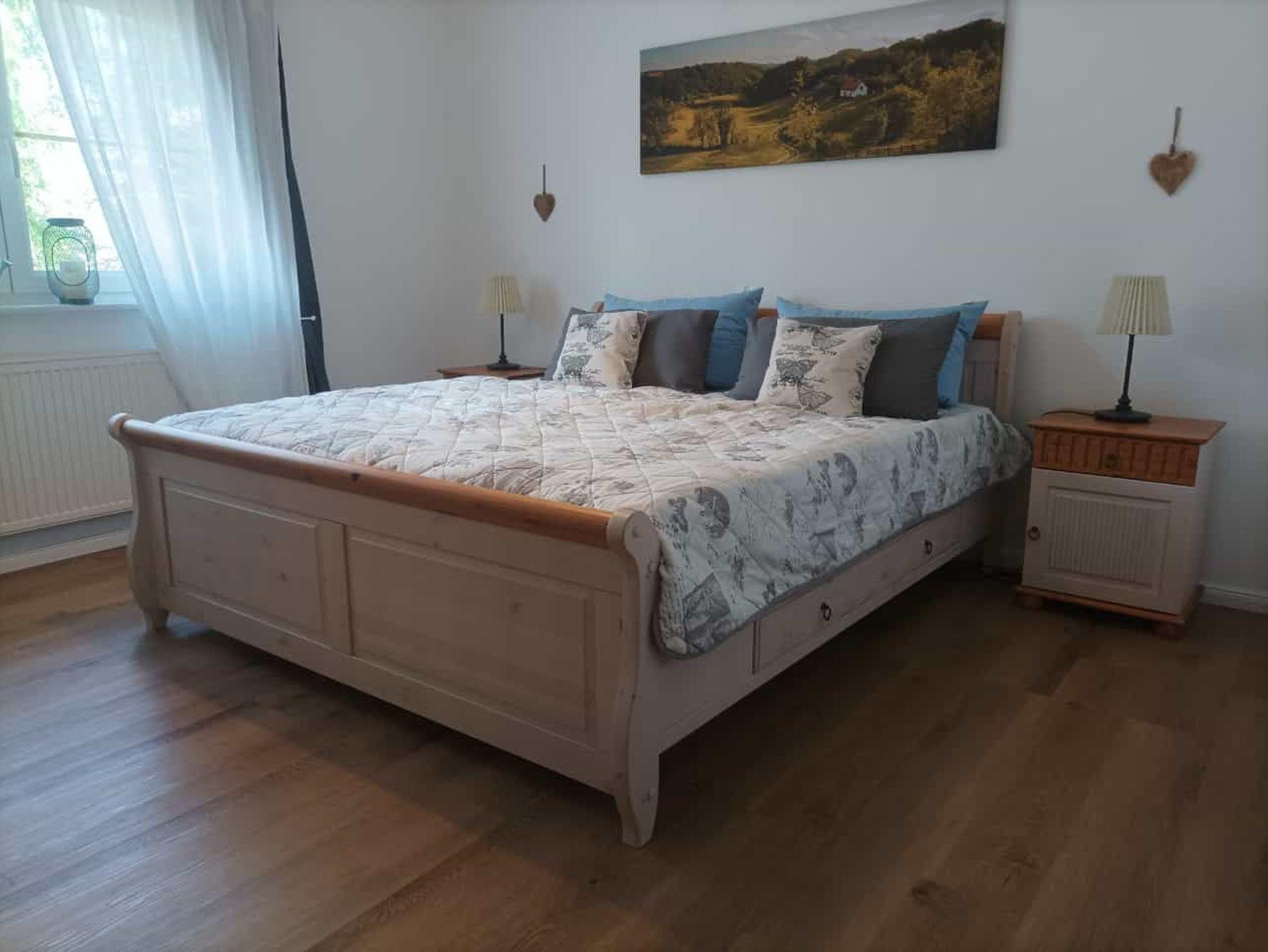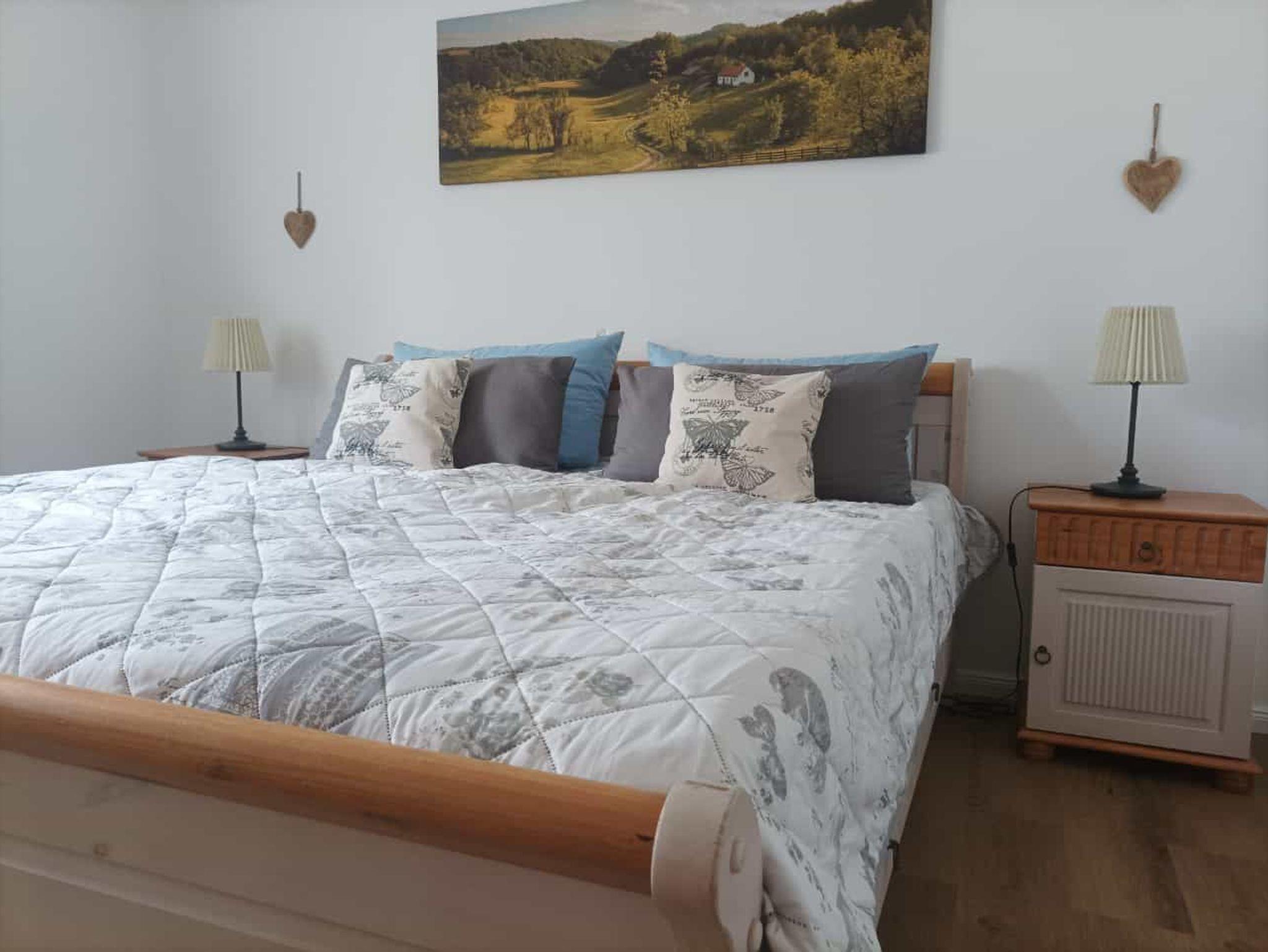 Das Haus verfügt neben einem hellen Flur über 2 Schlafzimmer mit Doppelbett und 2 Einzelbetten, die als Doppelbett gestellt werden können. Die Möbel sind alle aus Echtholz. Die Schlafzimmer lassen sich verdunkeln. Das Master-Schlafzimmer ist mit einem Smart-TV mit DVD Player ausgestattet.