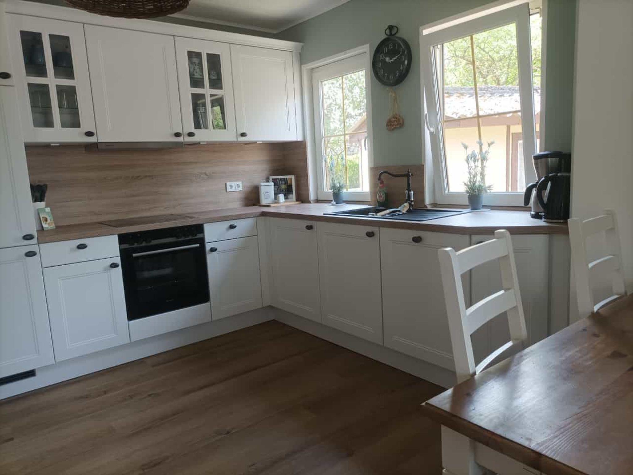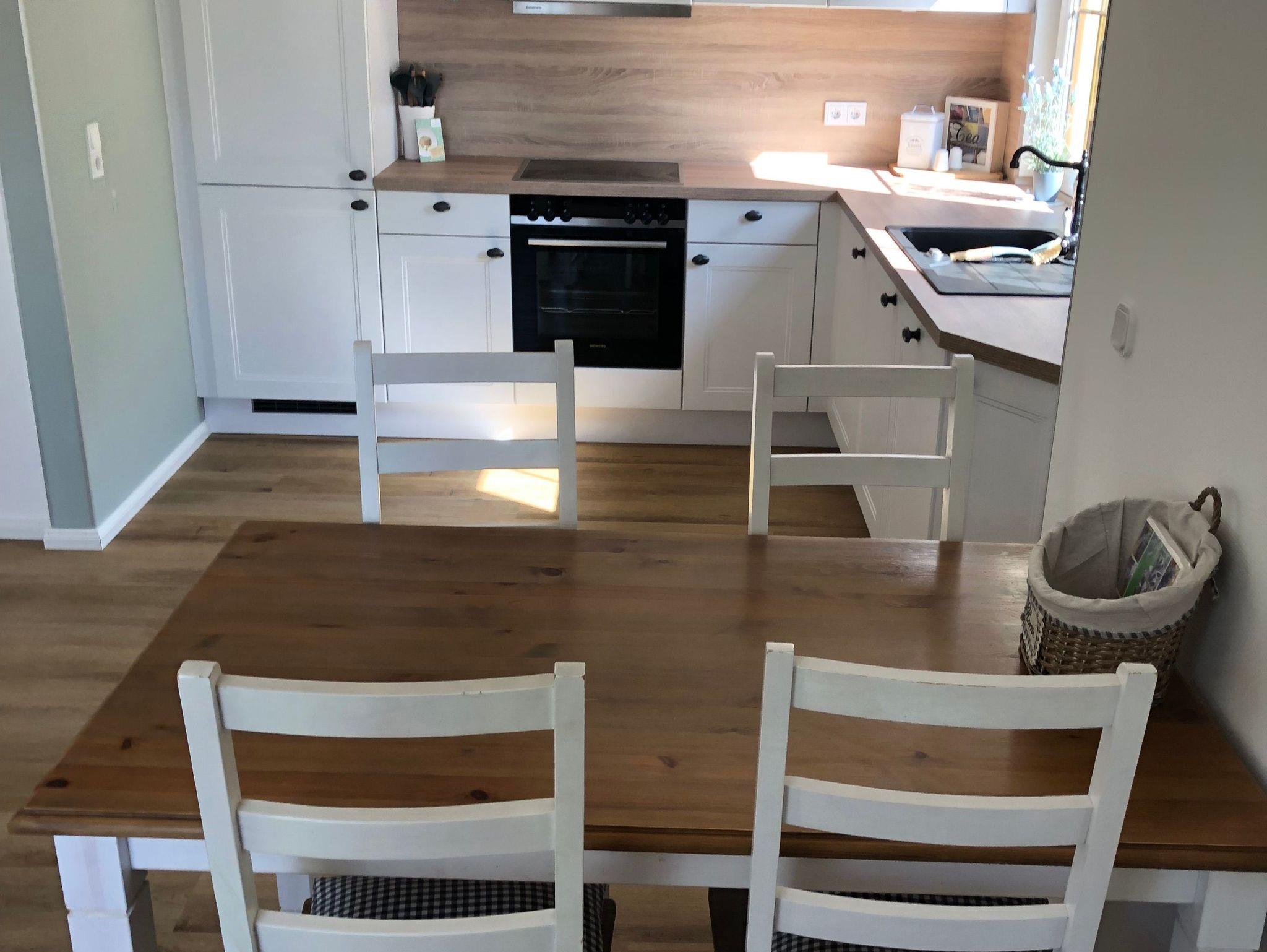 Die neue hochwertige Küche von Nolte ist voll ausgestattet für bis zu 5 Personen. Sie verfügt über einen größeren Kühlschrank mit 2 Gefrierschubladen, einem Cerankochfeld, Bachofen mit Teleskop-Vollauszug, und ausreichender Beleuchtung in der ganzen Küche. Eine Umluft-Dunstabzugshaube und Unterbauleuchten unter den Hängeschränken bieten genug Licht beim Kochen. Eine große Spüle und eine Geschirrspülmaschine runden die sehr gut ausgestatteter Küche ab.