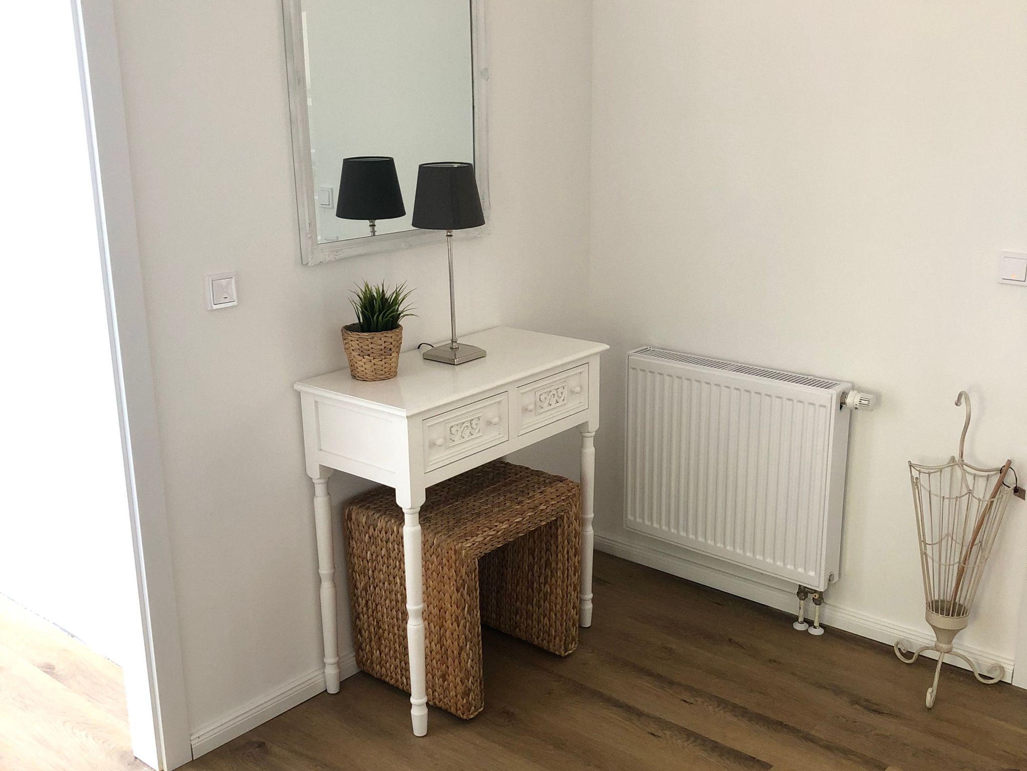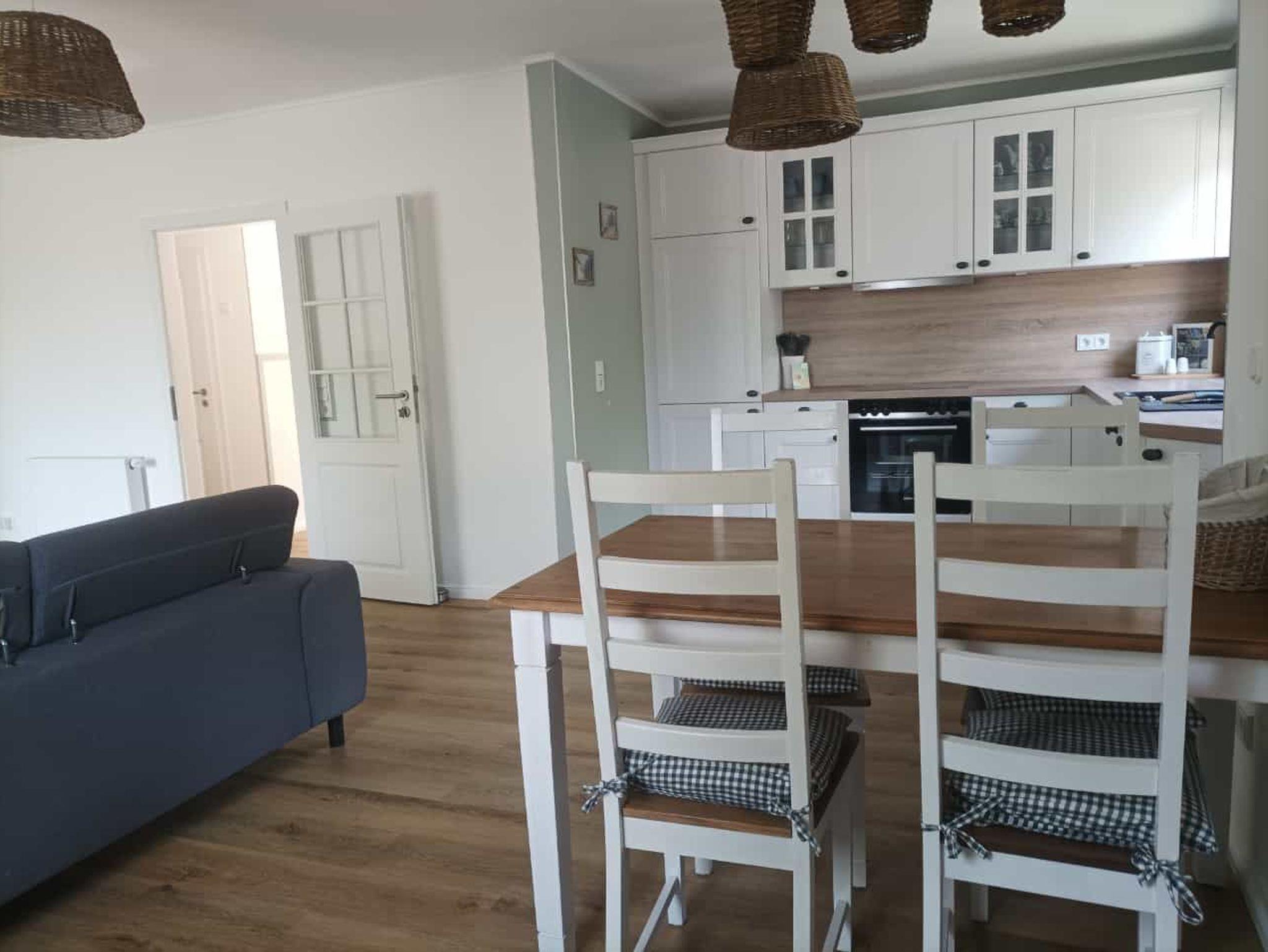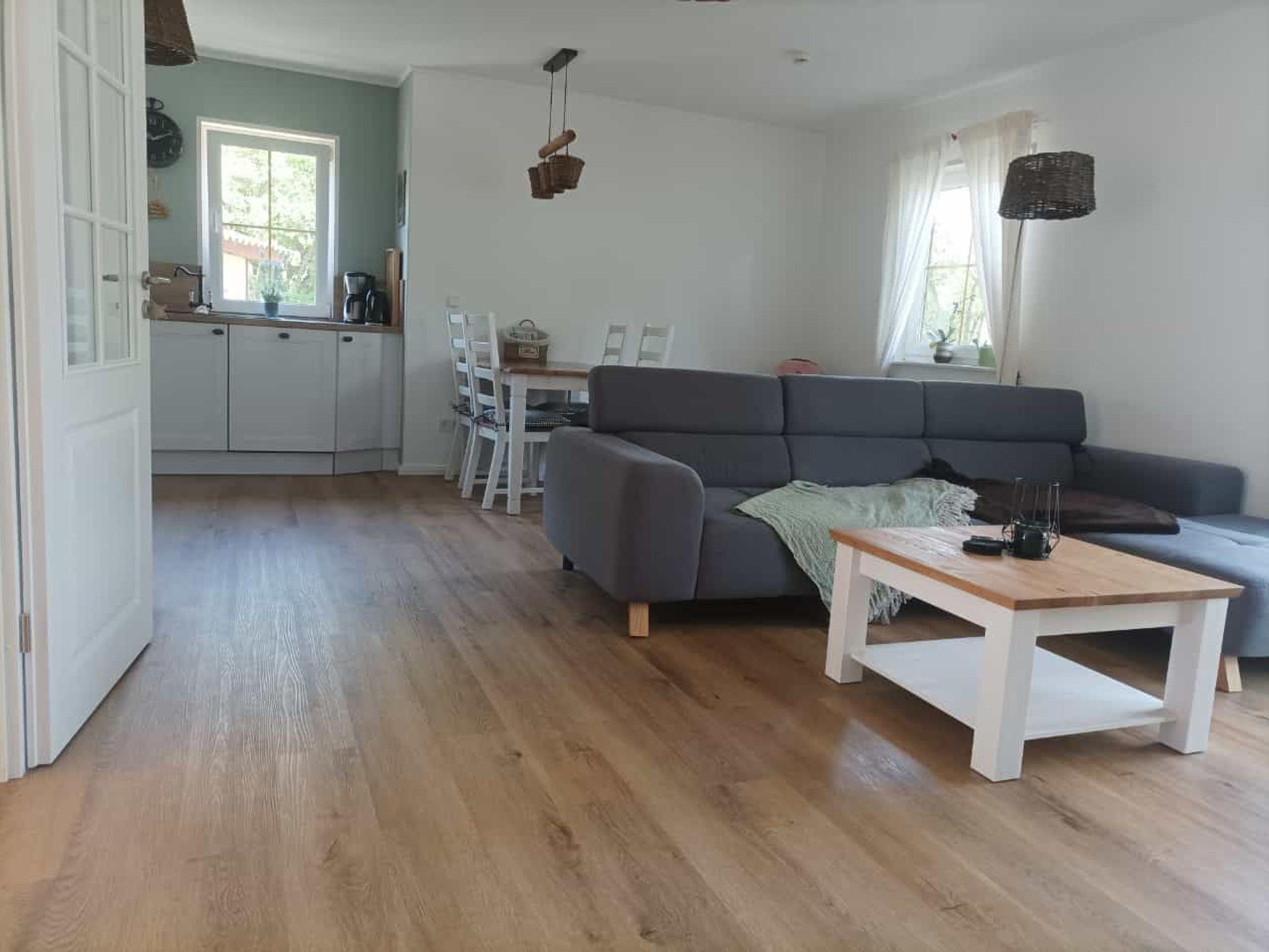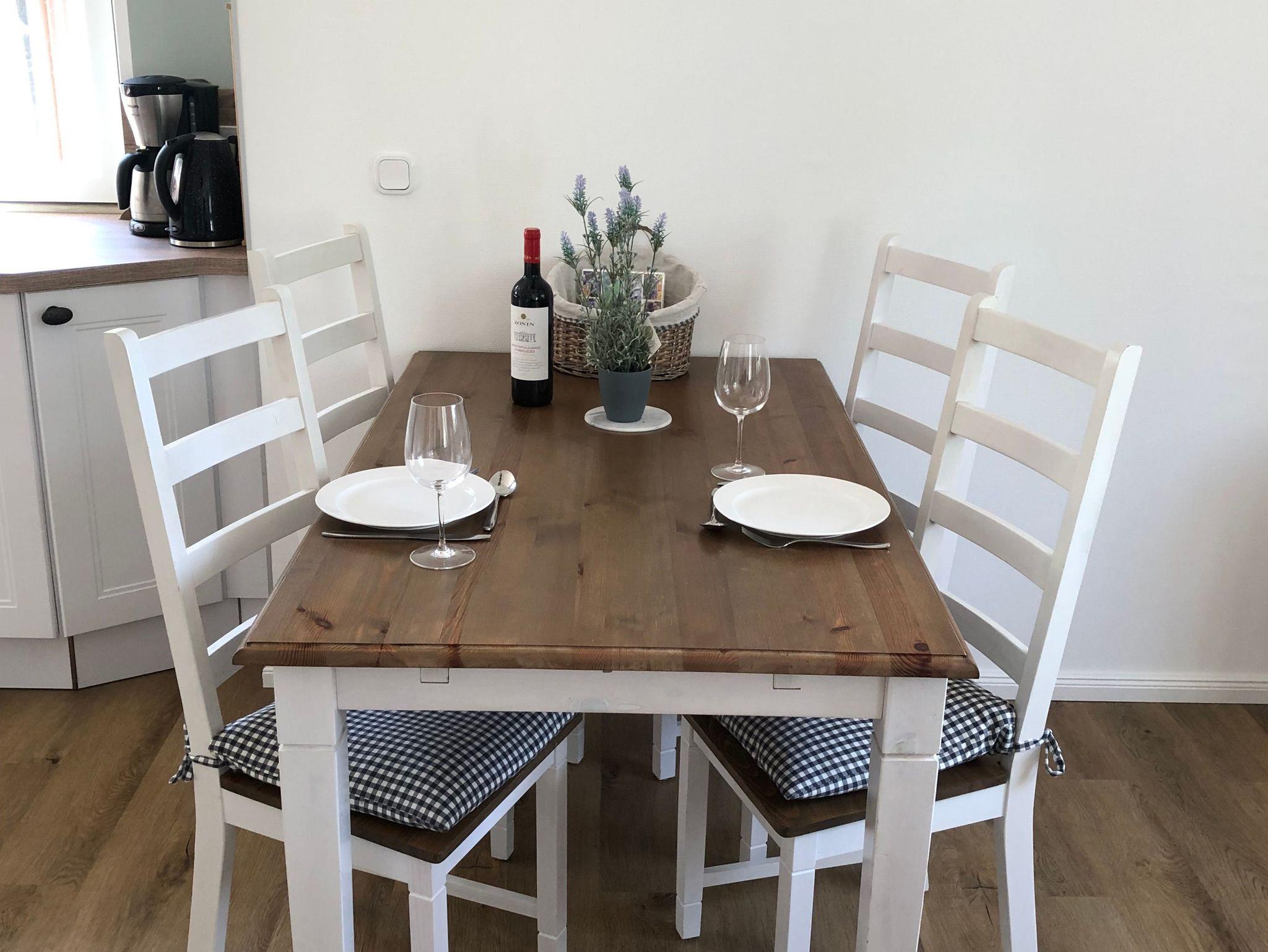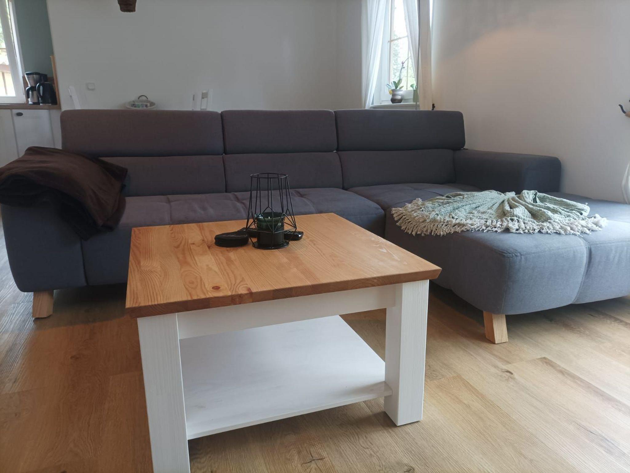 Das Große helle, mit Echtholzmöbeln ausgestattete Wohnzimmer verfügt über ein TV Board mit Smart TV und einem Barschrank zum abendlichen Anstoßen. Die Couch zum wohlfühlen besitzt keine Schlaffunktion. Die Essecke bietet Platz für 4 Personen. Es gibt zudem einen Kinderhochstuhl.