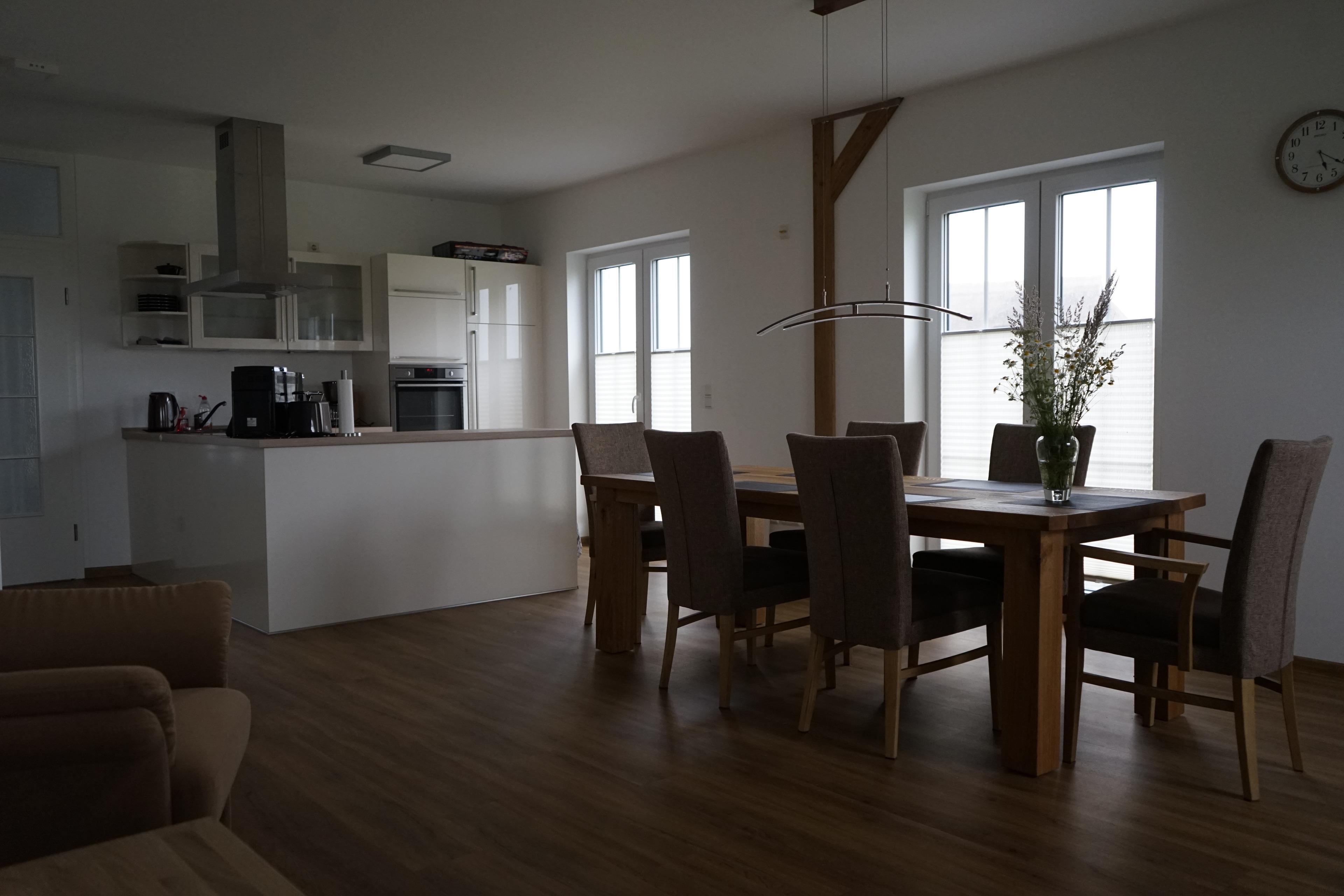 Die Haushälfte ist für die Nutzung durch 4 Erwachsene(+ 1Kind bis 2 Jahre) konzipiert. So ist gewährleistet, dass den Nutzern ein großzügiges Raumangebot unterbreitet werden kann.