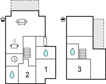 Badezimmer (nr. 3) - WC. Warmes und kaltes Wasser. Dusche