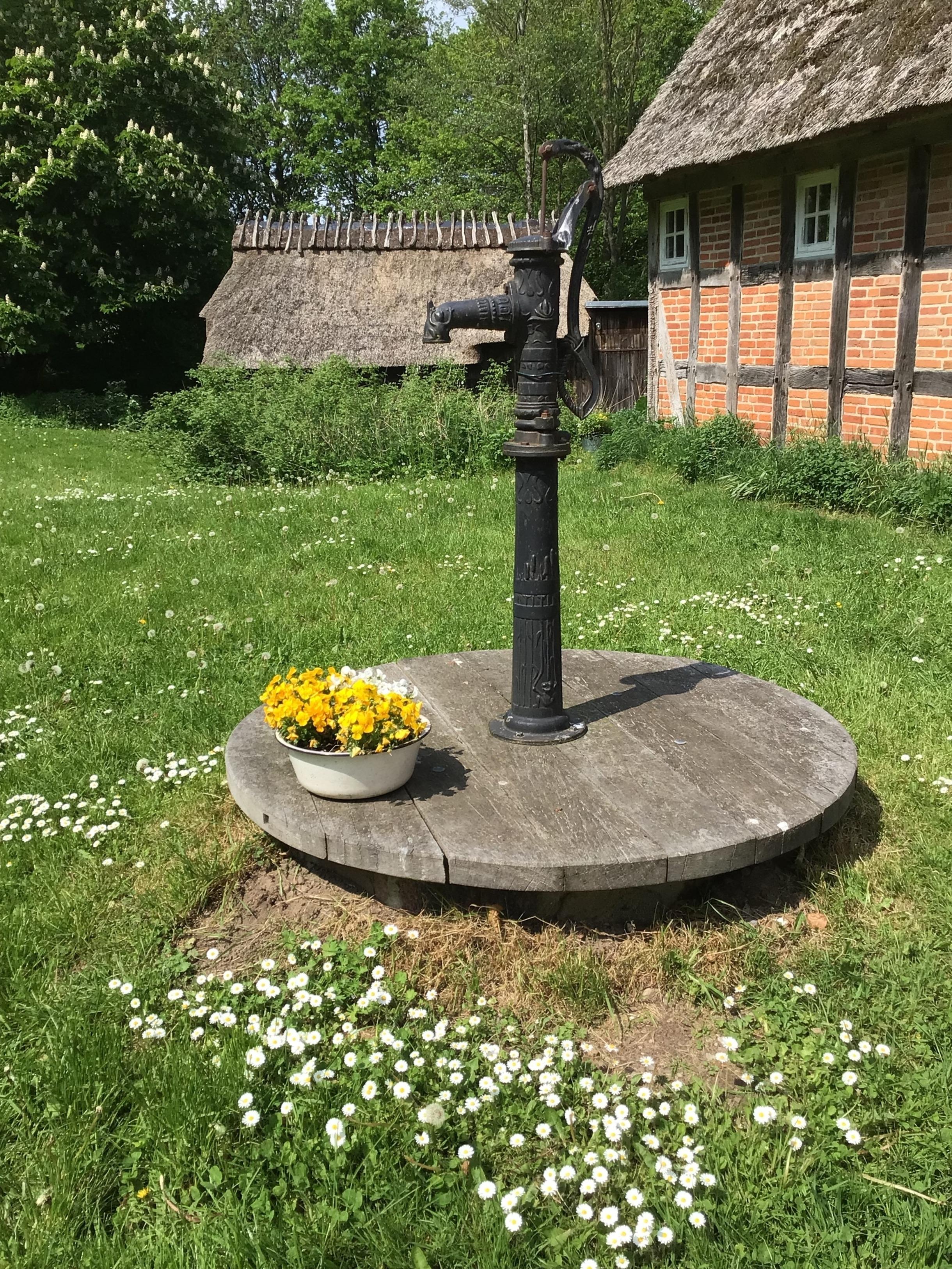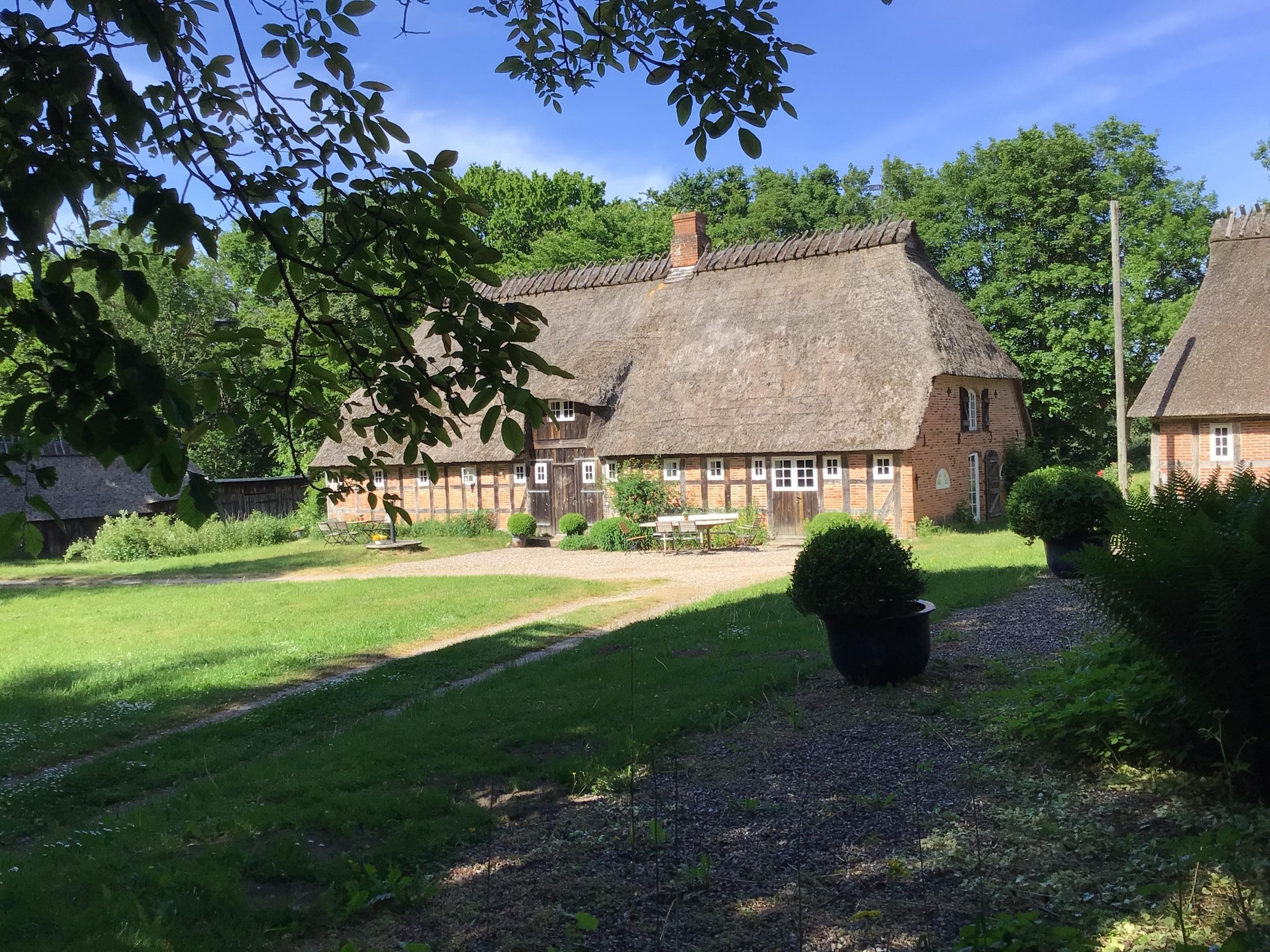 Reetgedeckte Dreiseit-Hofanlage in Angeln, unter Denkmalschutz stehend. Restauriert unter Berücksichtigung der ursprünglichen Materialien und Baupläne. Der Hof wird als ökologischer Ackerbaubetrieb im Nebenerwerb bewirtschaftet.