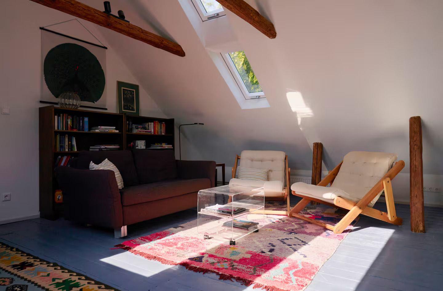 Das Ferienhaus bietet Platz für bis zu sieben Personen und erstreckt sich über vier Zimmer, darunter zwei Schlafzimmer. In einem der Schlafzimmer erwartet Sie ein gemütliches Doppelbett, während das andere mit zwei komfortablen Einzelbetten ausgestattet ist. Das Zusammenspiel von rustikalem Charme und modernem Komfort setzt sich in der gut ausgestatteten Küche fort. Hier finden Sie nicht nur einen Kühlschrank mit Eiswürfelspender, sondern auch einen hochmodernen Induktionsherd sowie eine Espressomaschine. Ein gemütlicher Esstisch vor der Küche lädt zu gemeinsamen Mahlzeiten ein.