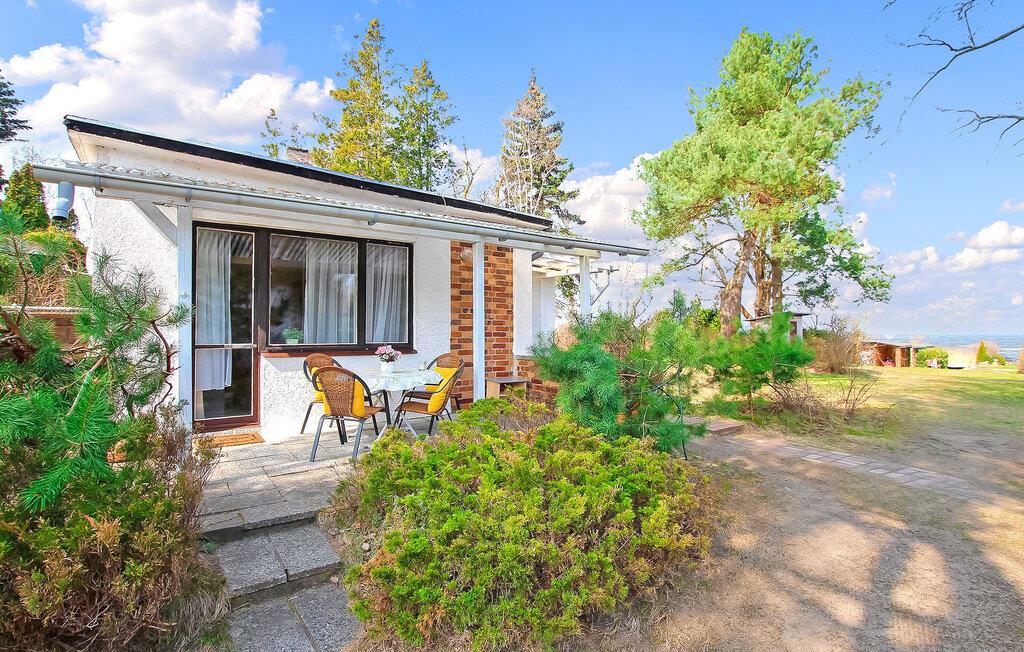 Die acht Ferienhäuser liegen auf einem 2500 qm großen Natur-/Wassergrundstück direkt am Stettiner Haff. Jedes Ferienhaus ist individuell und separat. Vom Grundstück führt ein Weg direkt zum Strand (ca. 50 m). Alle Ferienhäuser verfügen über eine möblierte Terrasse oder einen Außensitzplatz mit Grill und einen Parkplatz direkt am Bungalow. Dieses Ferienhaus ist ausgestattet mit Wohnzimmer mit Schlafcouch, Sitzecke und Kaminofen, Schlafzimmer mit Doppelbett, Essdiele, Kochnische mit E-Herd, DU/WC, E-Heizung. Es steht direkt am Wasser.