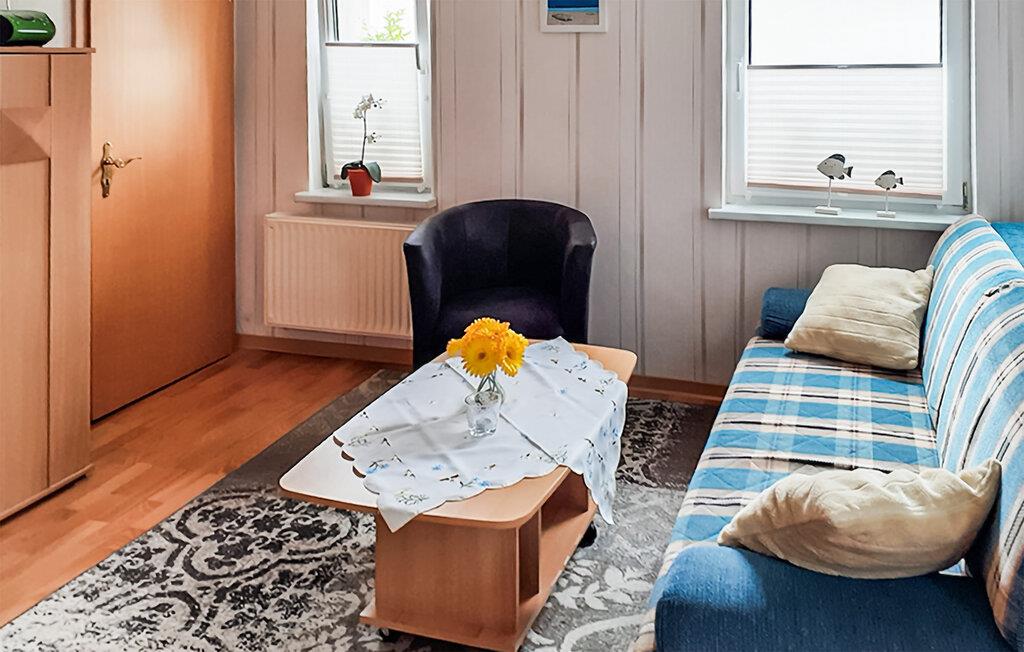 Das Ferienhaus befindet sich separat auf dem 1300 qm großen Wohngrundstück des Eigentümers in ruhiger Orts- und Waldrandlage. Der Badestrand am Stettiner Haff ist ca. 600 Meter entfernt. Es ist ausgestattet mit: Wohnraum (Polstermöbel, TV, Radio), offene Küchenzeile mit Pantry (E-Kochfeld, Kühlschrank mit Tiefkühlfach, Mikrowelle, Esstisch, div. Küchengeräte), Schlafraum über Treppe (Doppelbett, Rollbett), DU/WC, Zentralheizung. Zur Verfügung stehen möblierte Terrasse bzw. Sitzecken auf dem gepflegten und ruhigen Gartengrundstück, Grill, Fahrradraum und PKW-Stellplatz. Im Gesamtpreis inkl.: Bettwäsche, Handtücher, Wasser- und Energieverbrauch, Endreinigung. Vor Ort zu zahlen: Kurtaxe. Haustiere sind in dieser Unterkunft nicht gestattet.