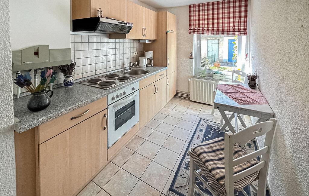Gemütliches Apartment für 2 Personen im Erdgeschoss am Hafen von Ueckermünde mit Küche, Sitzbereich und kostenlosem Parkplatz.