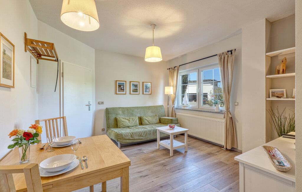 Diese Zweiraum-Ferienwohnung im Erdgeschoss und die kleine Einraum-Ferienwohnung im Obergeschoss befinden sich separat in einem Wohnhaus nur wenige Gehminuten vom schönen Strandbad entfernt. Auch Einkaufsmöglichkeiten und Restaurants sind bequem fußläufig zu erreichen. Zur Verfügung stehen ein Parkplatz sowie eine abschließbare Unterstellmöglichkeit für Fahrräder. WLAN kann nach Absprache mit dem Eigentümer frei geschaltet werden. Im Gesamtpreis enthalten sind die Endreinigung, Wasser und Energie. Vor Ort zu zahlen: Kurtaxe. Bettwäsche und Handtücher können mitgebracht oder vor Ort gemietet werden. Haustiere: In diesem Objekt ist die Mitreise eines kleinen Hundes bis zu einer Risthöhe von 40 cm erlaubt. Alle anderen Haustiere bedürfen vor Buchung der Zustimmung des Eigentümers.