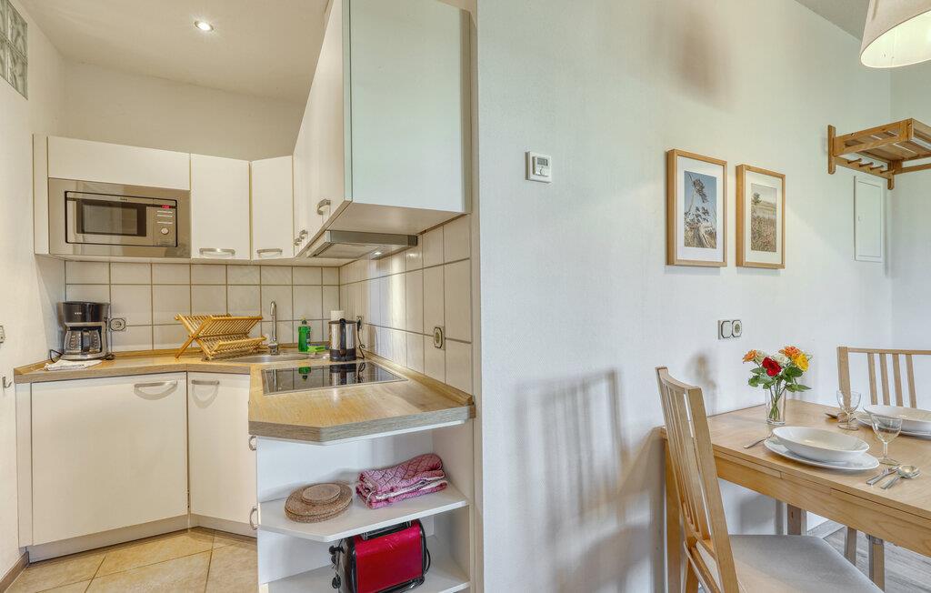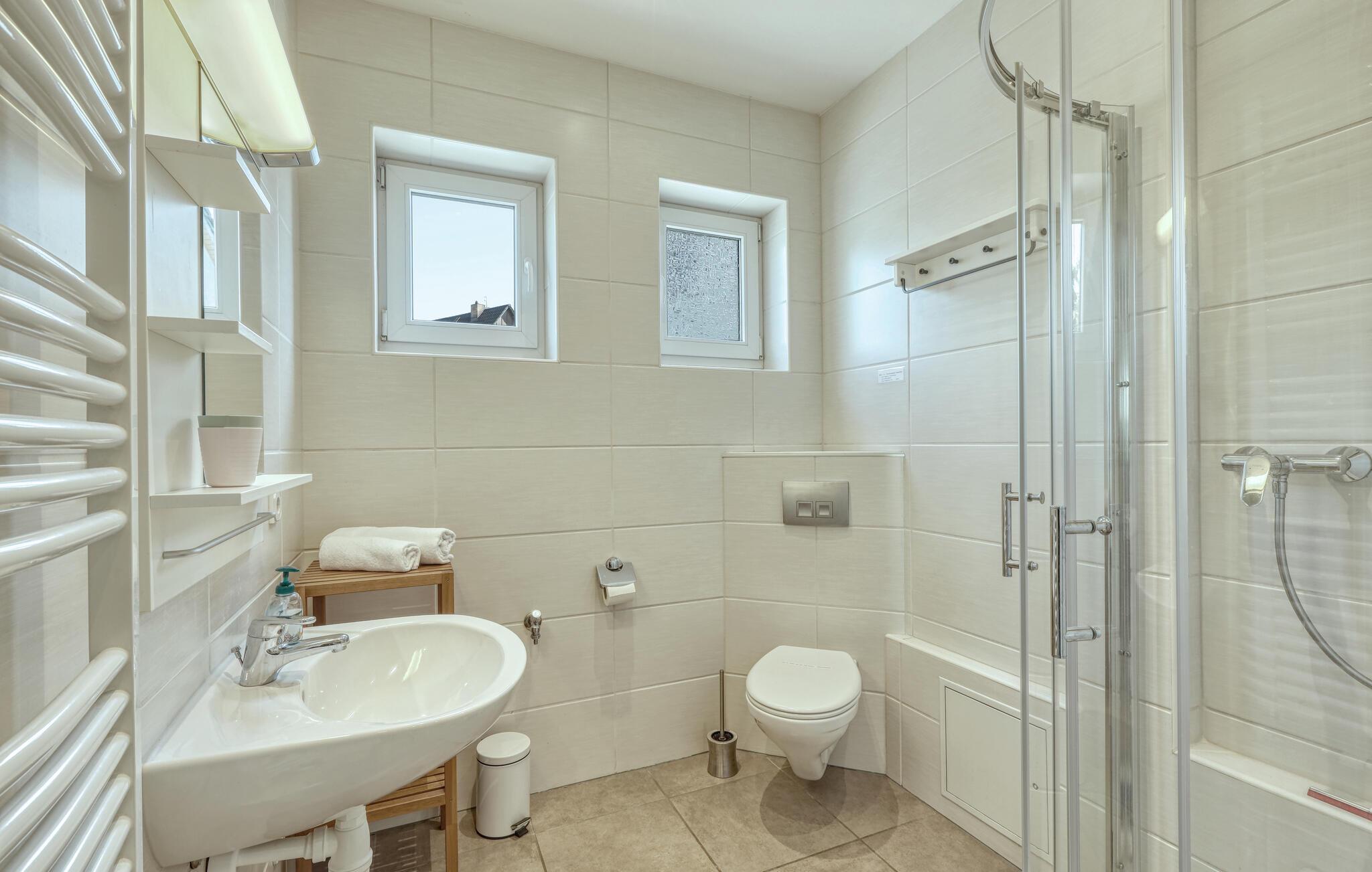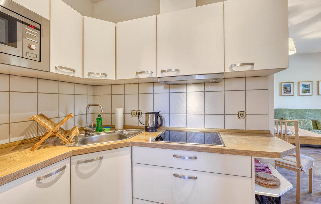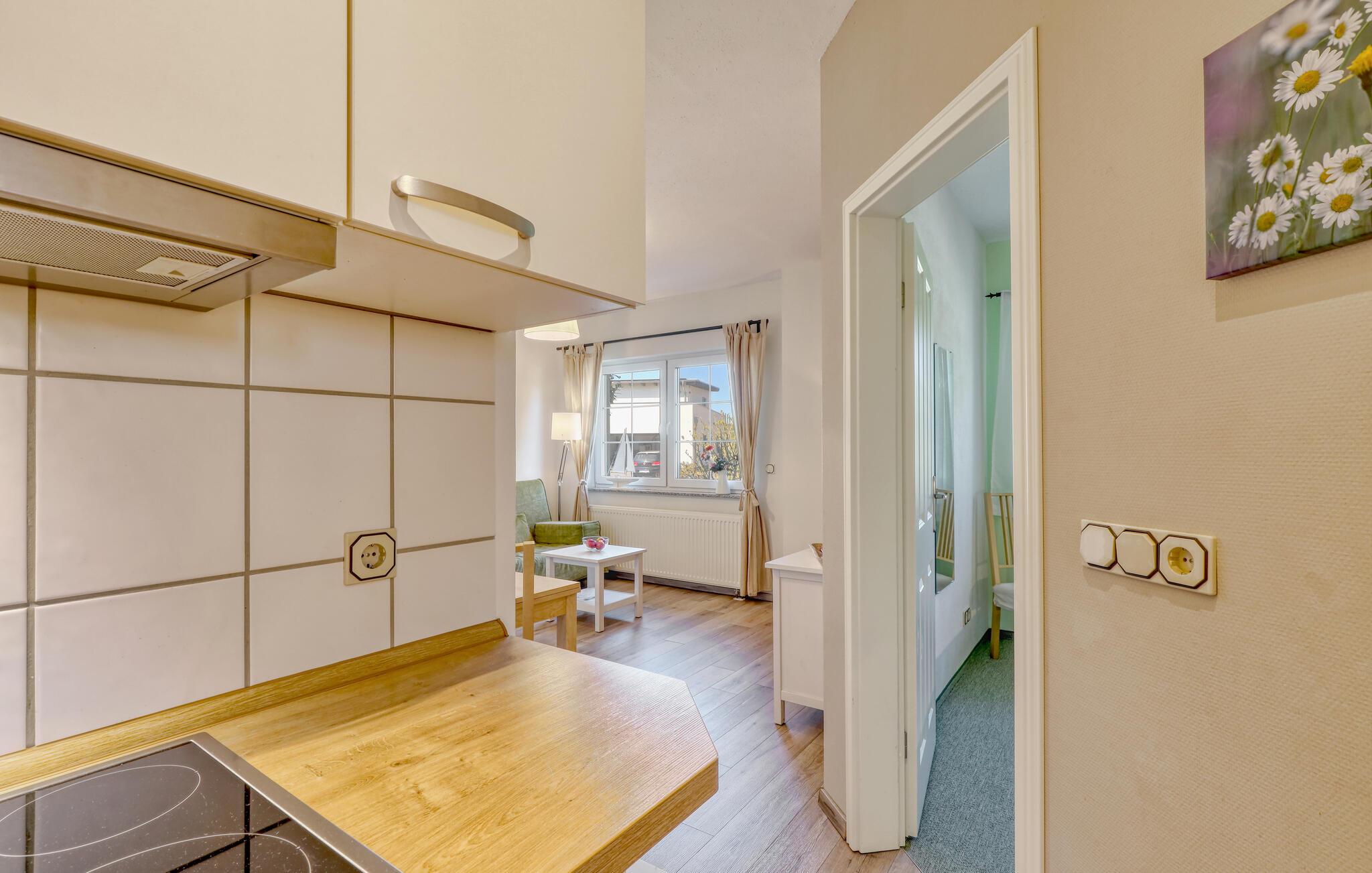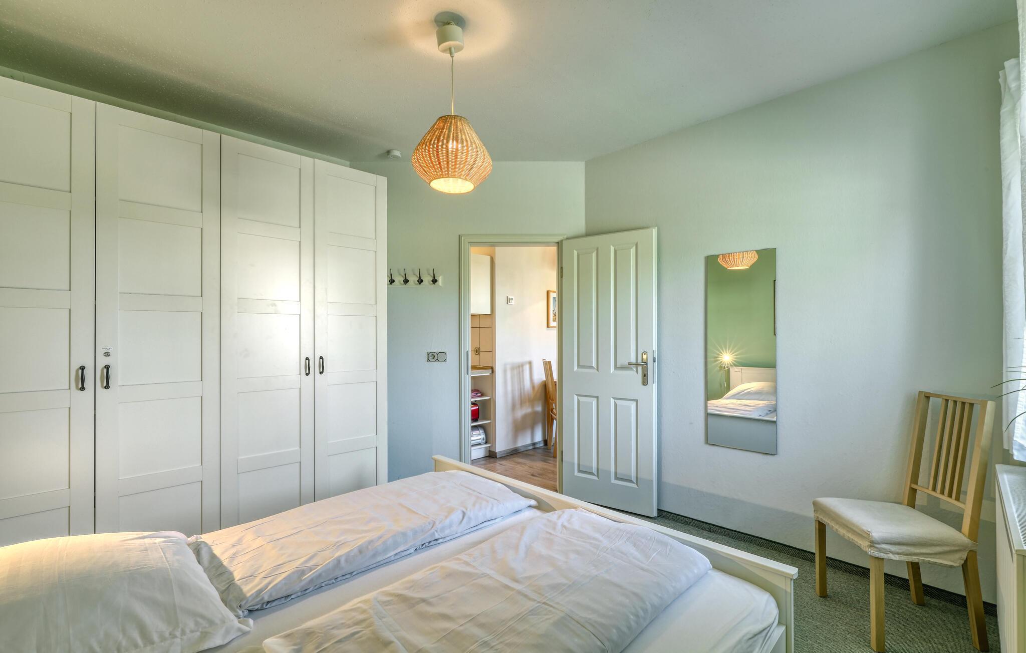 Diese Ferienwohnung befindet sich separat im Erdgeschoss. Sie wurde 2016 komplett neu ausgebaut und ausgestattet mit einem Wohnraum (Polstermöbel mit Schlaffunktion, Esstisch, Flachbild-TV, Radio, CD/DVD), einer offenen Küchenzeile (Ceran-Kochfeld, Kühlschrank mit Tiefkühlteil, Mikrowelle mit Grill, div. Küchengeräte), einem Schlafraum (Doppelbett), DU/WC und Zentralheizung.