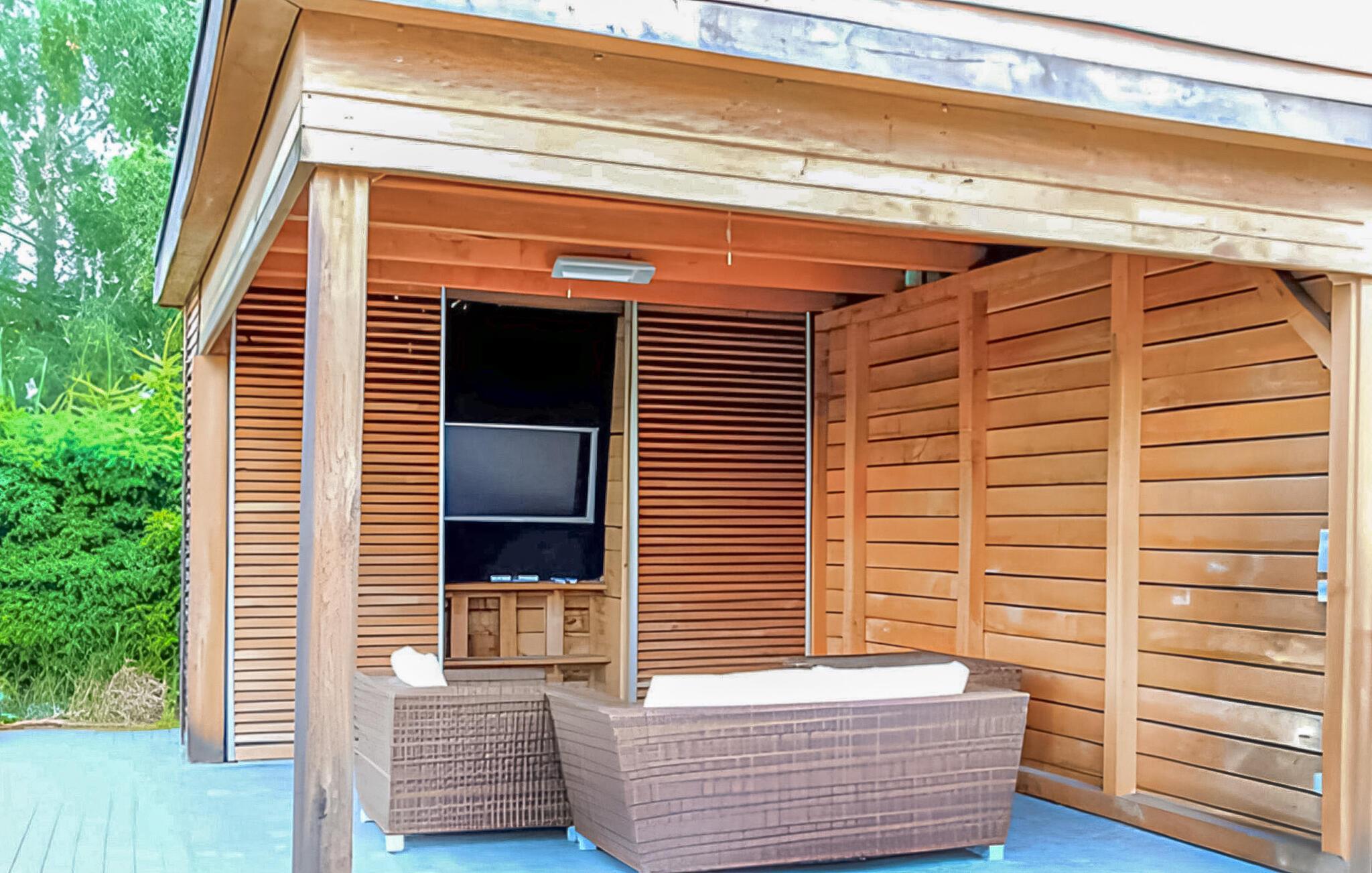 Das freistehende Ferienhaus liegt separat auf dem 3500 qm großen Wohngrundstück des Vermieters in ruhiger Lage. Es ist komfortabel und hochwertig ausgestattet mit: Wohnraum (Polstermöbel, Flatscreen-TV, HiFi), offene Küchenzeile komplett mit (E-Herd, Kühlschrank, Spülmaschine, Mikrowelle, Theke, diverse Küchengeräte), Schlafzimmer (Doppelbett), zweites Schlafzimmer (Polsterliege), Dusche/WC, Elektroheizung. Außerdem gibt es WLAN, ein Kinderbett, Hochstuhl, Terrasse mit Loungemöbeln, überdachte Sitzecke mit Flatscreen-TV und Sky-Anschluss, PKW-Stellplatz, Fahrradabstellraum und 2 Leihfahrräder (gegen Gebühr).