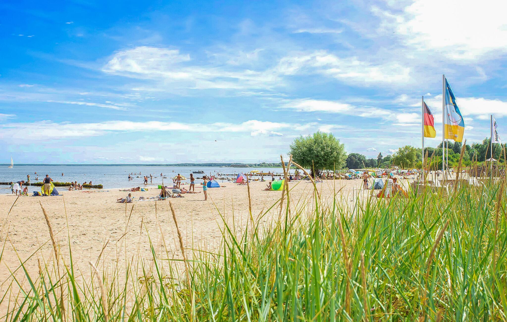 Mit direktem Blick auf den wunderschönen Yachthafen der Lagunenstadt befindet sich die 2019 neu und geschmackvoll eingerichtete Ferienwohnung für bis zu 4 Erwachsene und ein Kleinkind im 1. OG eines der fünf Apartmenthäuser. Zum feinsandigen Strand am Stettiner Haff mit Sport- und Spielmöglichkeiten sowie kulinarischen Angeboten sind es nur wenige Schritte. In der Lagunenstadt selbst gibt es einen Kinderspielplatz, Grillplatz, Fahrradverleih, Bootscharterangebote und PKW-Stellplätze.Die ca. 56 qm große, zentral beheizte Nichtraucherwohnung verfügt über Insektenschutzgitter an den Fenstern, einen Wohnraum (Polstersitzecke, Essecke, Flatscreen-TV, Radio, gratis WLAN), zwei Schlafzimmer (1 x Doppelbett, 1 x 2 Einzelbetten, Kinderbett). Es gibt eine separate Küche (E-Herd, Mikrowelle, Geschirrspüler, Kühlschrank, div. Küchenkleingeräte, kleine Essecke), ein Badezimmer (bodengleiche Dusche, WC) und einen Balkon. Im Gesamtpreis sind Endreinigung, Strom, Wasser und Bettwäsche enthalten. Handtücher sind bitte selbst mitzubringen. Vor Ort zu zahlen: Kurtaxe. Haustiere sind in diesem Objekt nicht erlaubt.