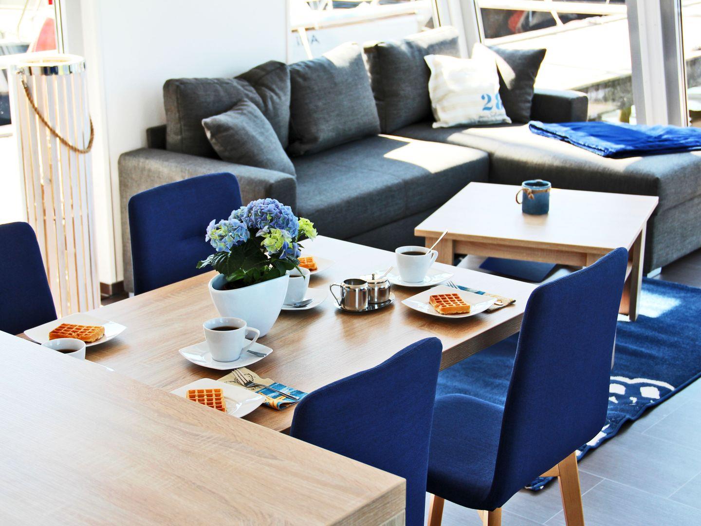 Erleben Sie besonderen Urlaub auf dem Wasser im modernen Hausboot "Xenia" mit Dachterrasse und Infrarot-Wärmekabine in Ueckermünde.