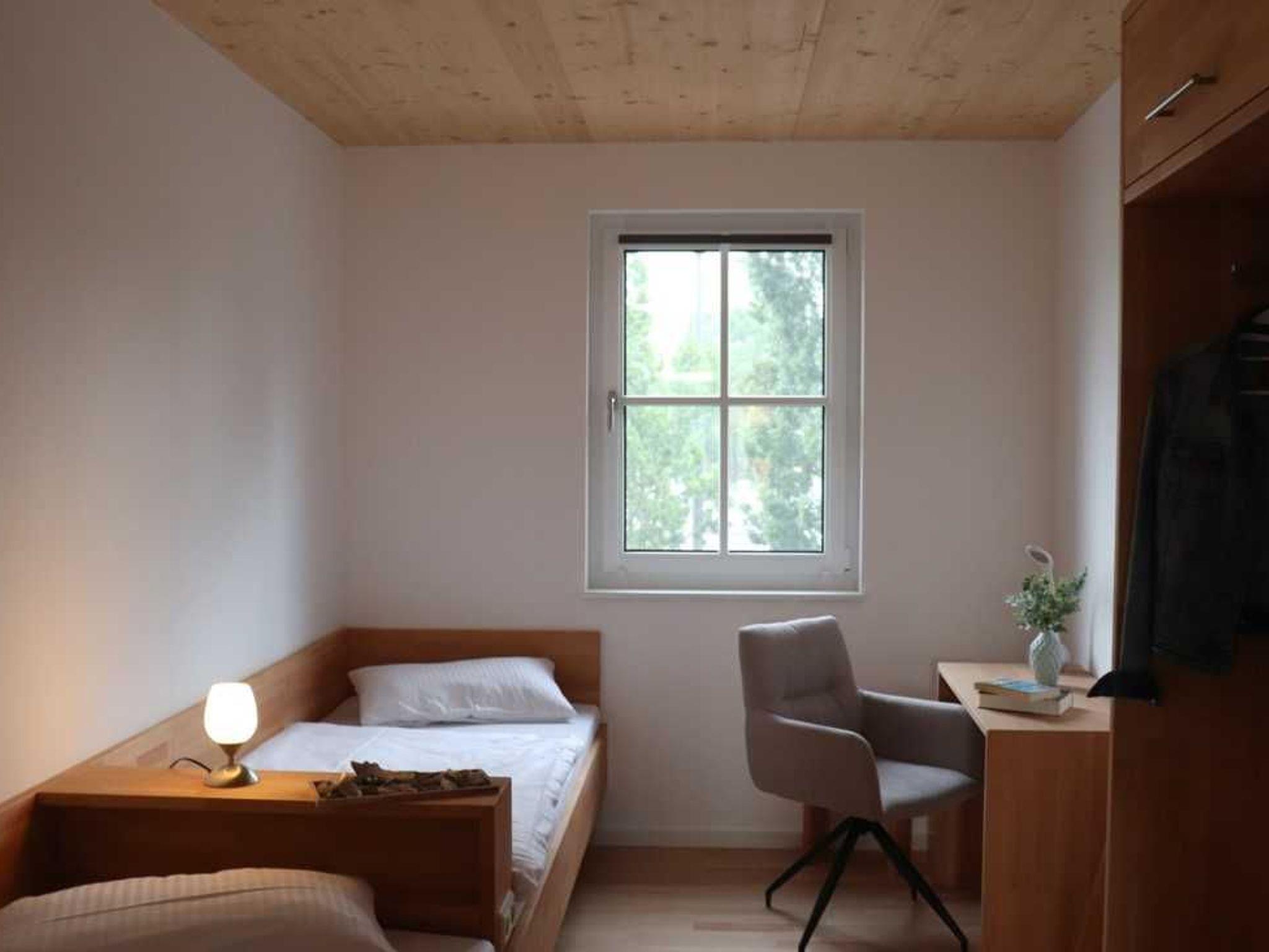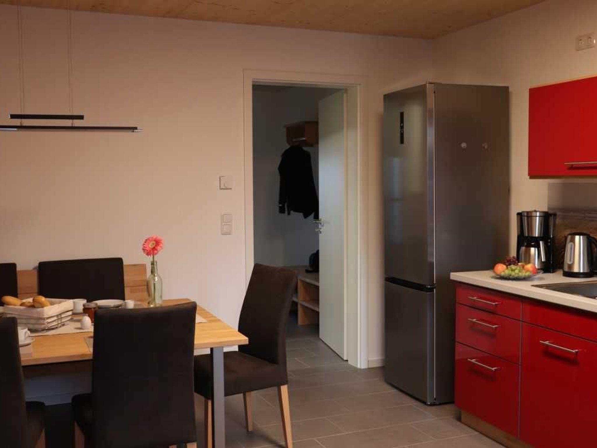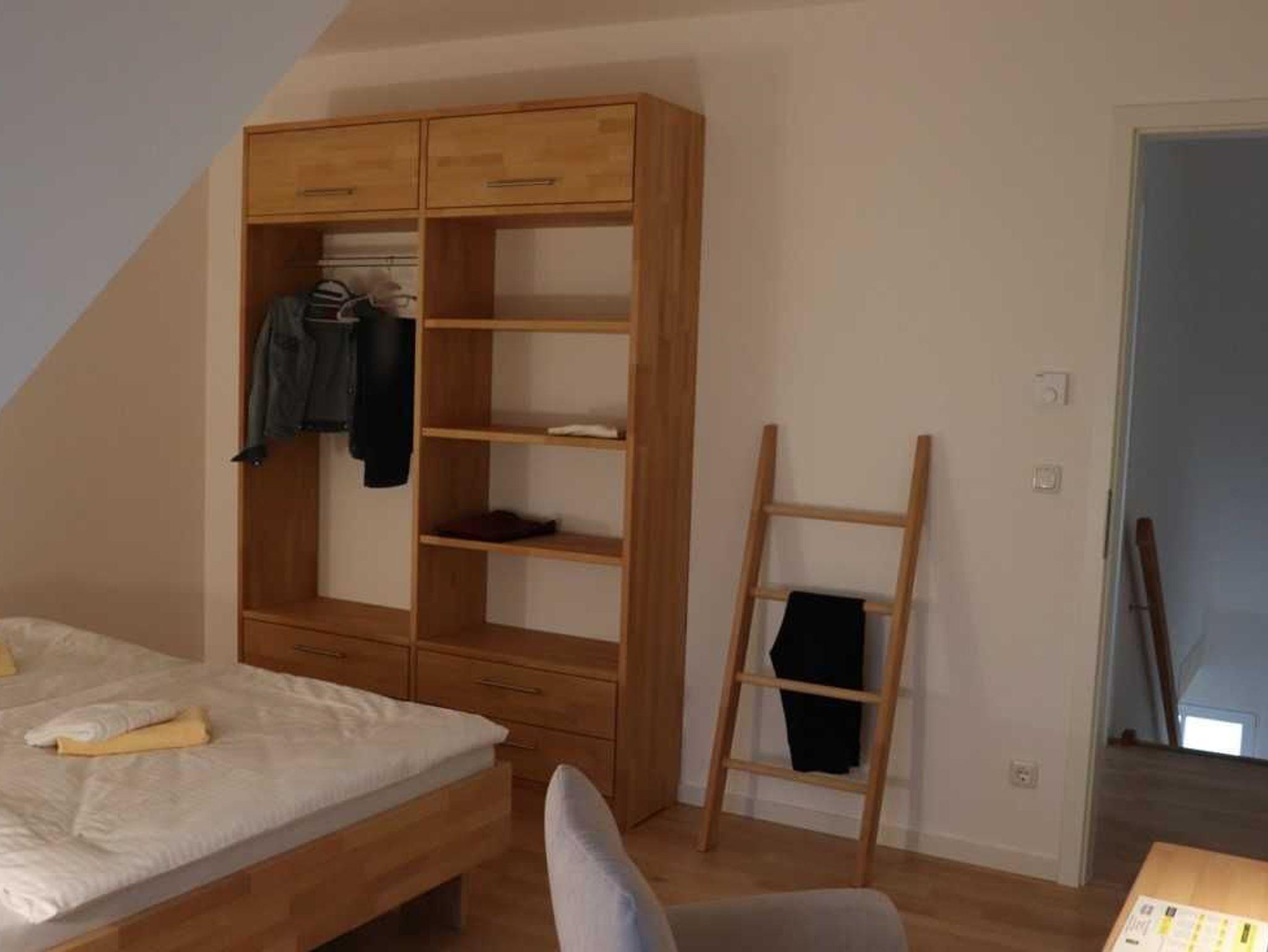 Die Einrichtung der Wohn- und Schlafräume ist mit Massivholzmöbeln gestaltet, die Fußböden im 1. u. 2. OG sind mit Parkett ausgelegt, im EG und im Bad sind die Fußböden gefliest. Das Haus ist mit einer Wärmepumpe ausgestattet, welche über die Fußböden heizen und an den warmen Tagen kühlen kann. Durch die diffusionsoffene Bauweise und die eingesetzten natürlichen Materialen erleben Sie ein neues Wohngefühl. Im Schuppen, der reichlich Platz für Fahrräder o.ä. bietet, steht für Sie ein Grill und ein Wäscheständer bereit. Gerne können Sie auch die Waschmaschine oder den elektrischen Wäschetrockner nutzen.