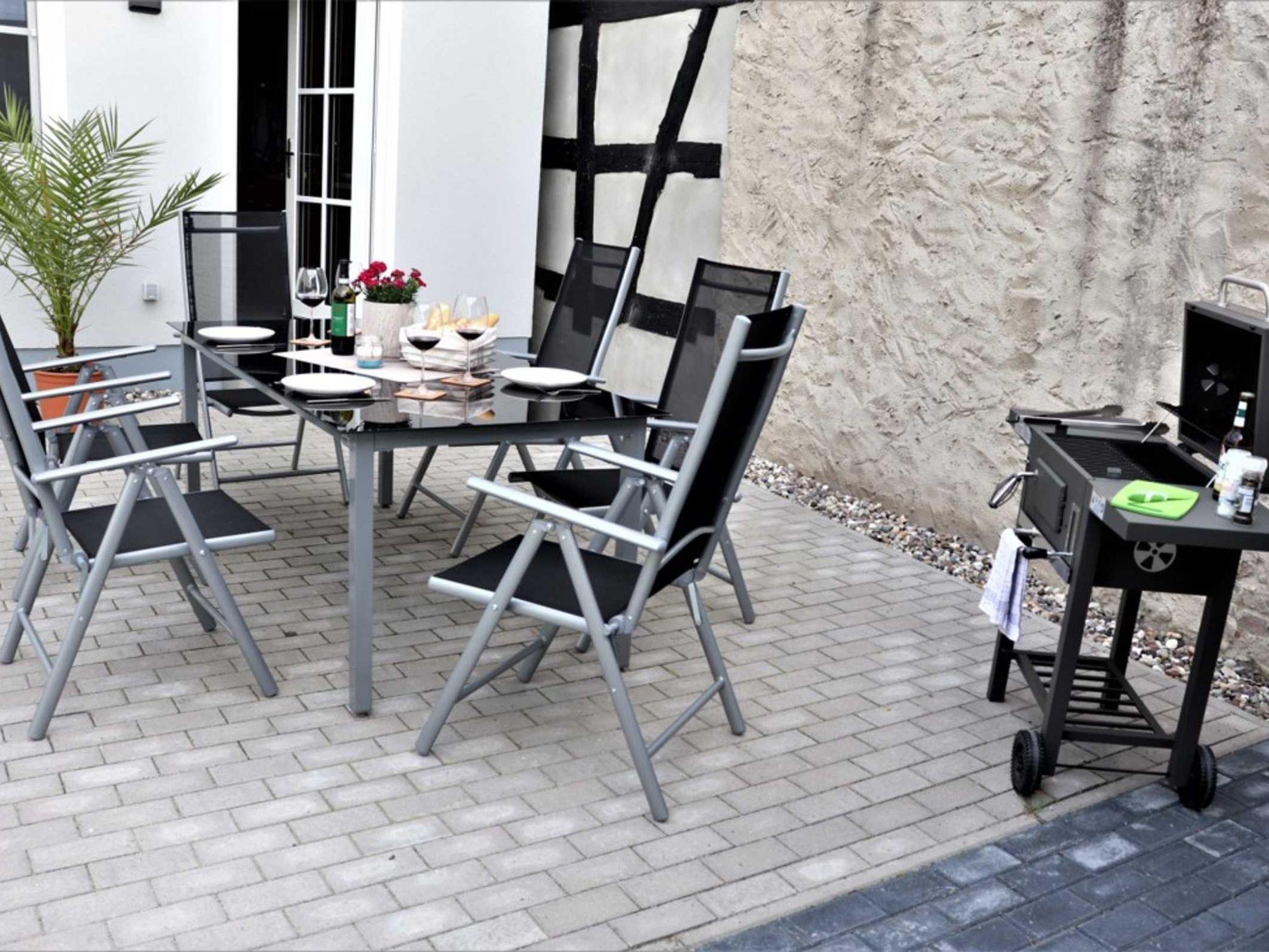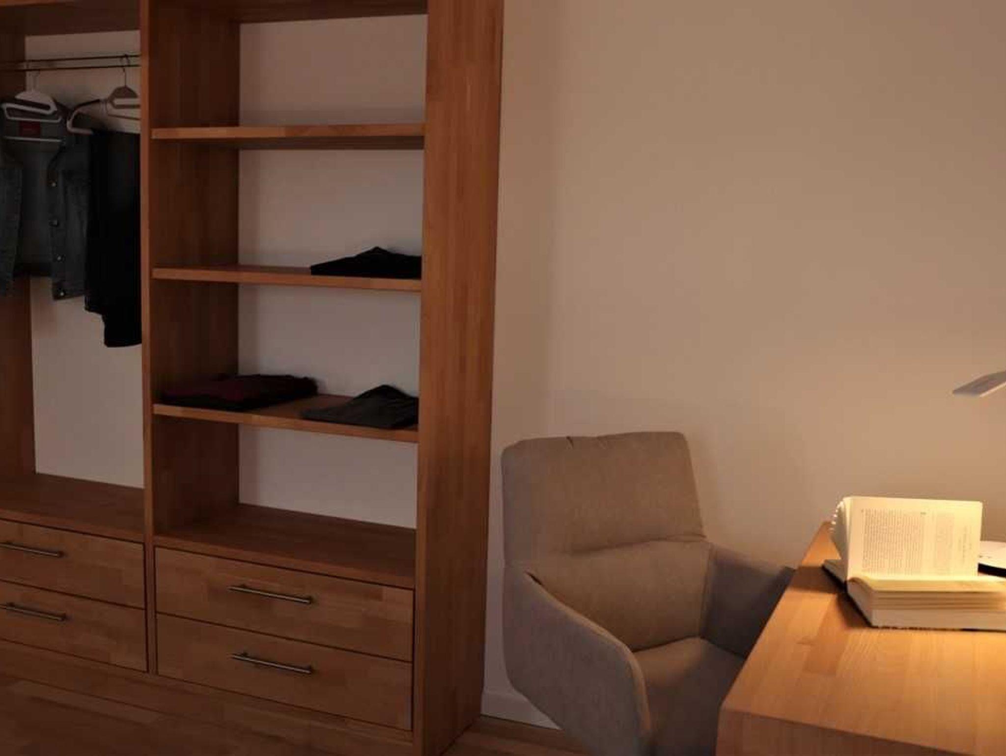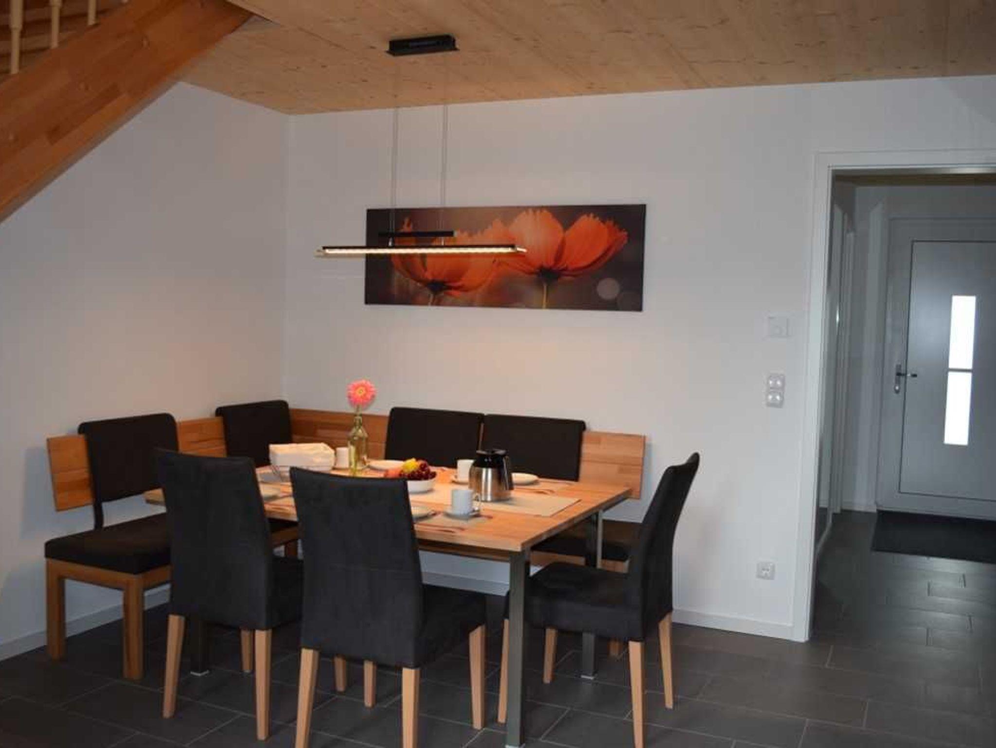 Die Einrichtung der Wohn- und Schlafräume ist mit Massivholzmöbeln gestaltet, die Fußböden im 1. u. 2. OG sind mit Parkett ausgelegt, im EG und im Bad sind die Fußböden gefliest. Das Haus ist mit einer Wärmepumpe ausgestattet, welche über die Fußböden heizen und an den warmen Tagen kühlen kann. Durch die diffusionsoffene Bauweise und die eingesetzten natürlichen Materialen erleben Sie ein neues Wohngefühl. Im Schuppen, der reichlich Platz für Fahrräder o.ä. bietet, steht für Sie ein Grill und ein Wäscheständer bereit. Gerne können Sie auch die Waschmaschine oder den elektrischen Wäschetrockner nutzen.