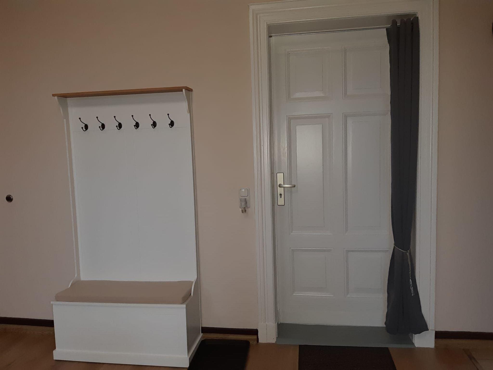 Die Ferienwohnung befindet sich im Erdgeschoss eines Mehrfamilienhauses mit nur 4 Stufen im Eingangsbereich. Die Räume wurden 2022 renoviert, sind groß, hell und haben hohe Decken.