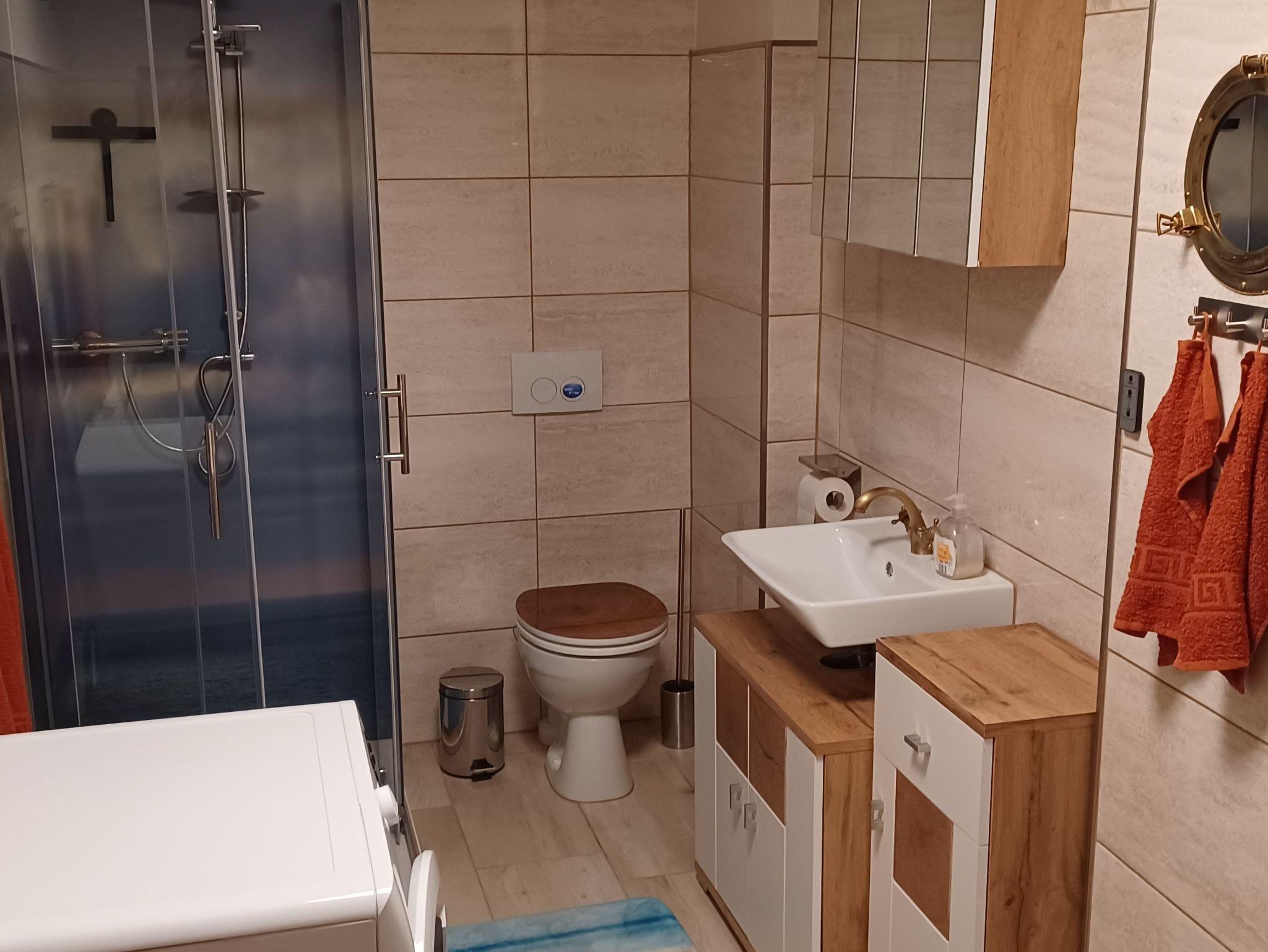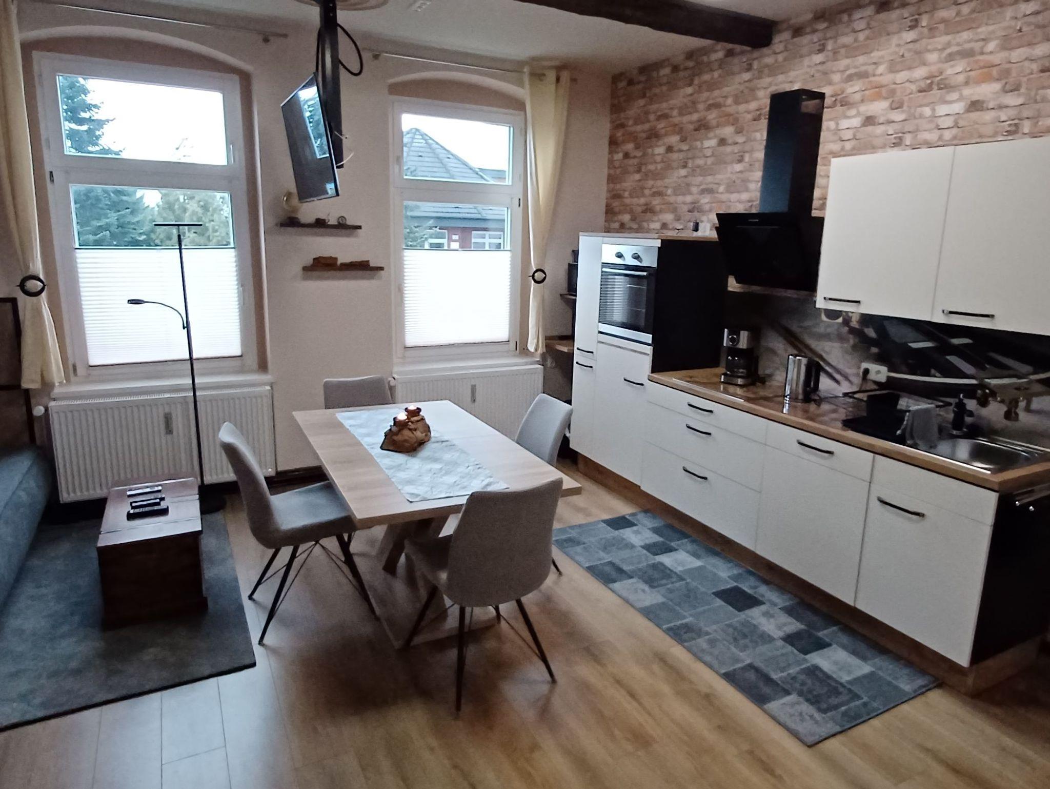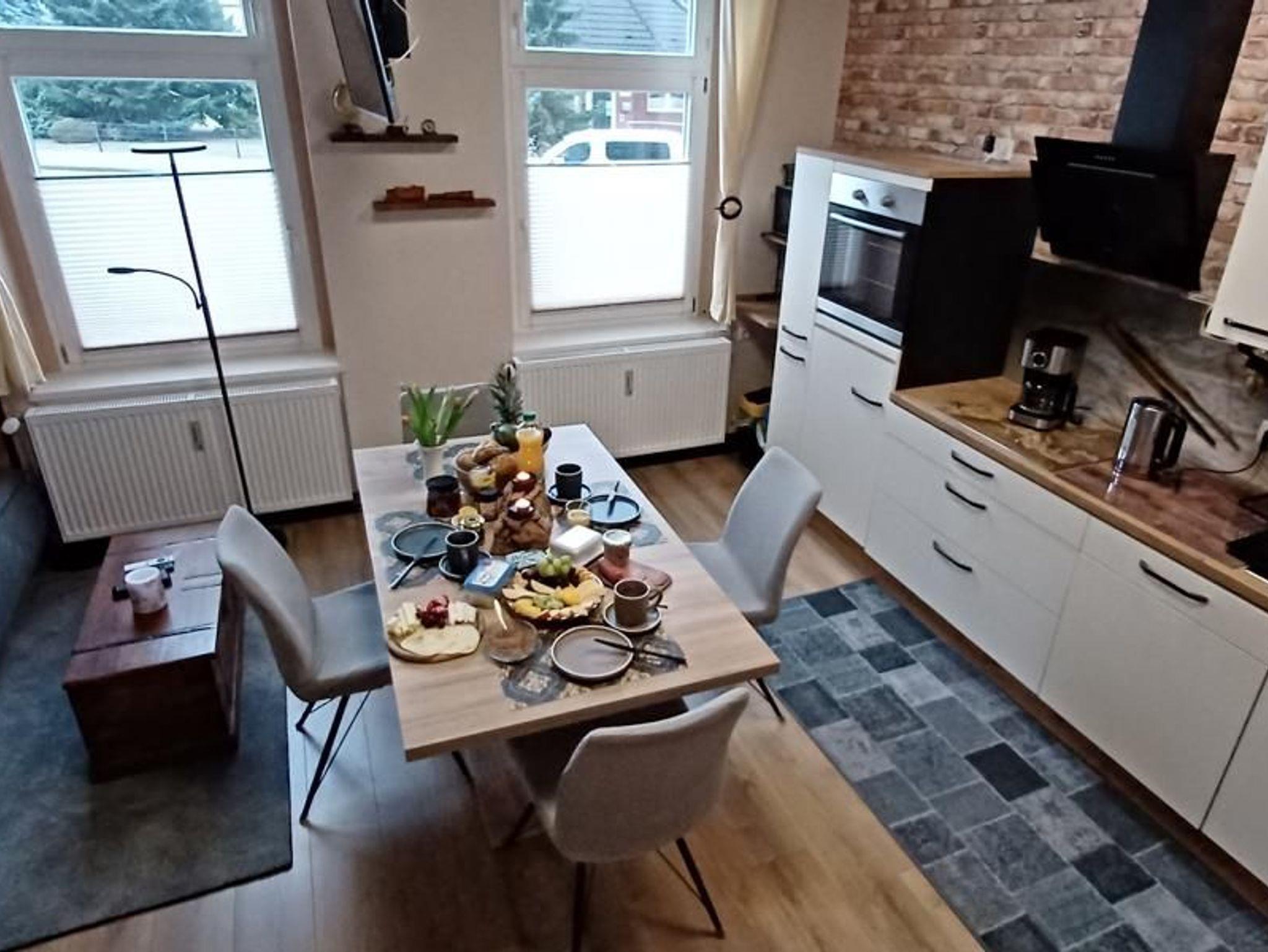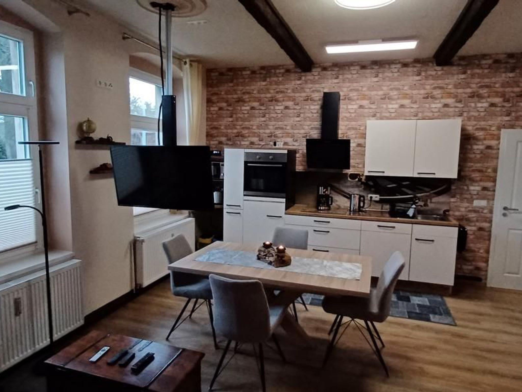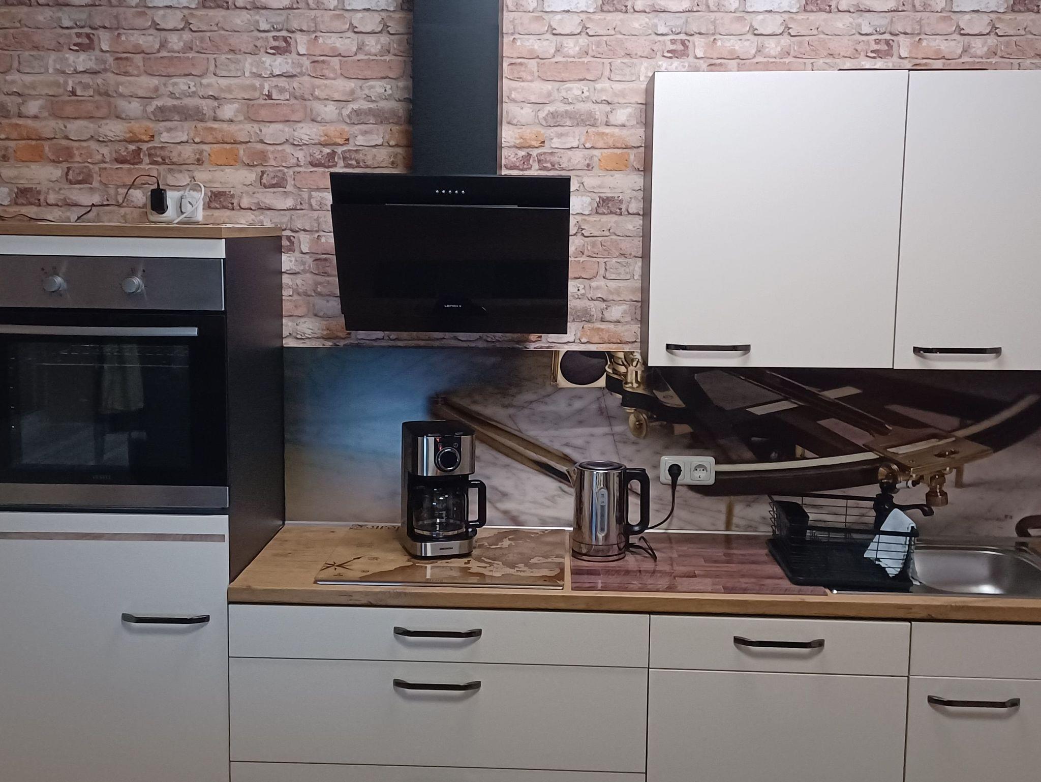 Sehr schöne, liebevoll renovierte 2-Raum-Wohnung in einem 1905 erbauten Mehrfamilienhaus. Die Wohnung ist mit neuen Möbeln ausgestattet und im altertümlich-maritimen Stil gestaltet. Sie verfügt über Annehmlichkeiten wie einen Wohn- und Küchenbereich, einen Kamin, eine Waschmaschine und eine ebenerdige Dusche.