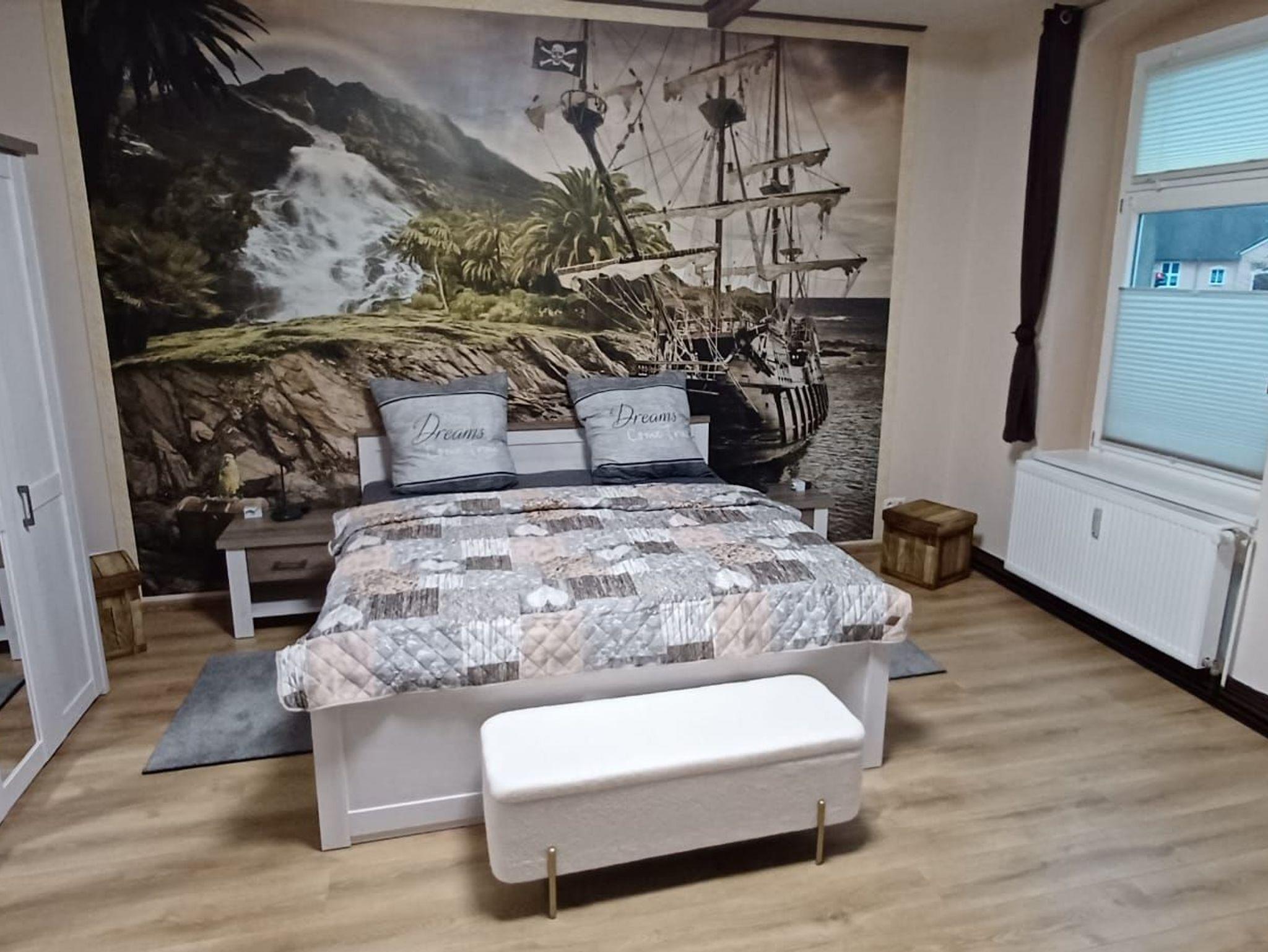 Sehr schöne, liebevoll renovierte 2-Raum-Wohnung in einem 1905 erbauten Mehrfamilienhaus. Die Wohnung ist mit neuen Möbeln ausgestattet und im altertümlich-maritimen Stil gestaltet. sie verfügt über Annehmlichkeiten wie einen Wohn- und Küchenbereich, einen Kamin, eine Waschmaschine und eine ebenerdige Dusche. Das Schlafzimmer ist mit einem großzügigen Doppelbett, TV und einer Leseecke mit einem gemütlichen Sessel ausgestattet.
