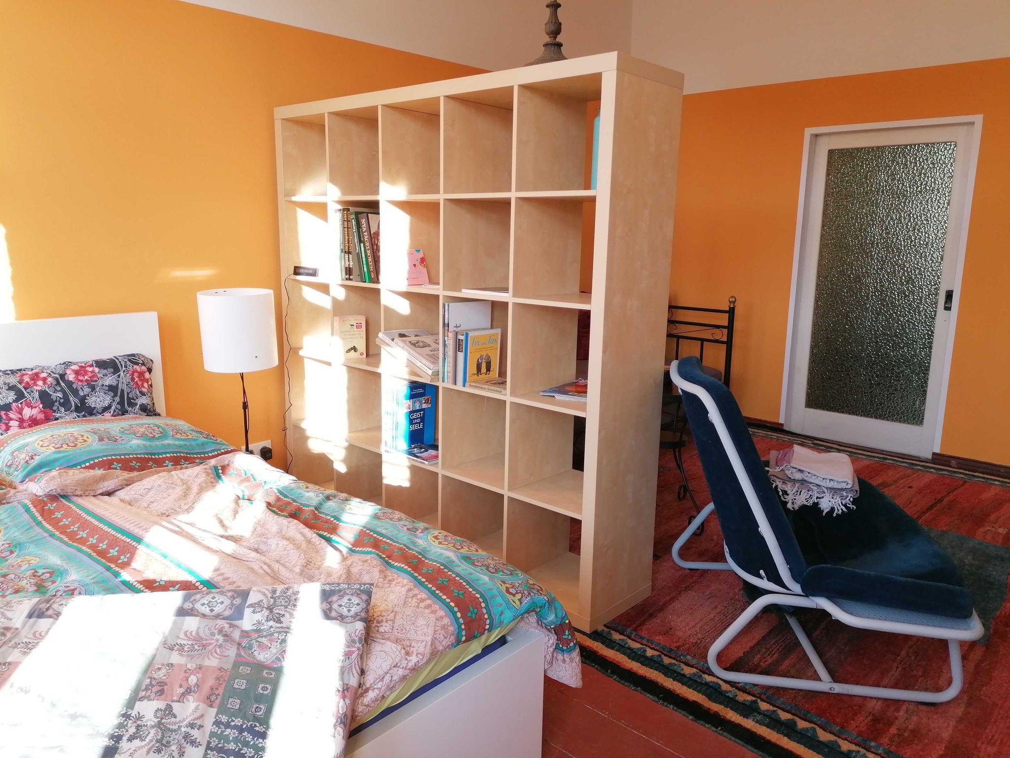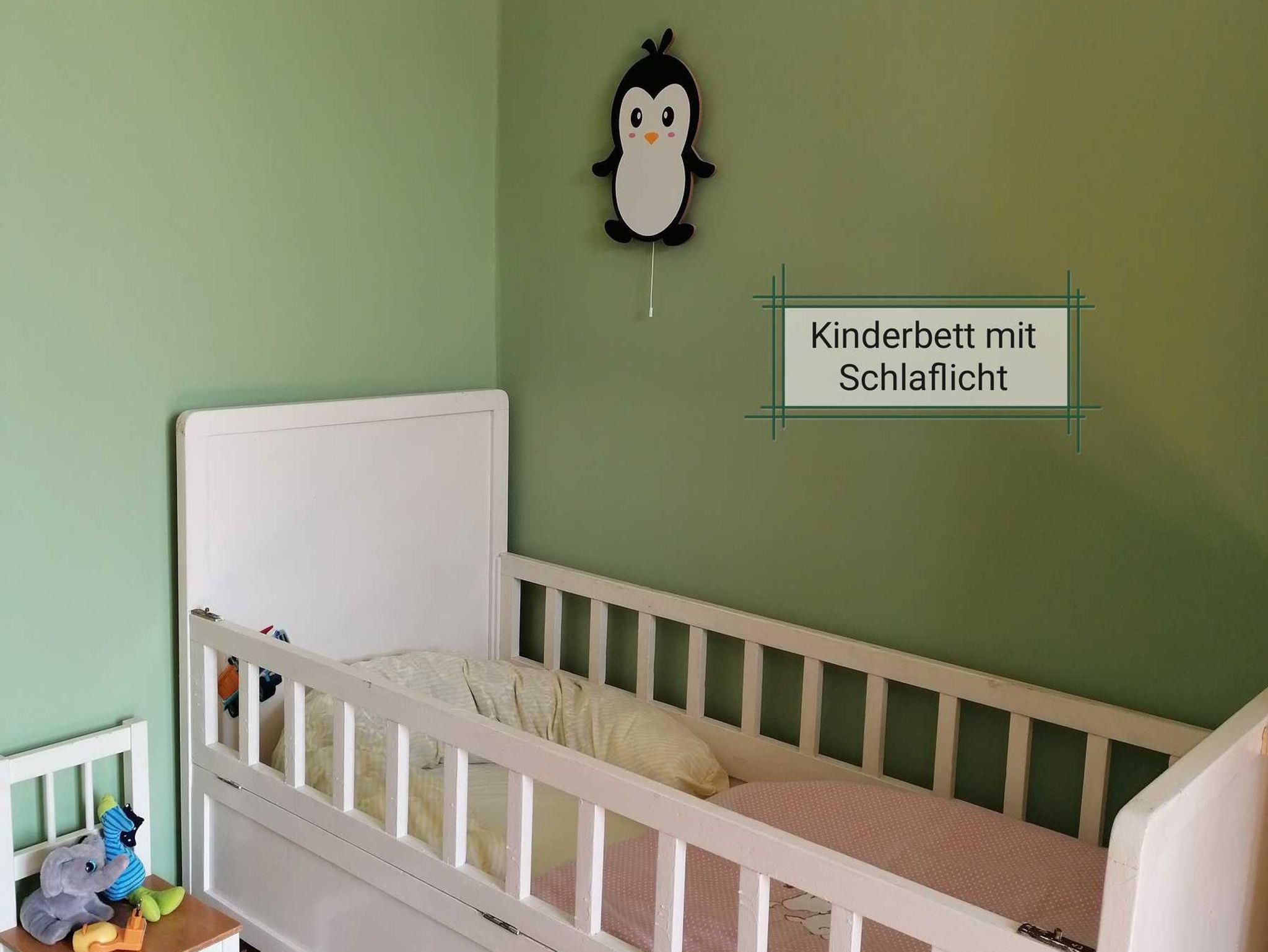 Auf 76 m2 bietet sie eine komplett ausgestattete Küche mit Spülmaschine, ein geräumiges Bad und einen geschmackvoll eingerichteten Essraum sowie einen kombinierten Wohn/Schlafraum mit Doppelbett und ein zusätzliches Schlafzimmer mit Doppelstockbett, Kinder- und Zusatzbett. Freies WLAN und der Internet- Smart-TV ergänzen die Einrichtung. Für unsere kleinen Gäste stehen Hochstuhl, Bauspielzeug, Gesellschaftsspiele und Bücher (geeignet für die Alterspanne 0 bis ca. 10 Jahre) zur Verfügung.