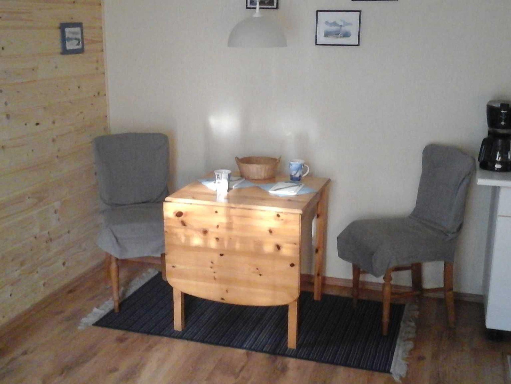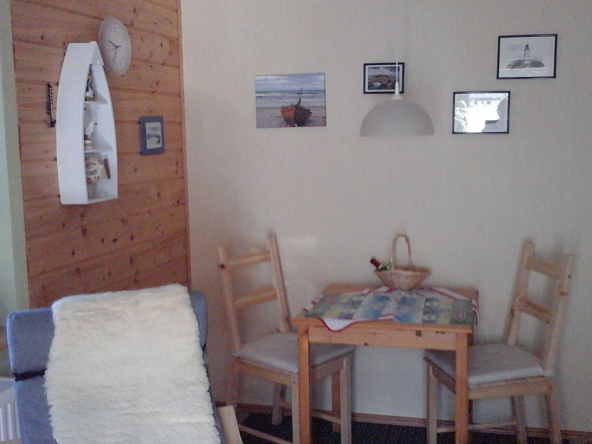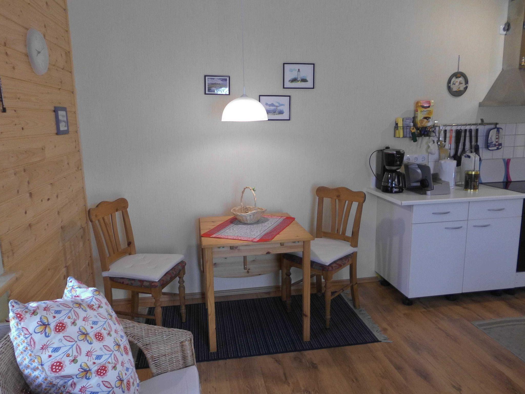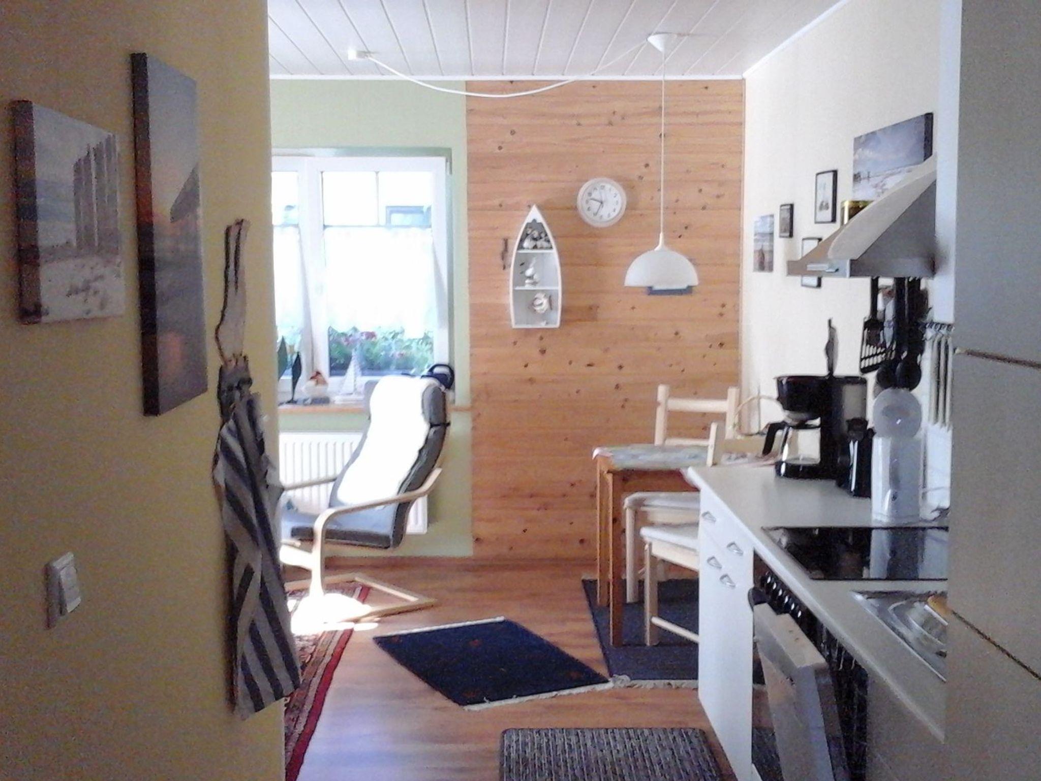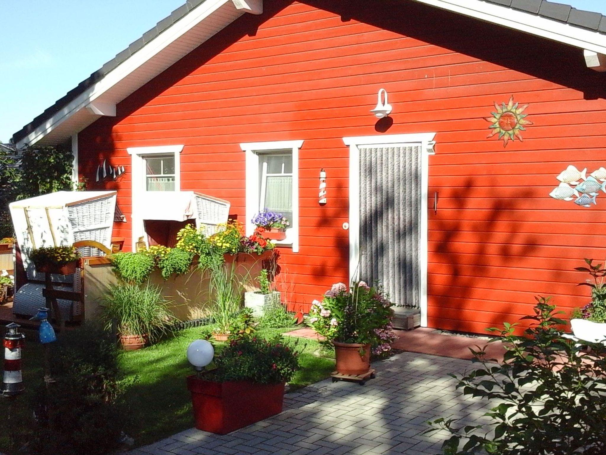 Die Ferienwohnung im Schwedenhaus mit Sitzgelegenheit im Garten hat eine Größe von 40 m². Schlafzimmer, Bad mit ebenerdiger Dusche, Küche mit Geschirrspüler mit angrenzendem Ess- und Wohnbereich.