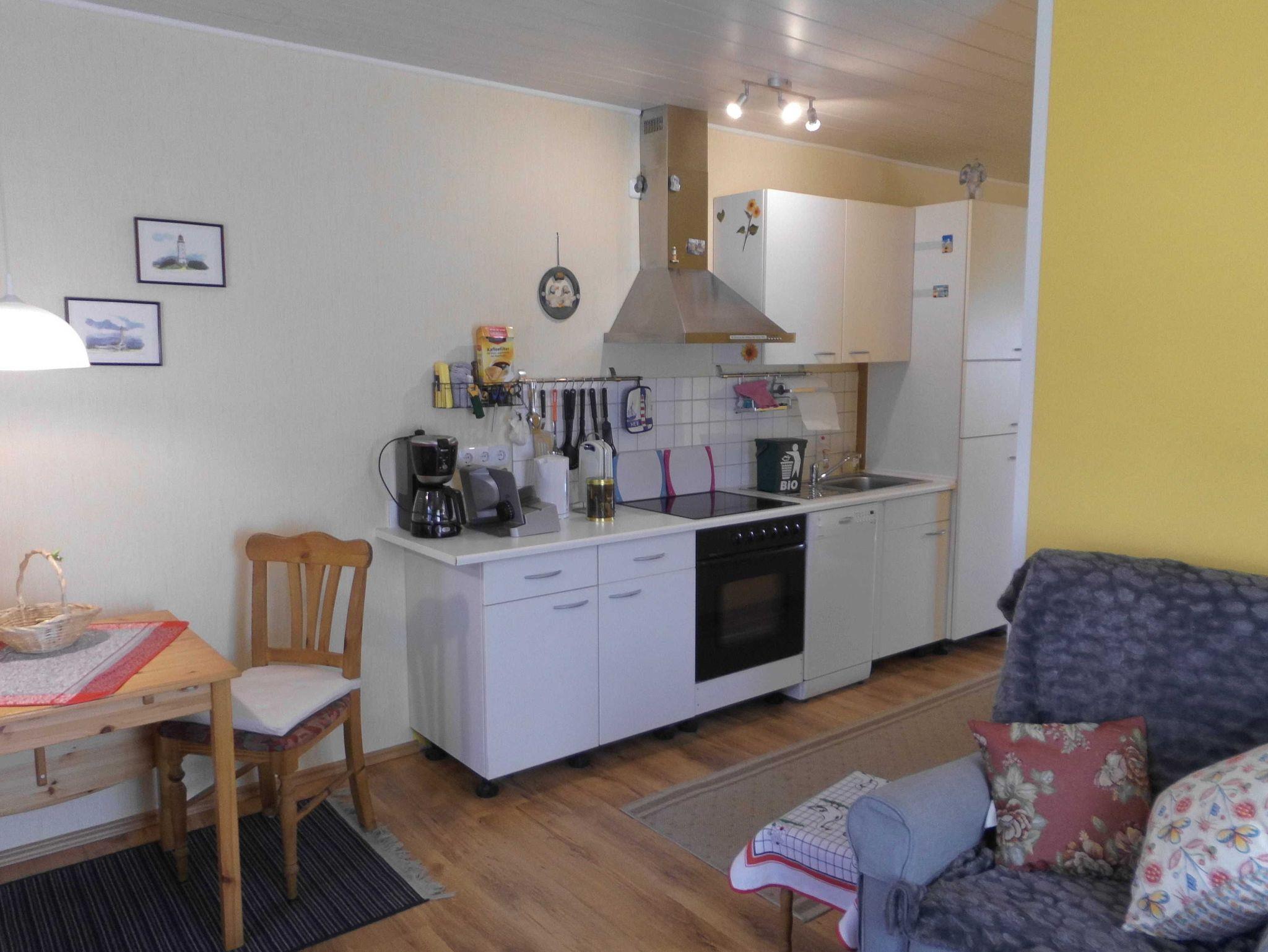 Ferienwohnung gemütlich eingerichtet, mit Laminatböden, Bad komplett gefliest, Schlafzimmer mit Bett 160 x 200 cm, Küche mit Geschirrspüler, SAT-TV, WLAN, inkl. Wasser- und Stromverbrauch, Bettwäsche und Handtücher